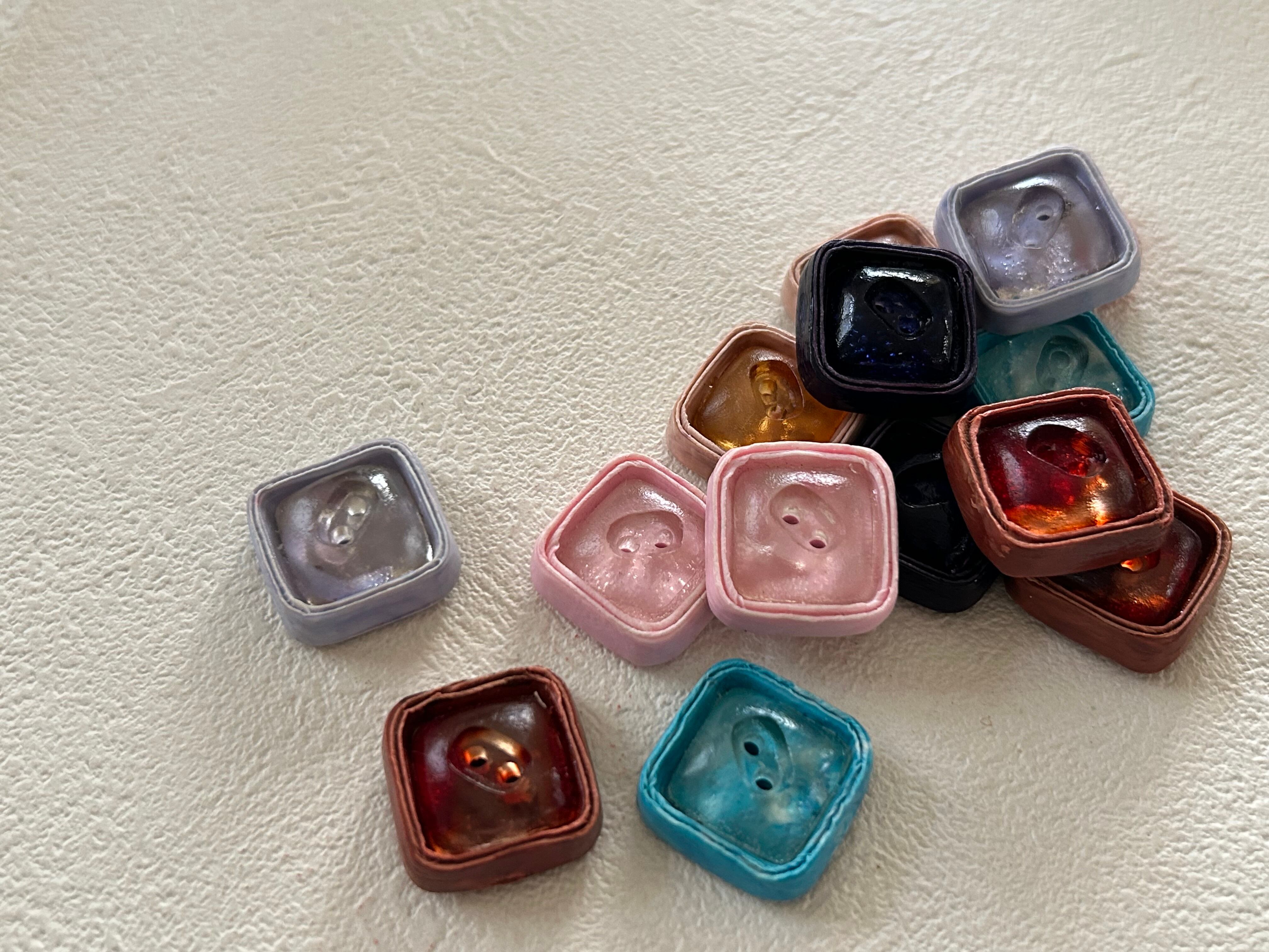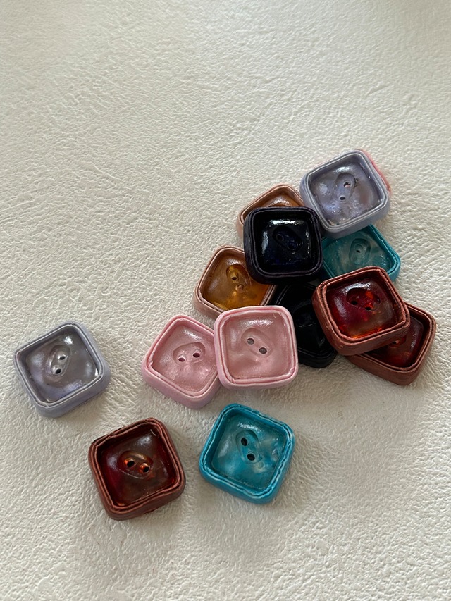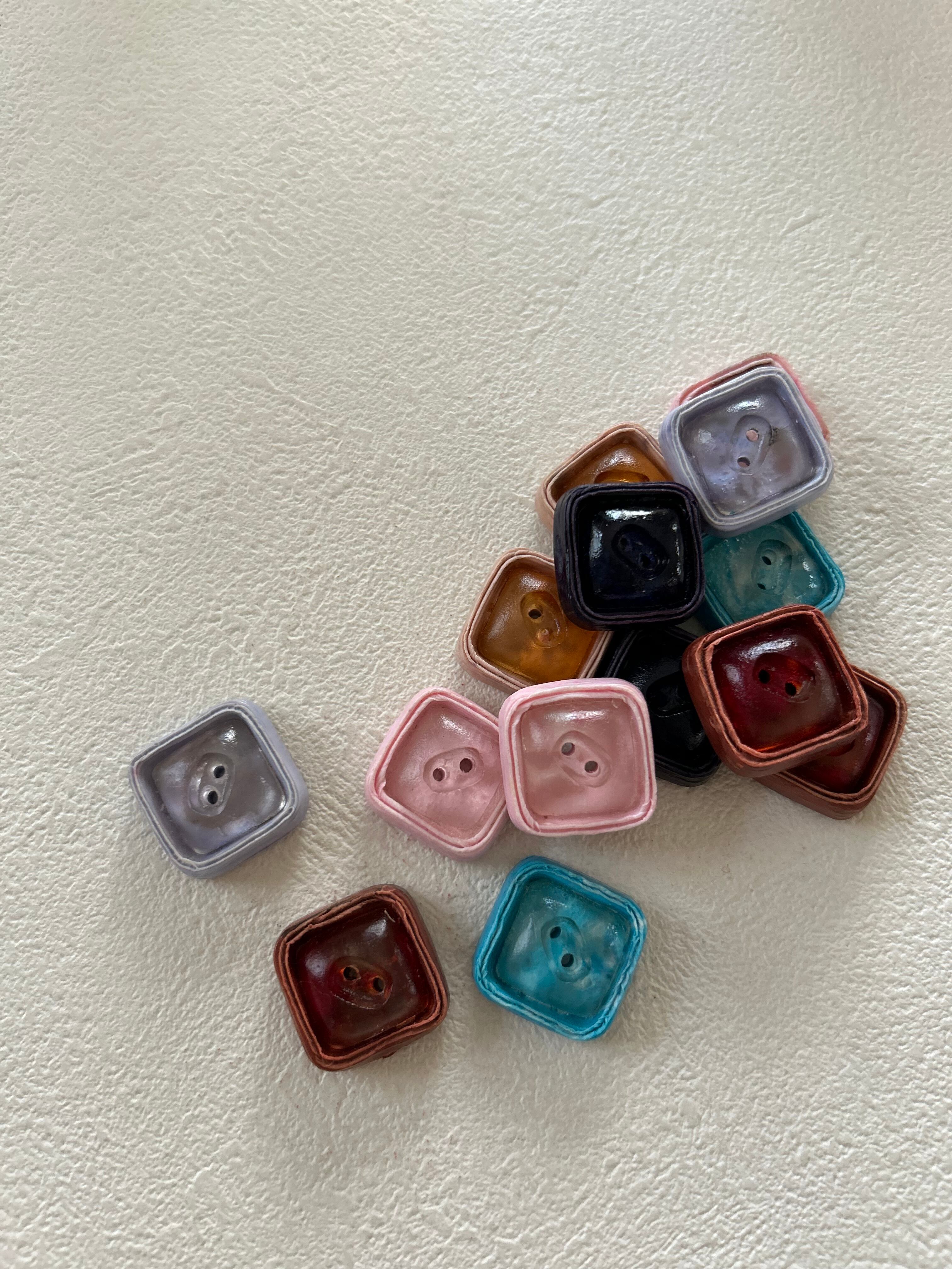 Japanese Vintage ヴィンテージボタン スクウェア 樹脂 20mm レトロボタン アクセサリーパーツ 装飾材 カルトナージュ