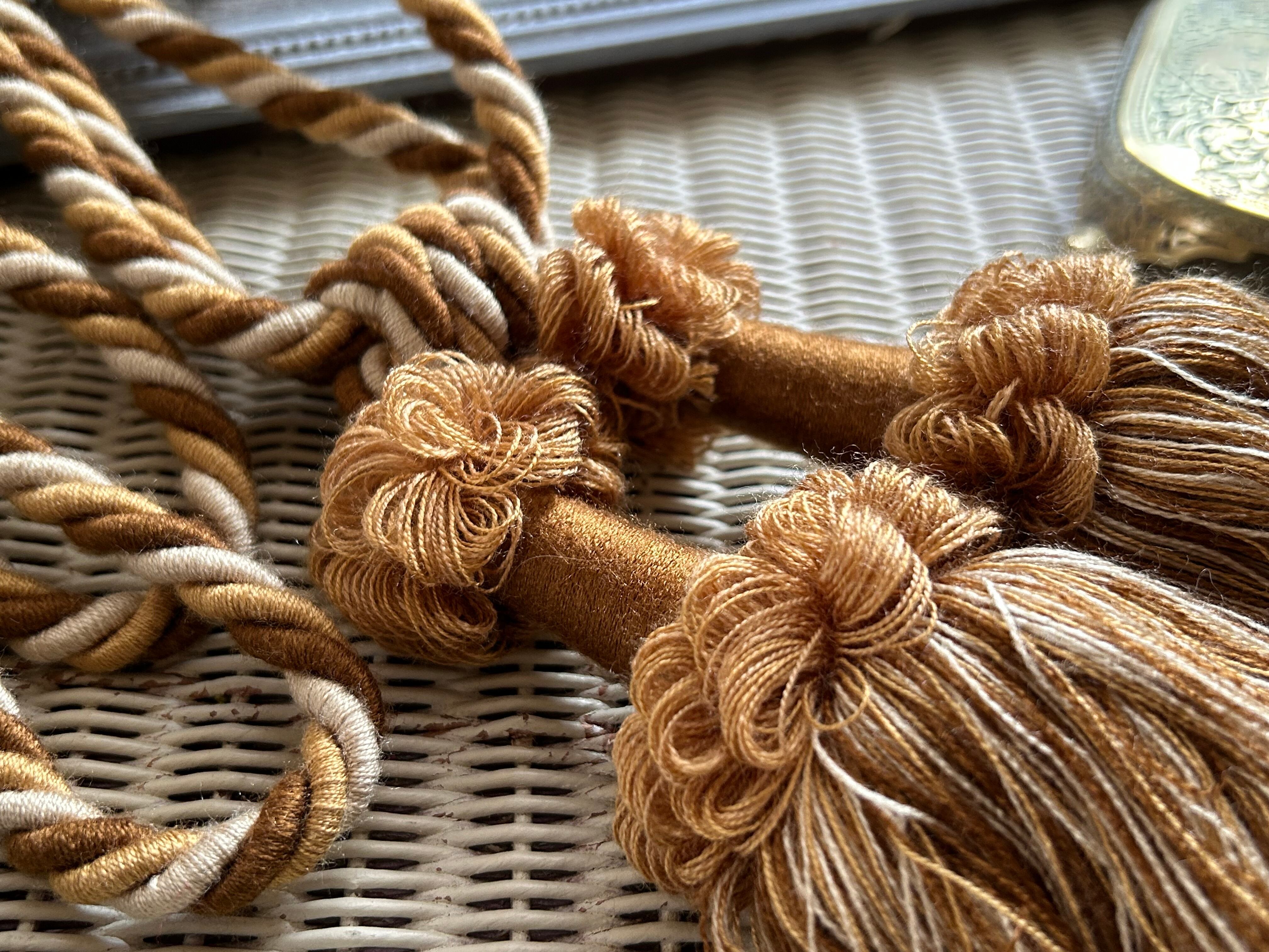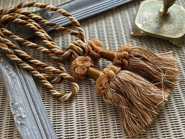 フランスVintage インテリアタッセル ブラウン インテリア インテリア茶箱 カルトナージュ 撮影小物 店舗什器