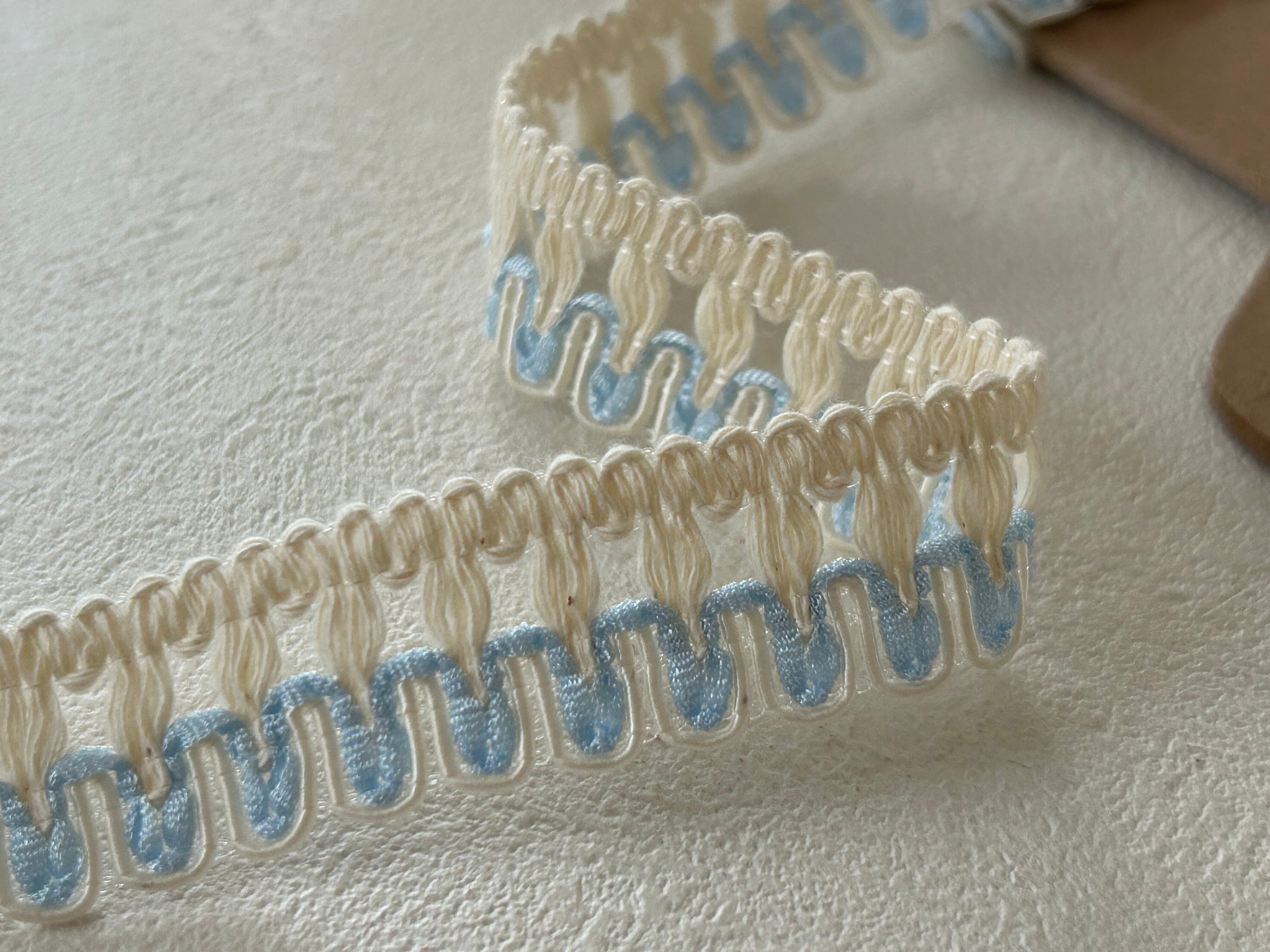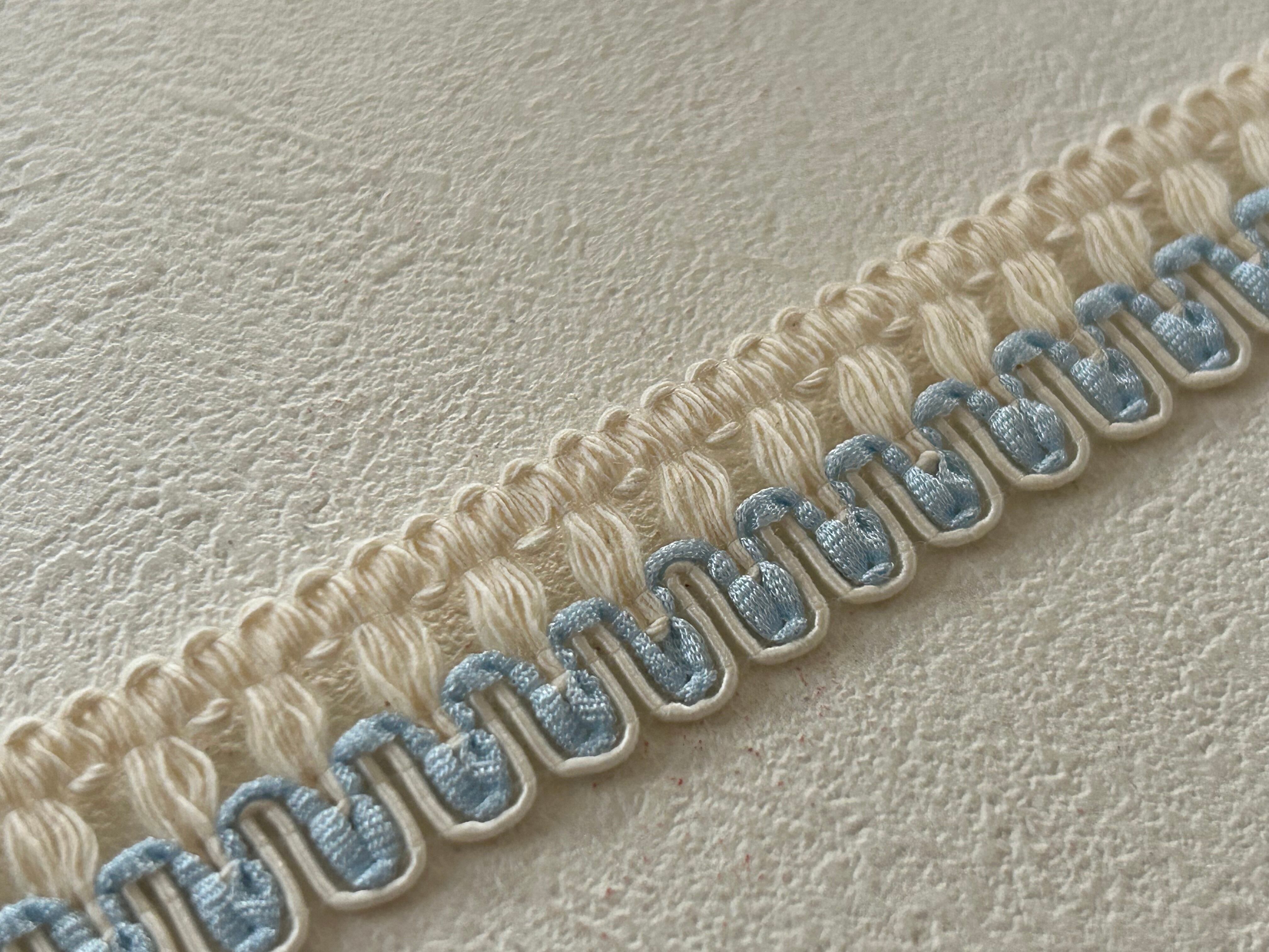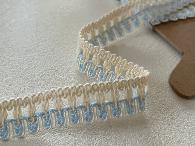 輸入デザインブレード エクリュ×ライトブルー 100cm /カット 20mm カルトナージュ デコレーション材