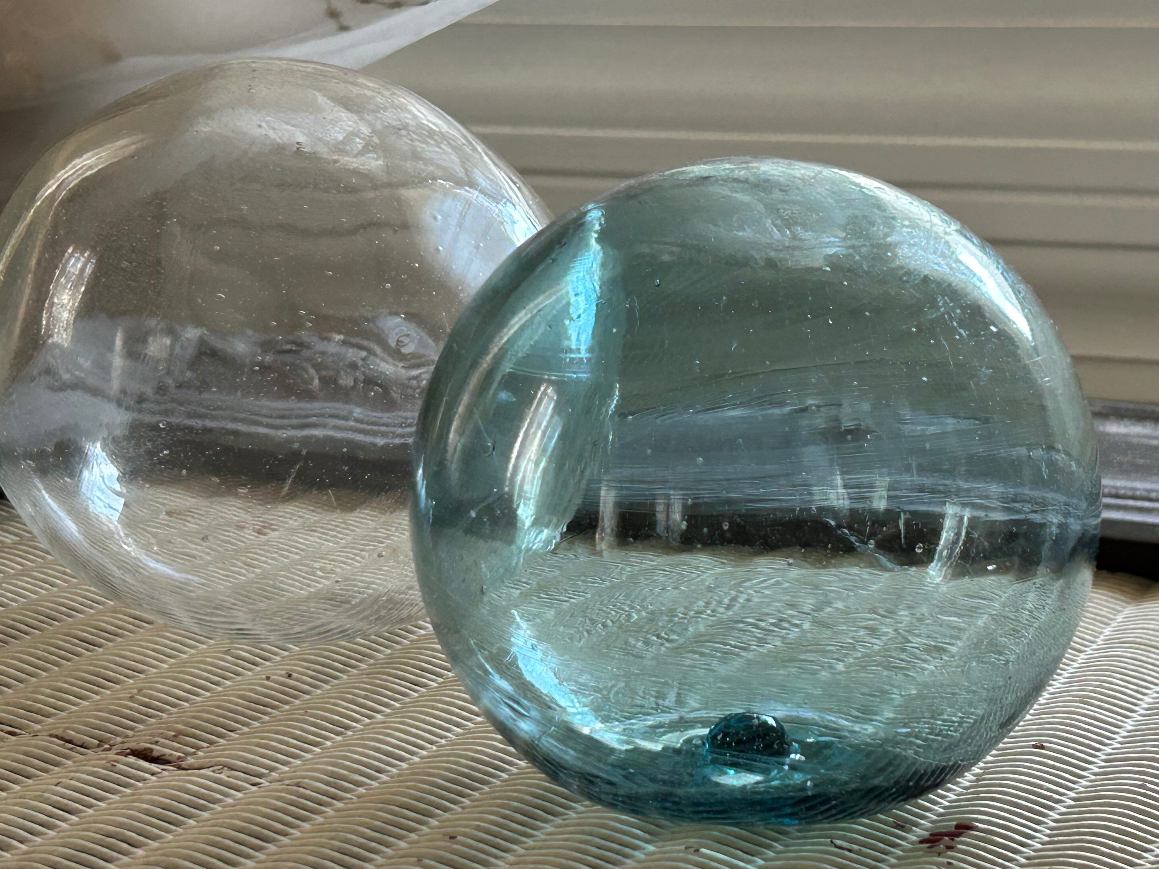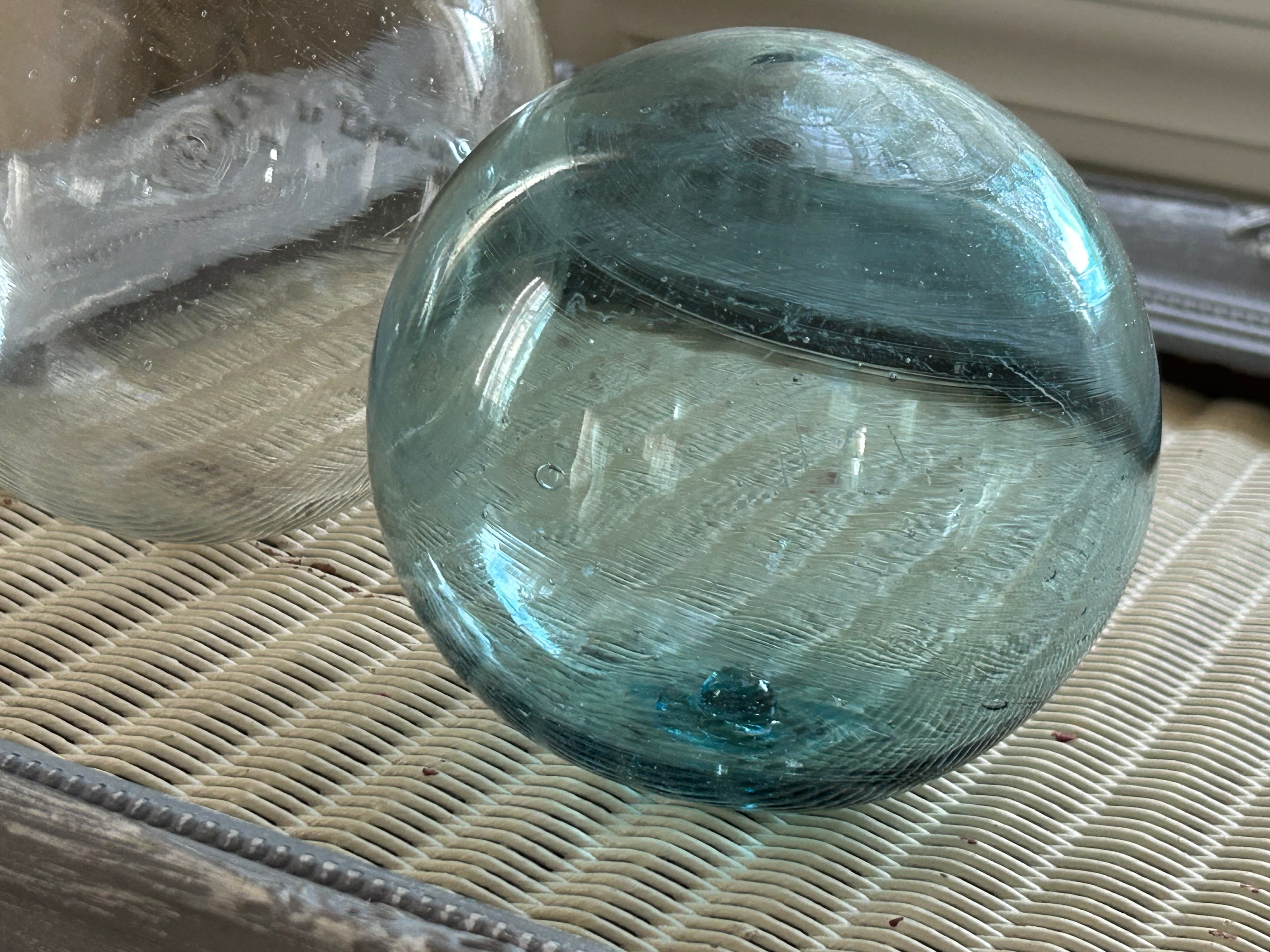Japanese Vintage ブルーの浮き玉 約10.5cm レトロ インテリア小物 撮影小物 ガーデニング ディスプレイ 店舗什器