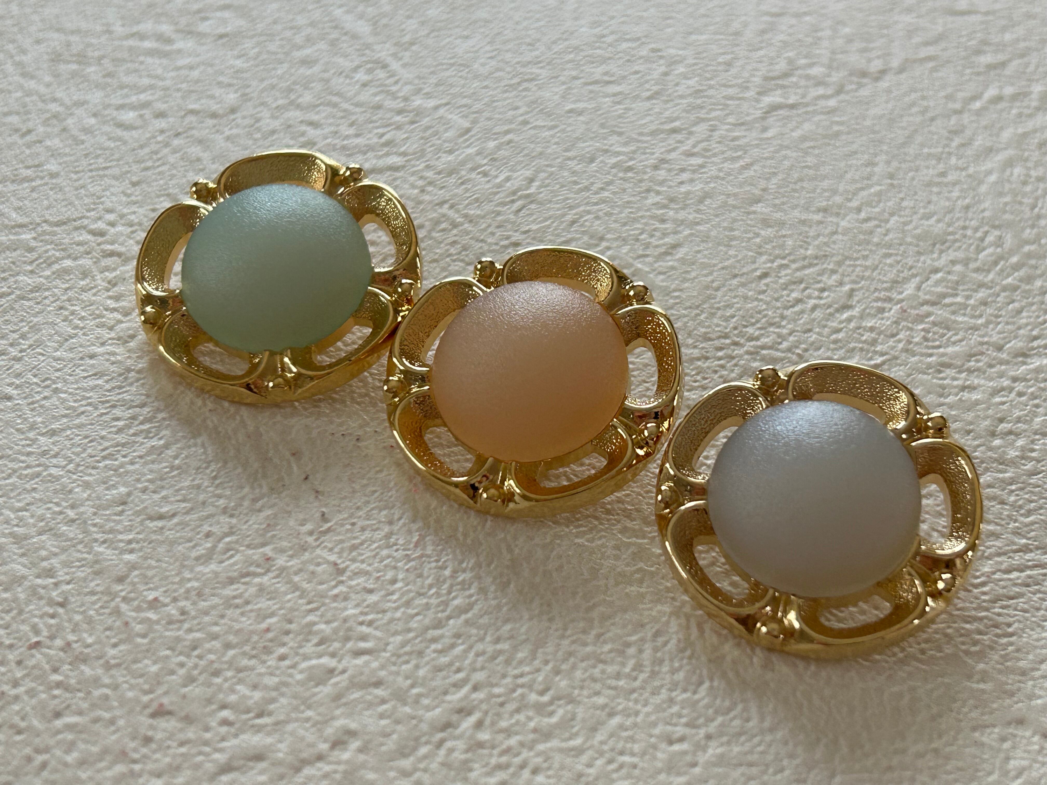 お洋服のボタンの付け替えには勿論のことアクセサリーパーツとして、カルトナージュのデコレーション材になど様々な用途でお役立て下さいませ。