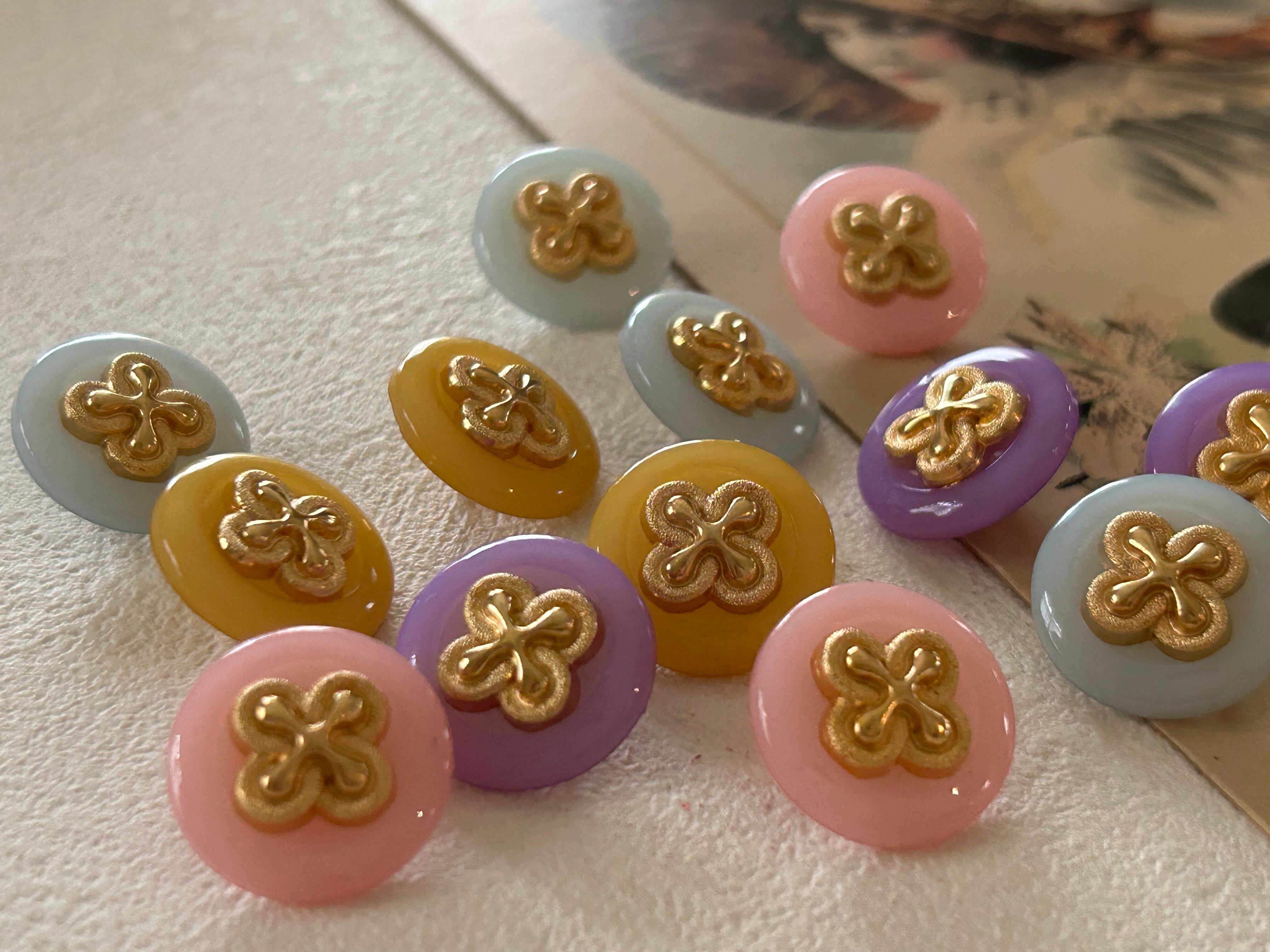 お洋服のボタンの付け替えには勿論のことアクセサリーパーツとして、カルトナージュのデコレーション材になど様々な用途でお役立て下さいませ。