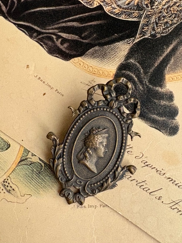 フランスアンティーク Ruban フレーム 貴婦人の横顔のピンバッジ 45mm 撮影小物 インテリア小物 カルトナージュ