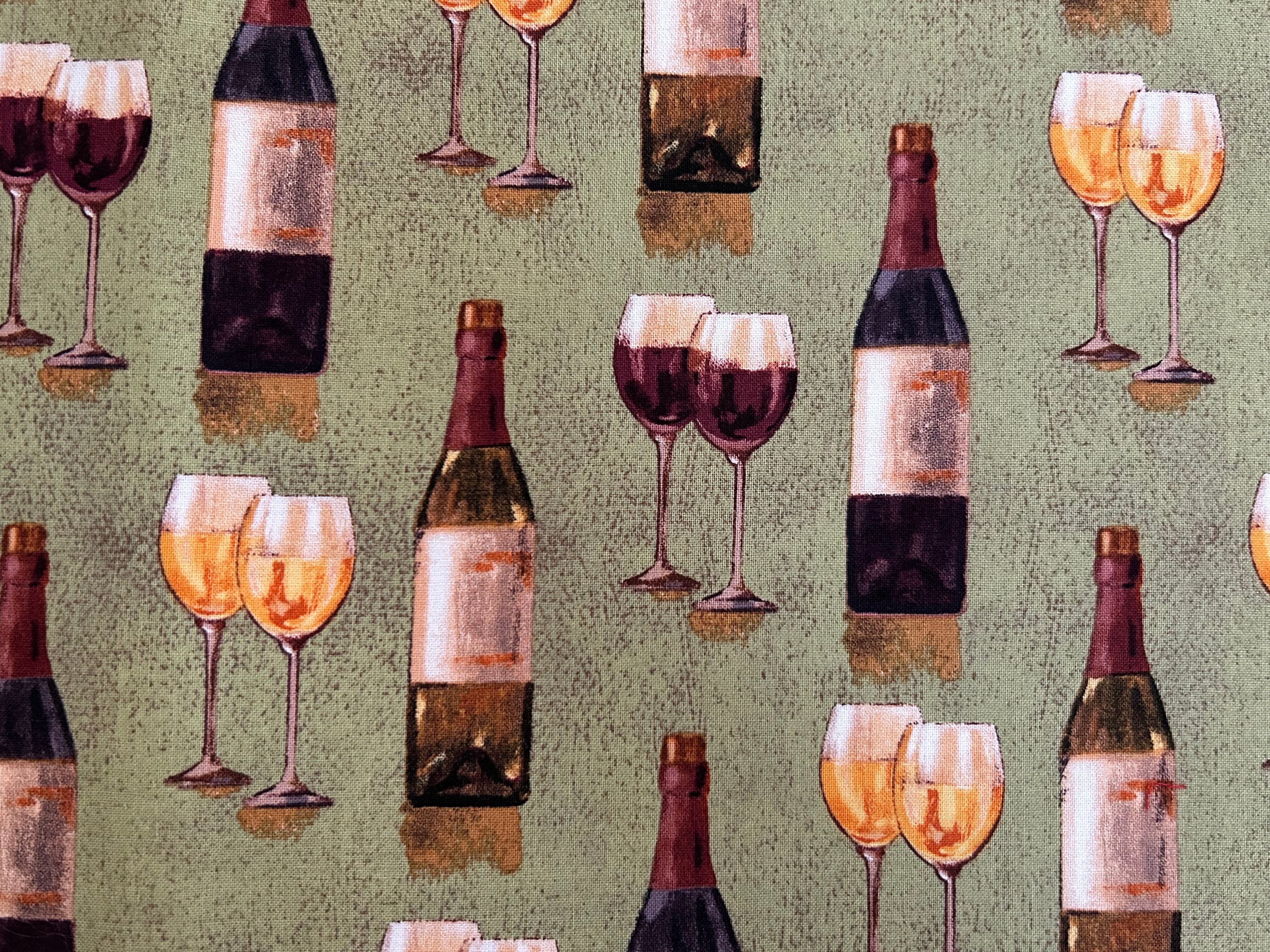 USA 輸入コットンファブリック ワイン柄 カーキ系×マルチカラー Sivia Vassileva カルトナージュ Noel ノエル