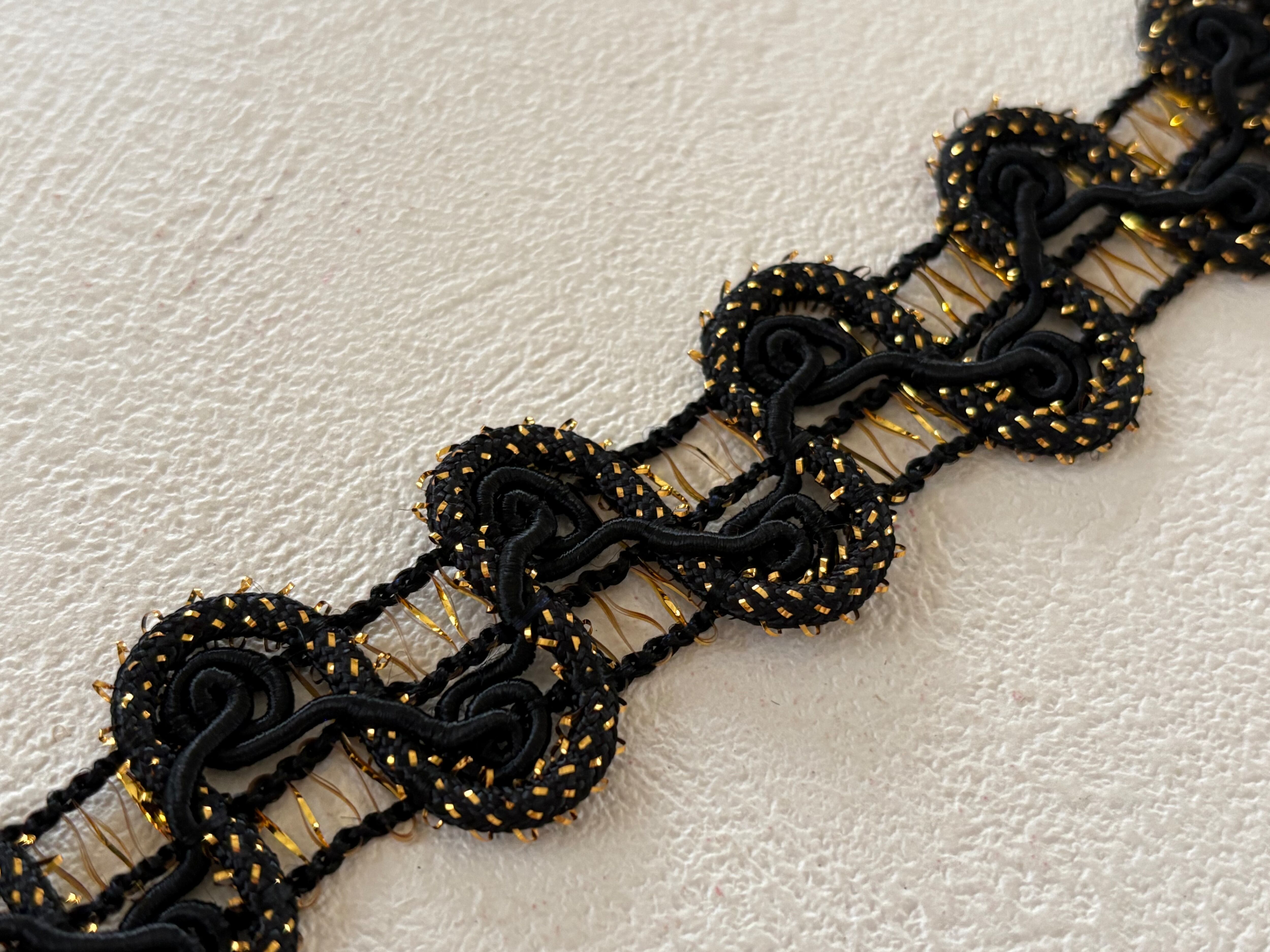 輸入デザインブレード 幅広ブレード ブラック×ゴールド 25mm幅 168cm /カット カットブレード カルトナージュ デコレーション材