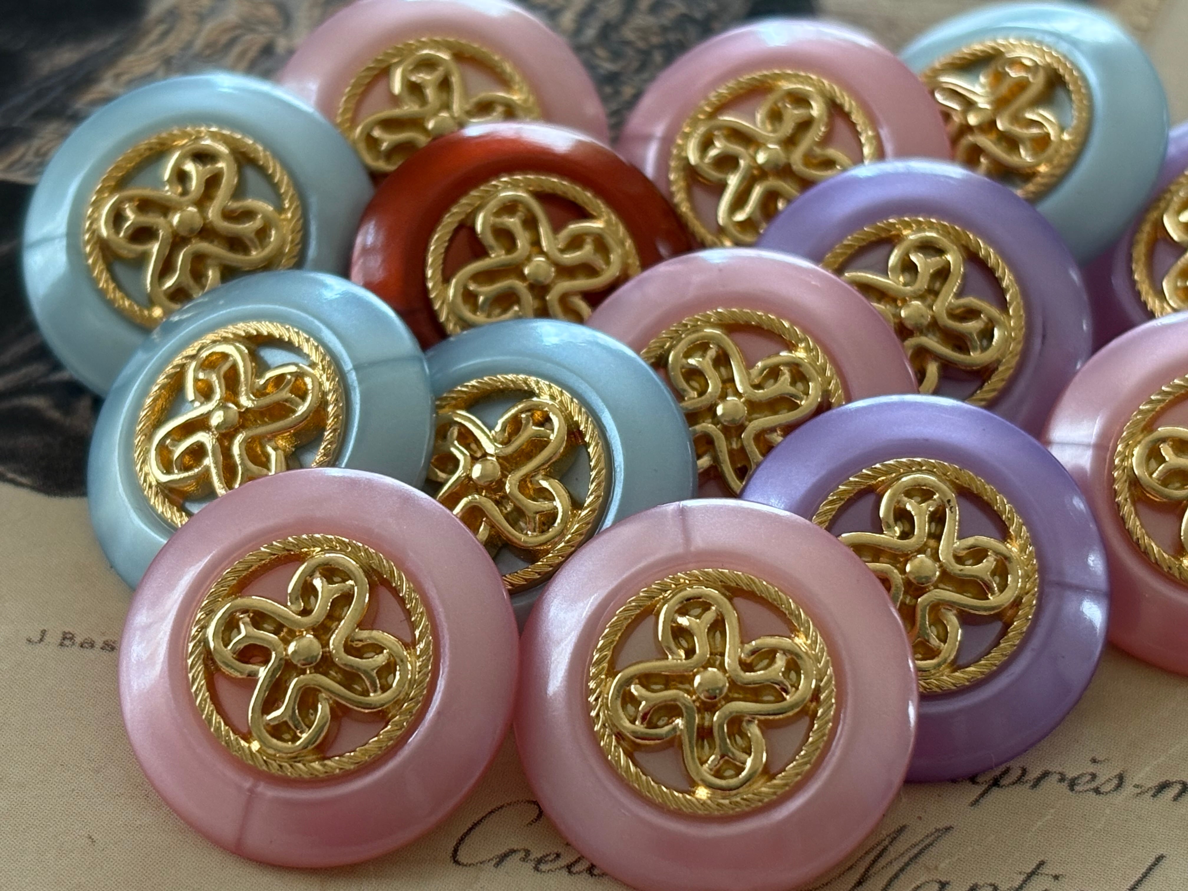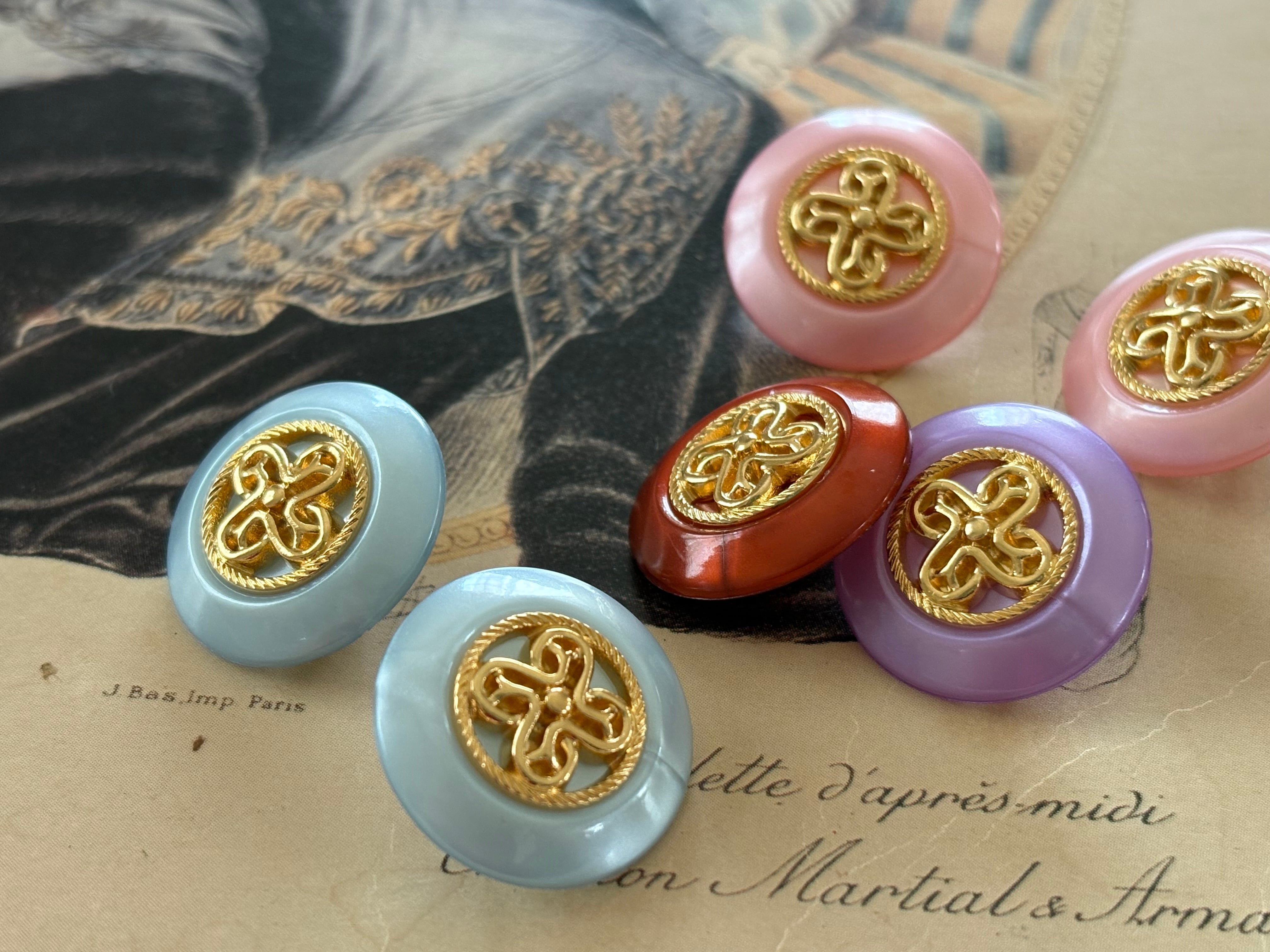 お洋服のボタンの付け替えには勿論のことアクセサリーパーツとして、カルトナージュのデコレーション材になど様々な用途でお役立て下さいませ。