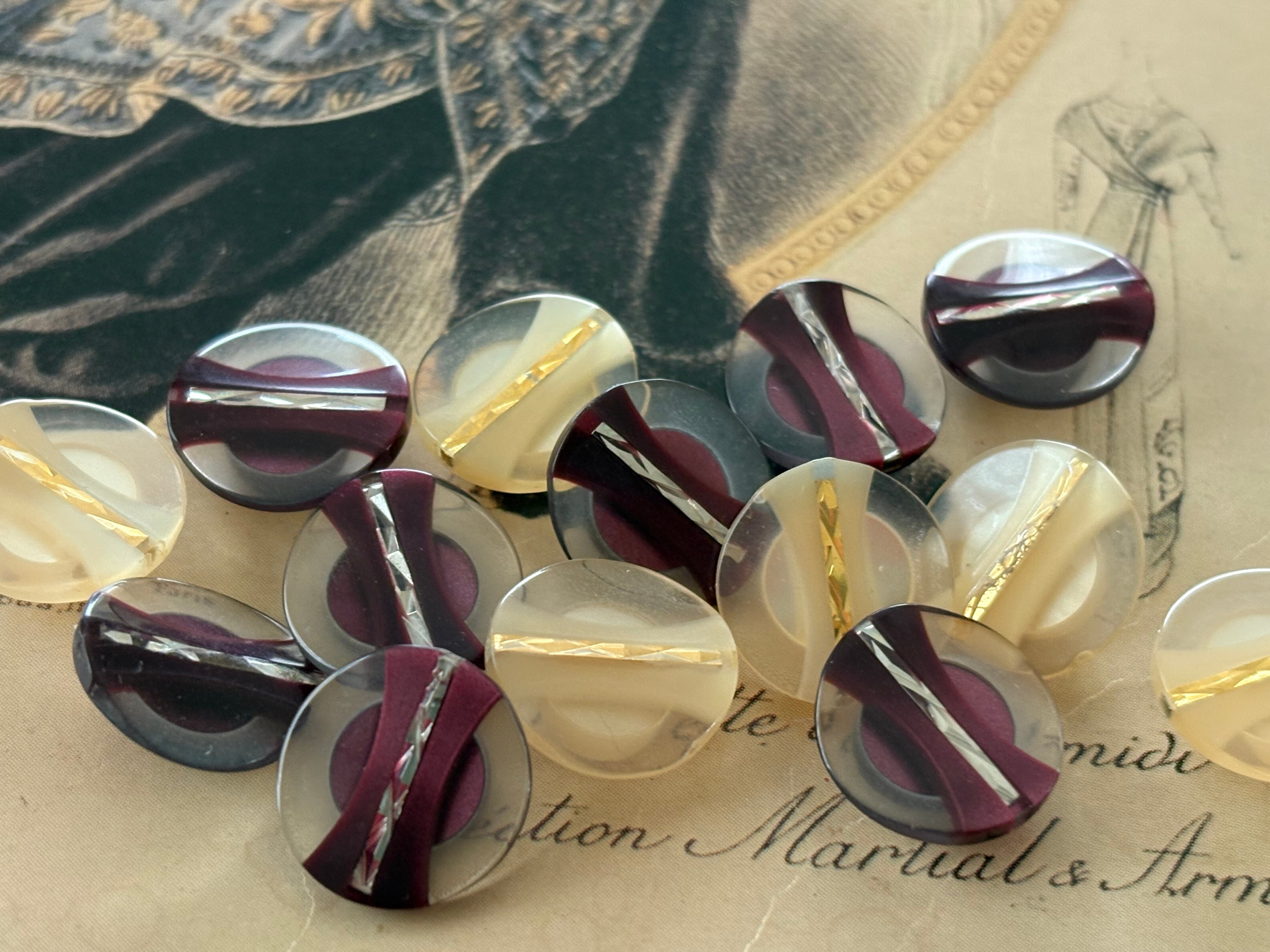 Japanese Vintageボタン レトロボタン 12mm パープル/ベージュ アクセサリーパーツ デコレーション材