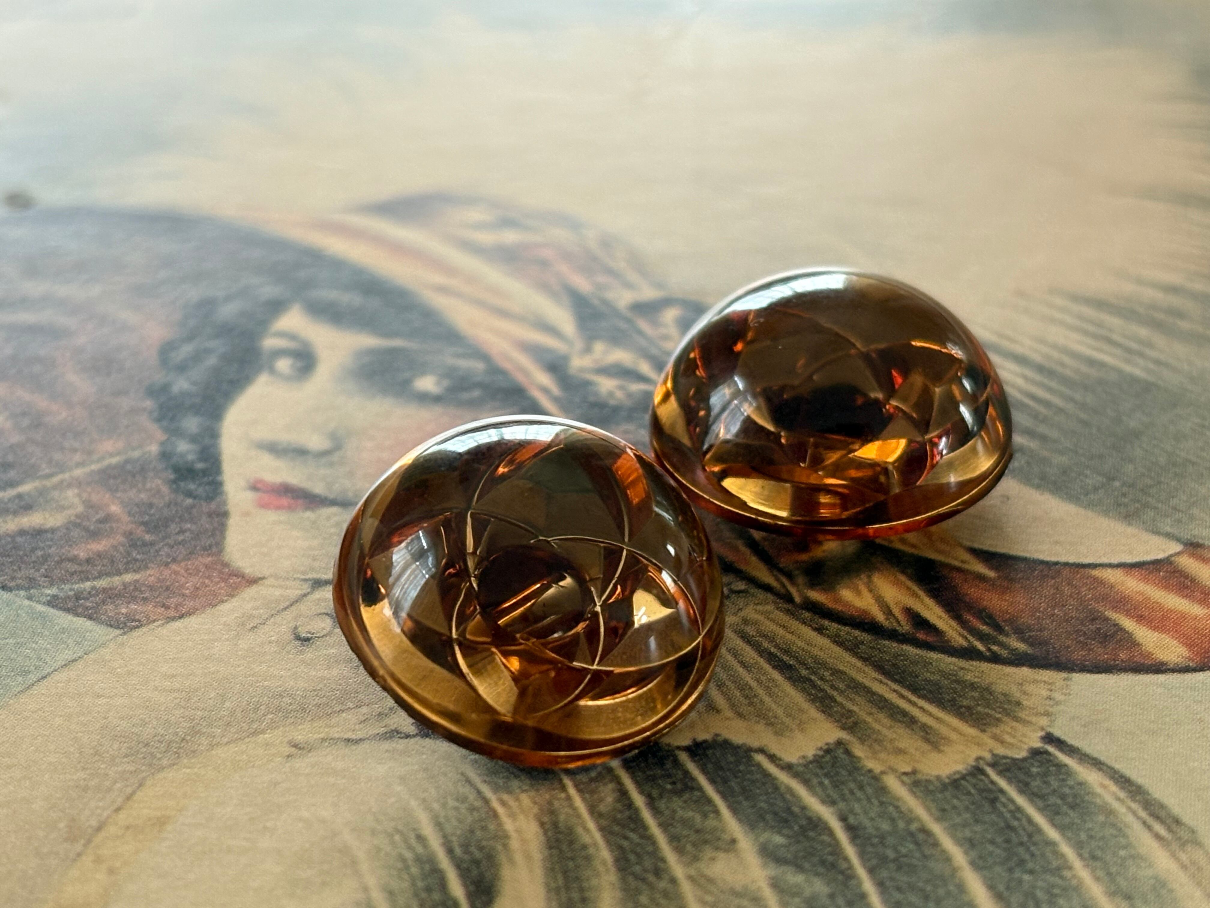 Japanese Vintage ボタン 17mm ドーム型ボタン ブラウン クリア アクセサリーパーツ 装飾材