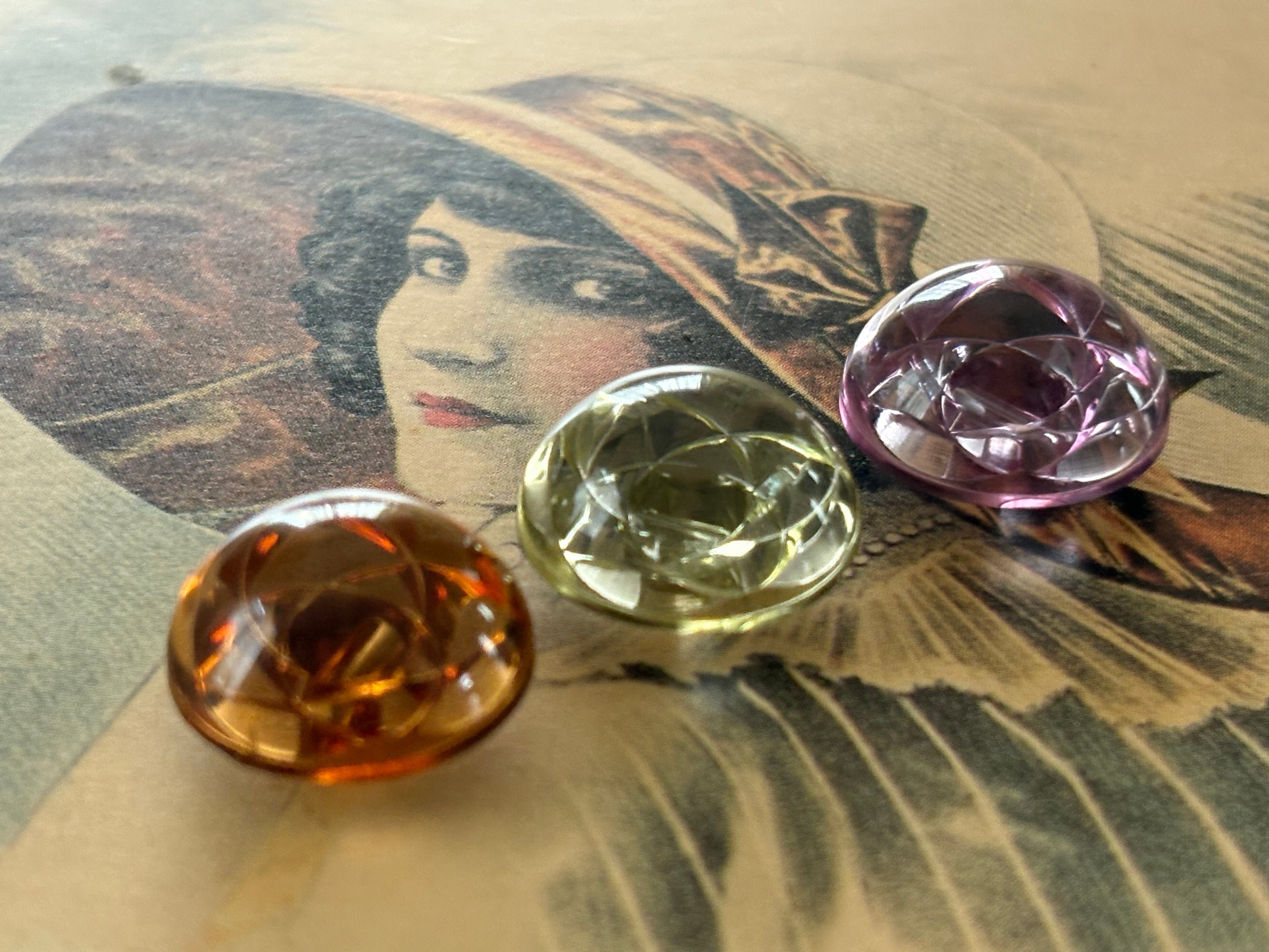 Japanese Vintage ボタン 15mm ドーム型ボタン ブラウン/グリーン/パープル クリア アクセサリーパーツ 装飾材