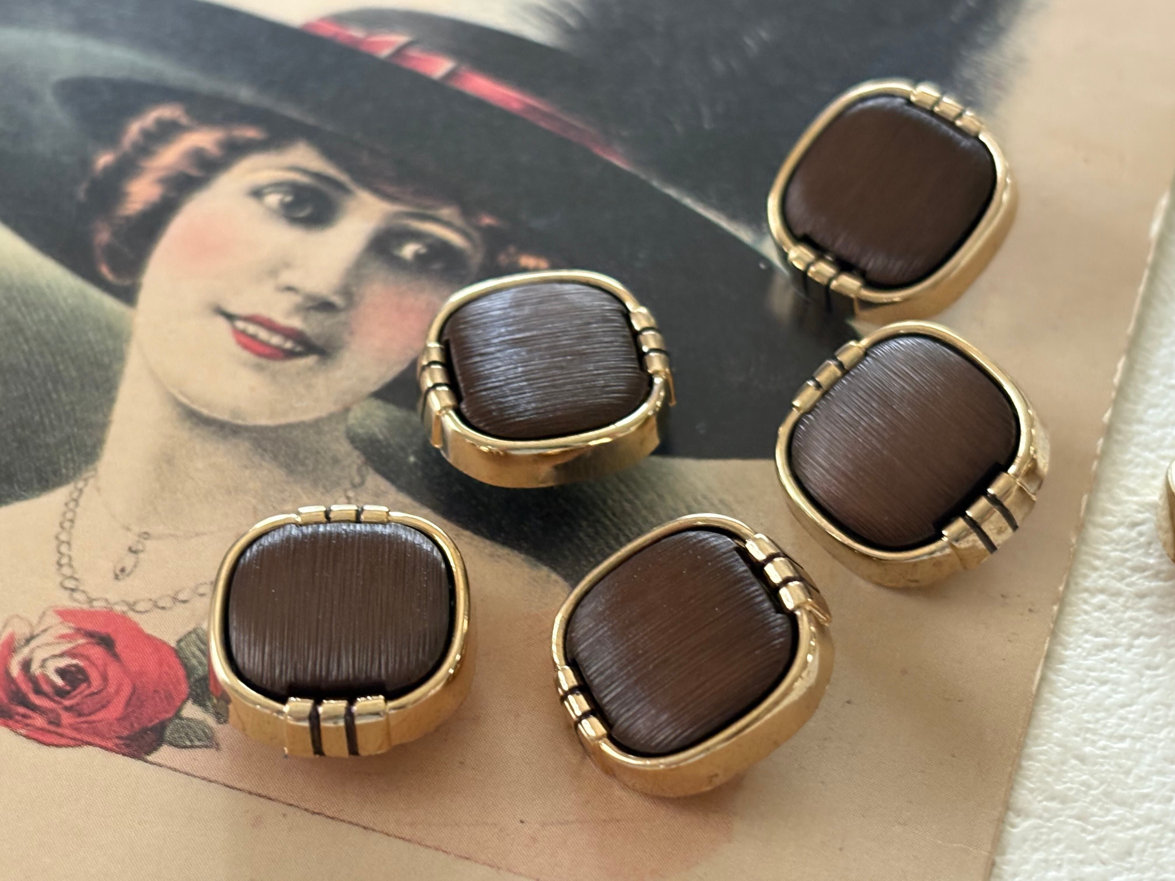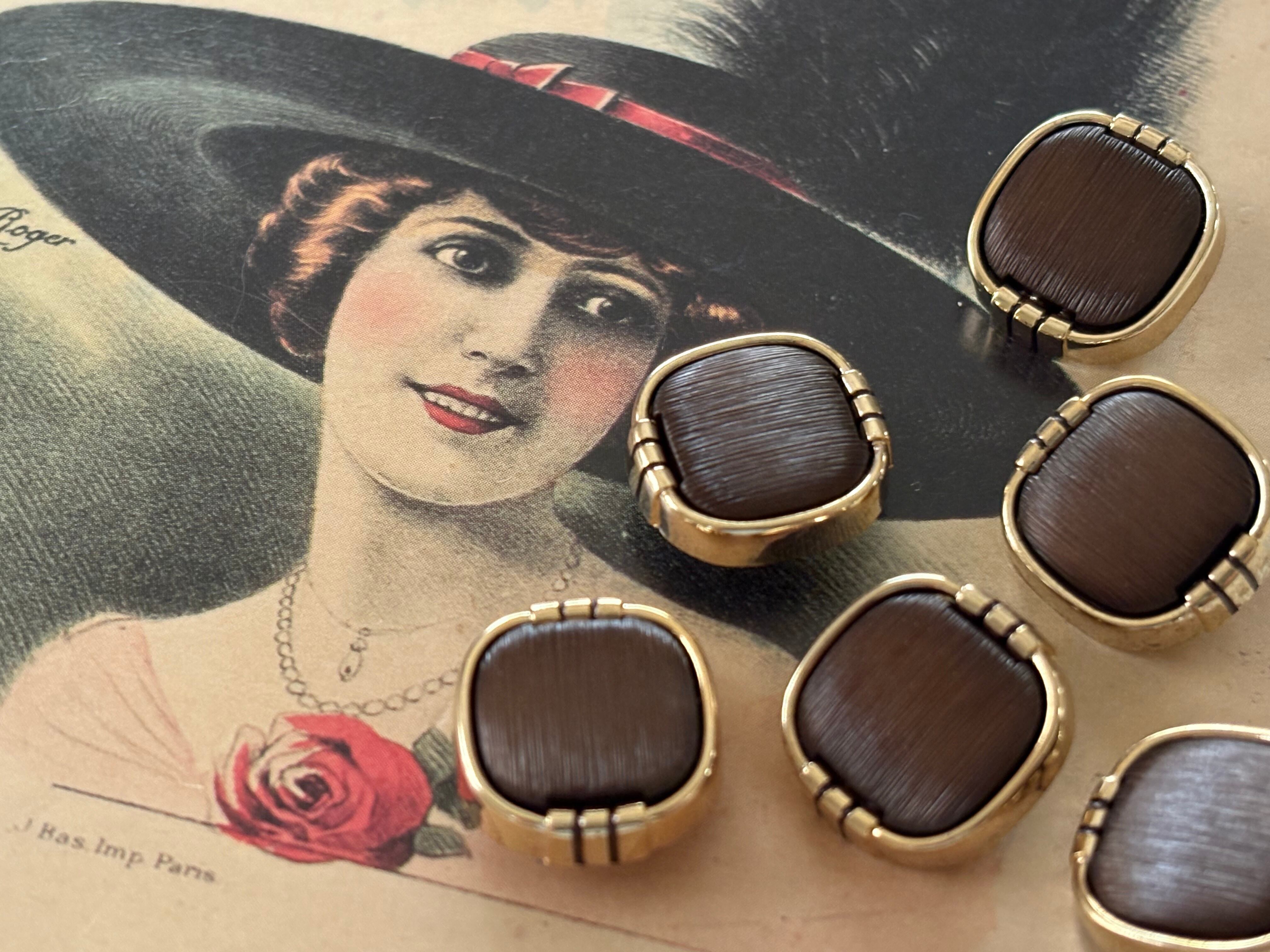 Japanese Vintage ヴィンテージボタン プラスチック×カボションゴールド×ブラウン 18mm アクセサリーパーツ 装飾材