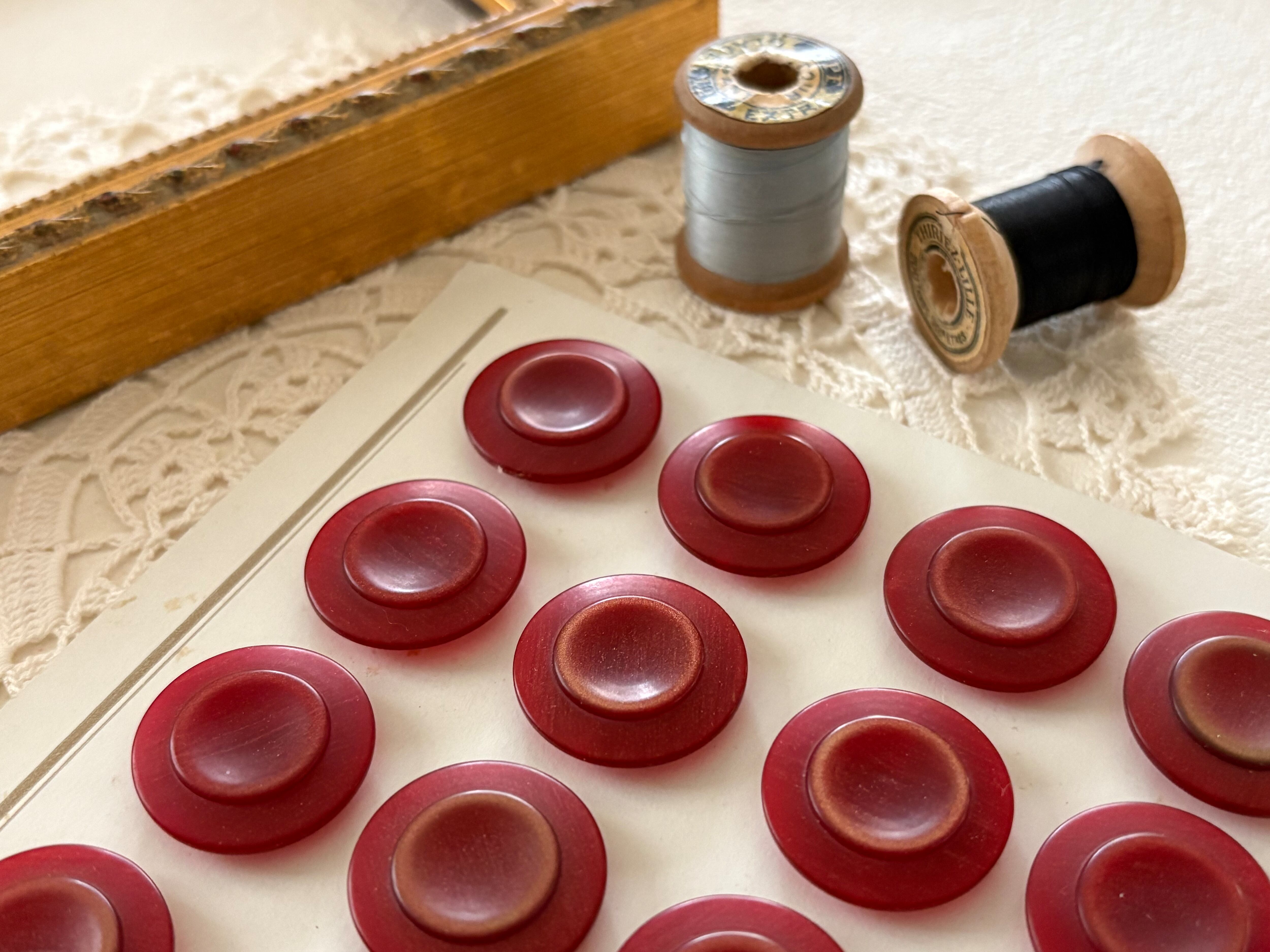 フランスVintageボタン プラスチックボタン レッド系 マット 21mm アクセサリーパーツ デコレーション材