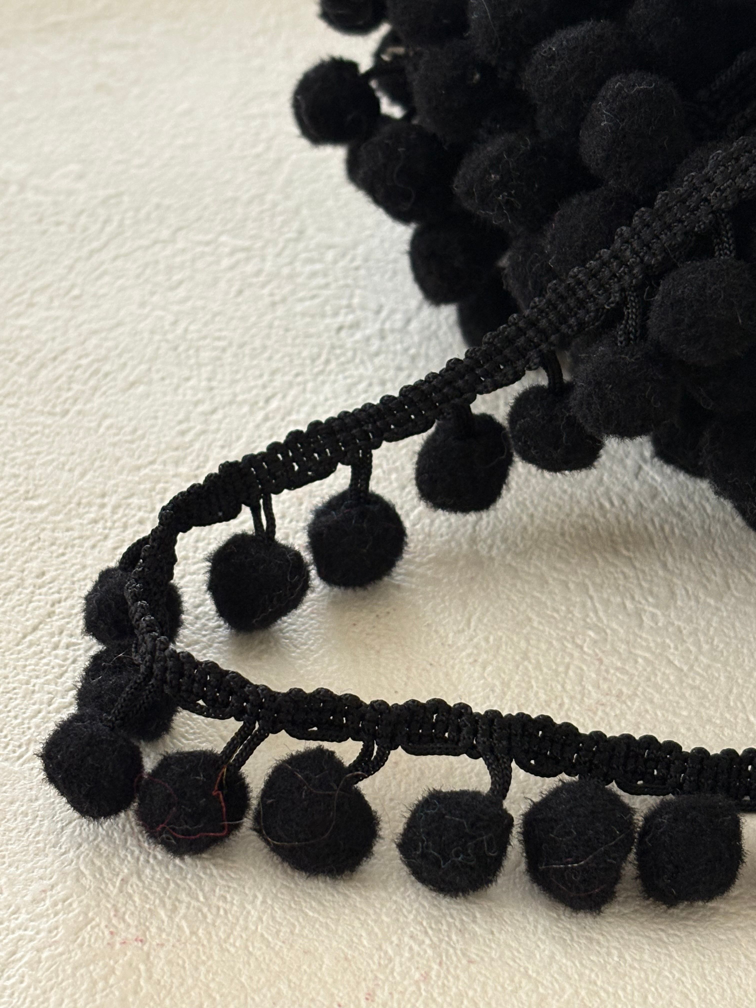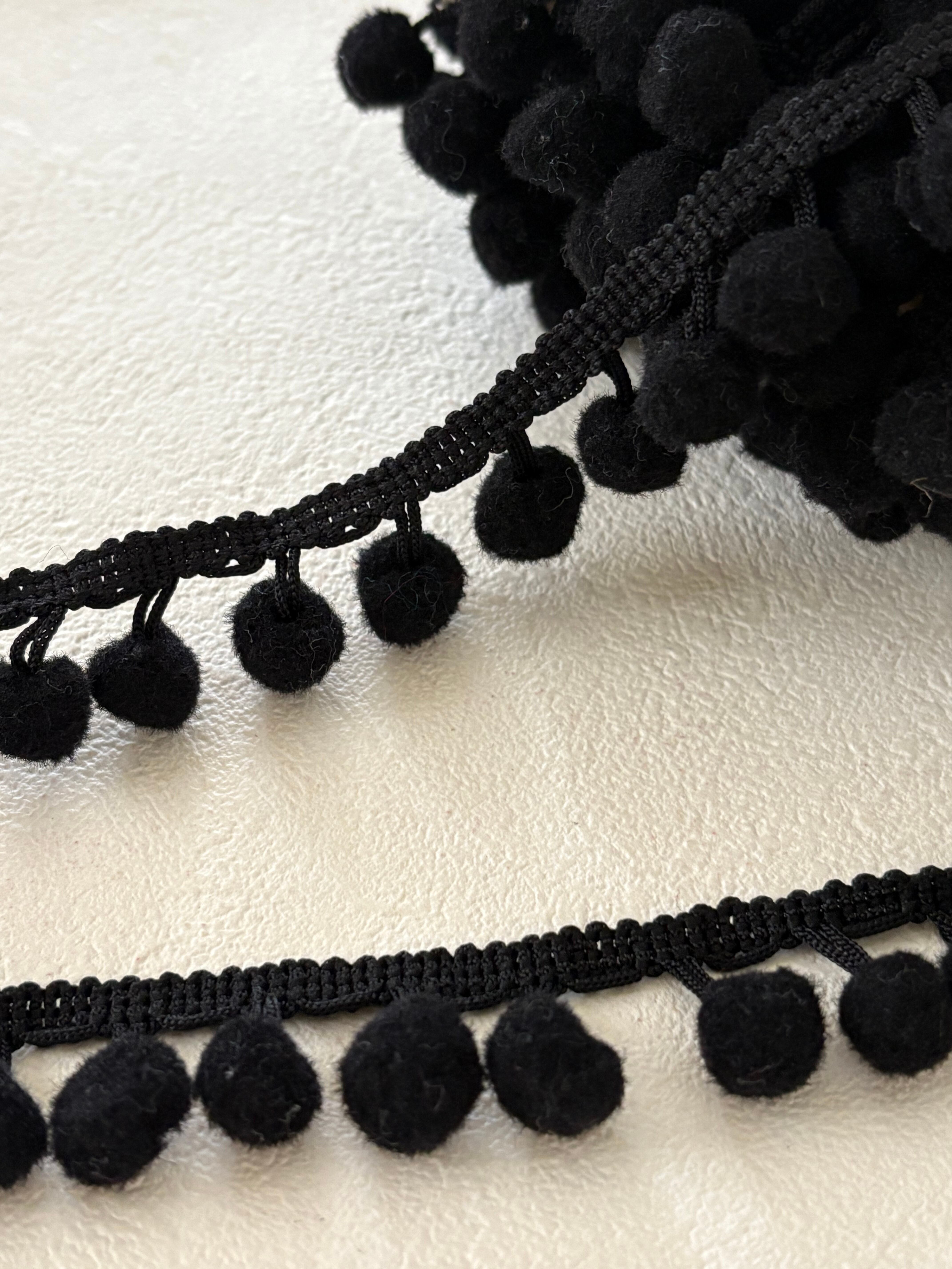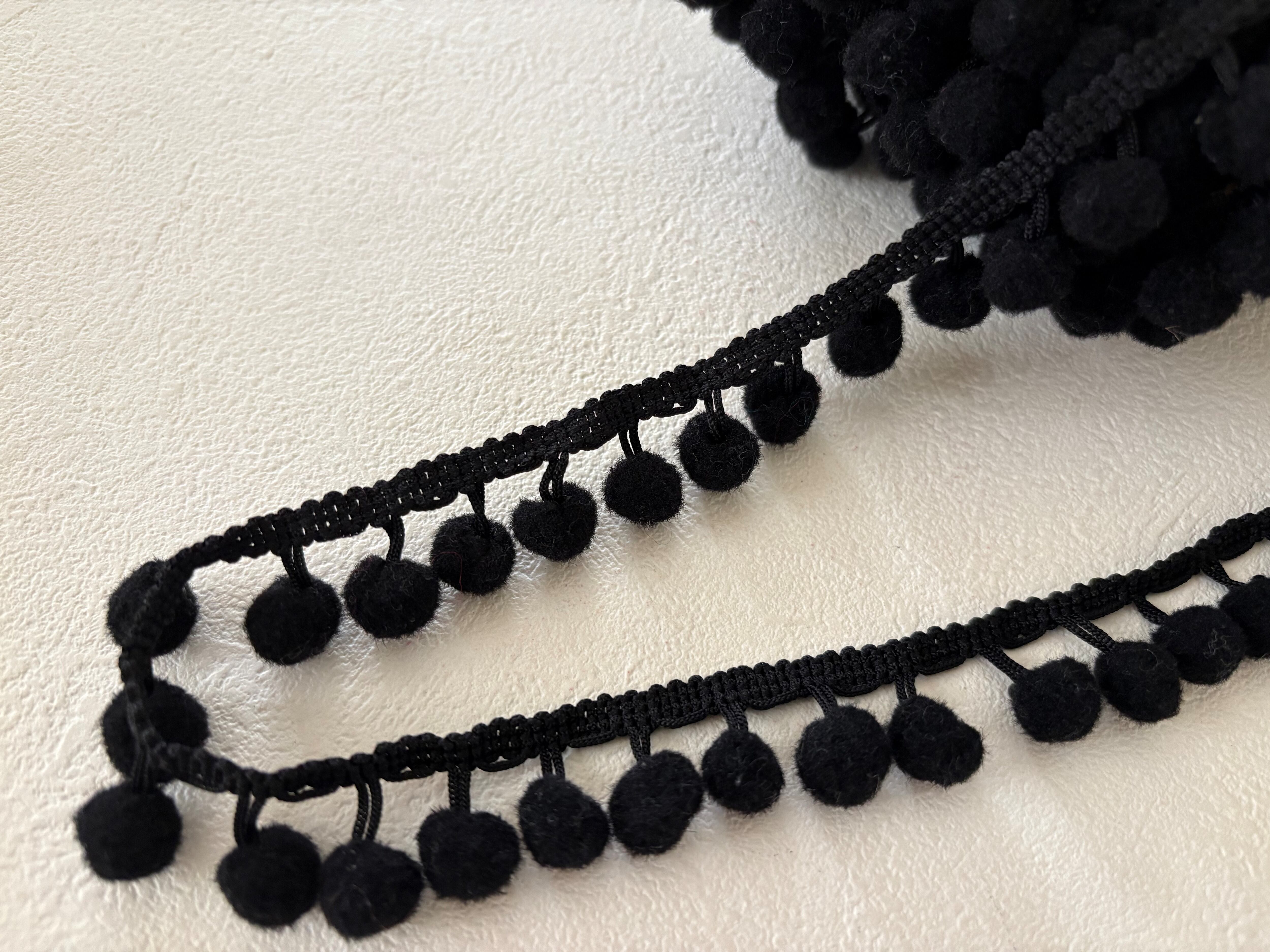 輸入デザインタッセルブレード ポンポンブレード 50cm/カット 全長 20mm ブラック カルトナージュ スツール デコレーション材