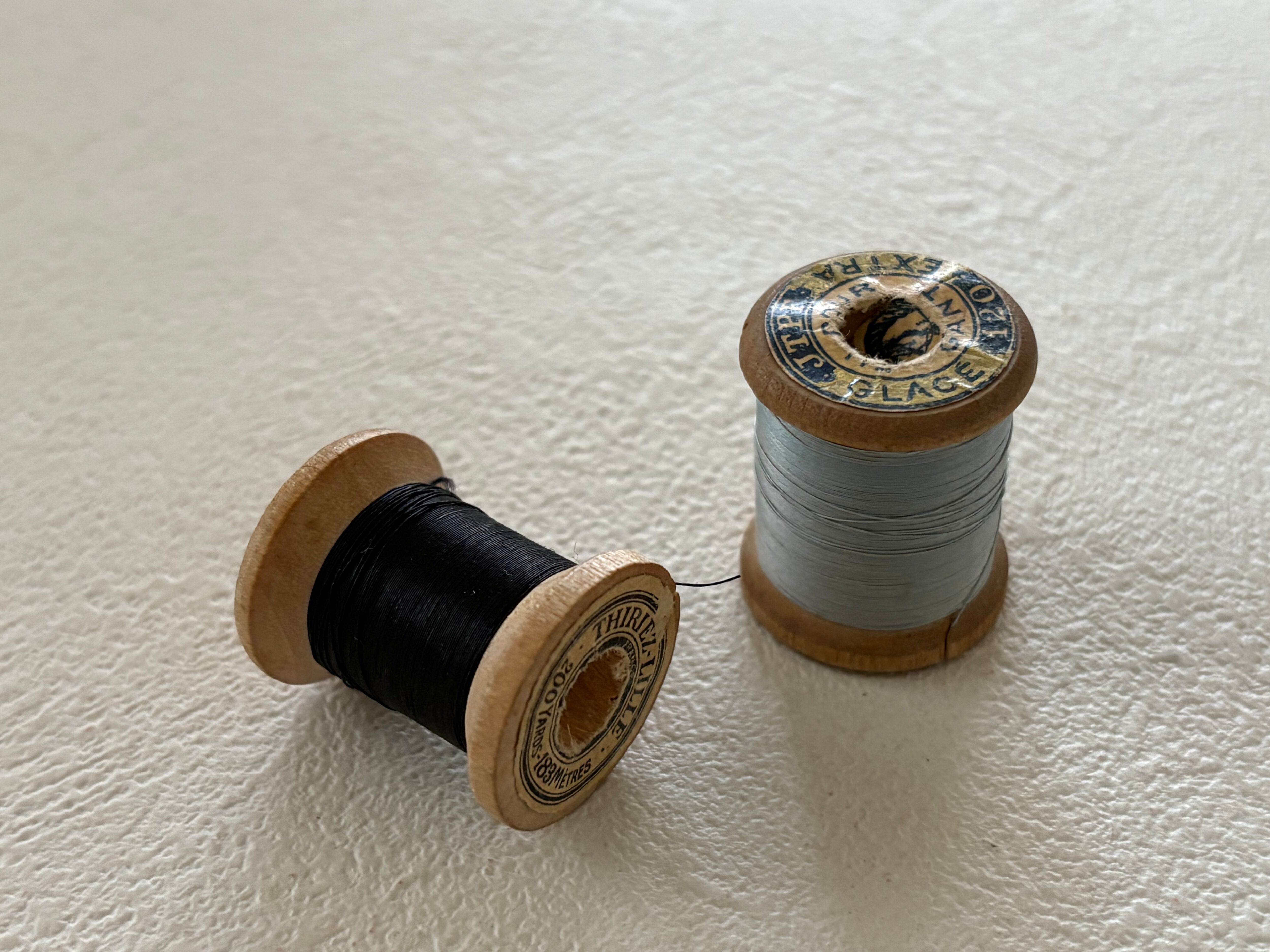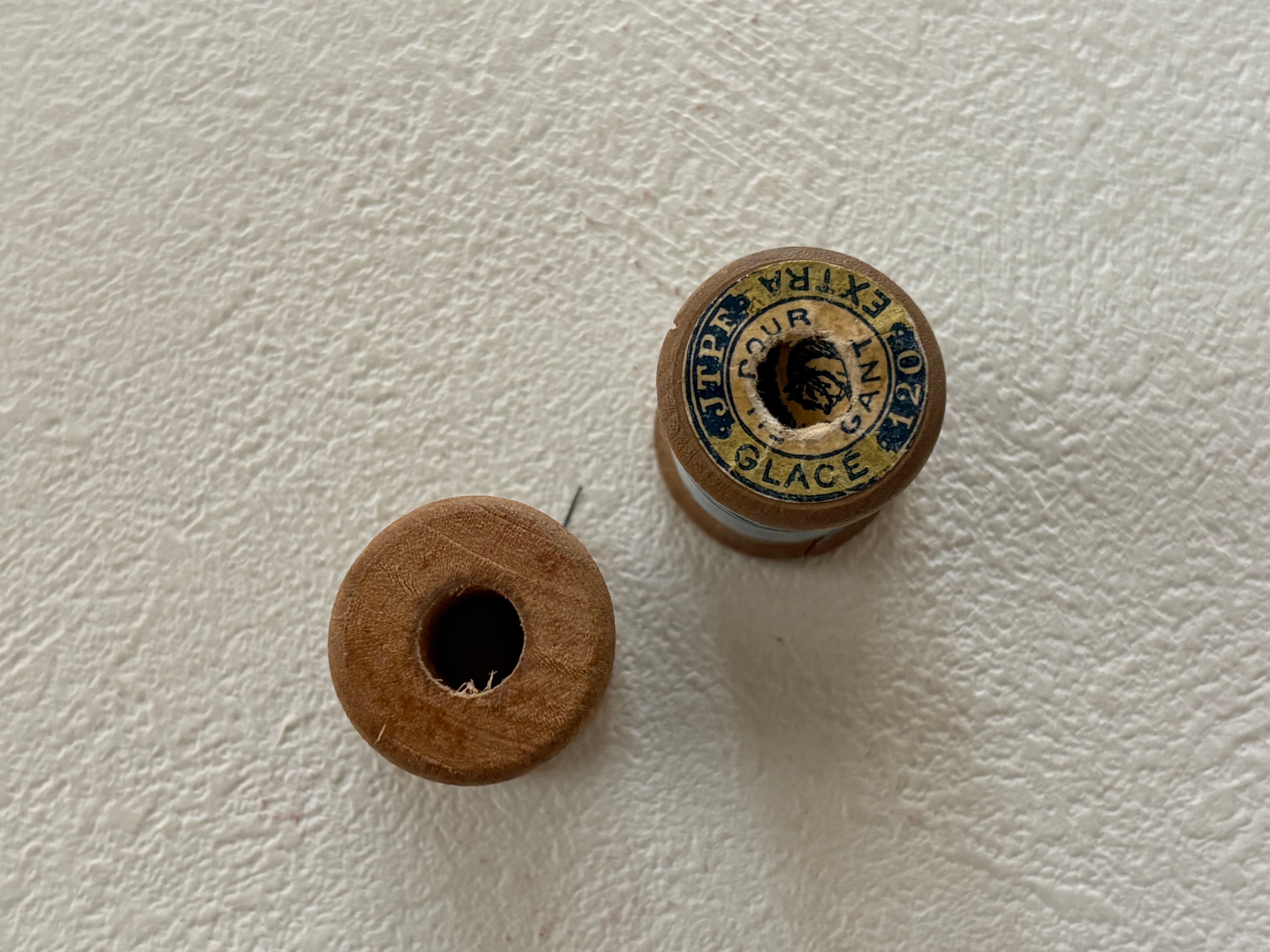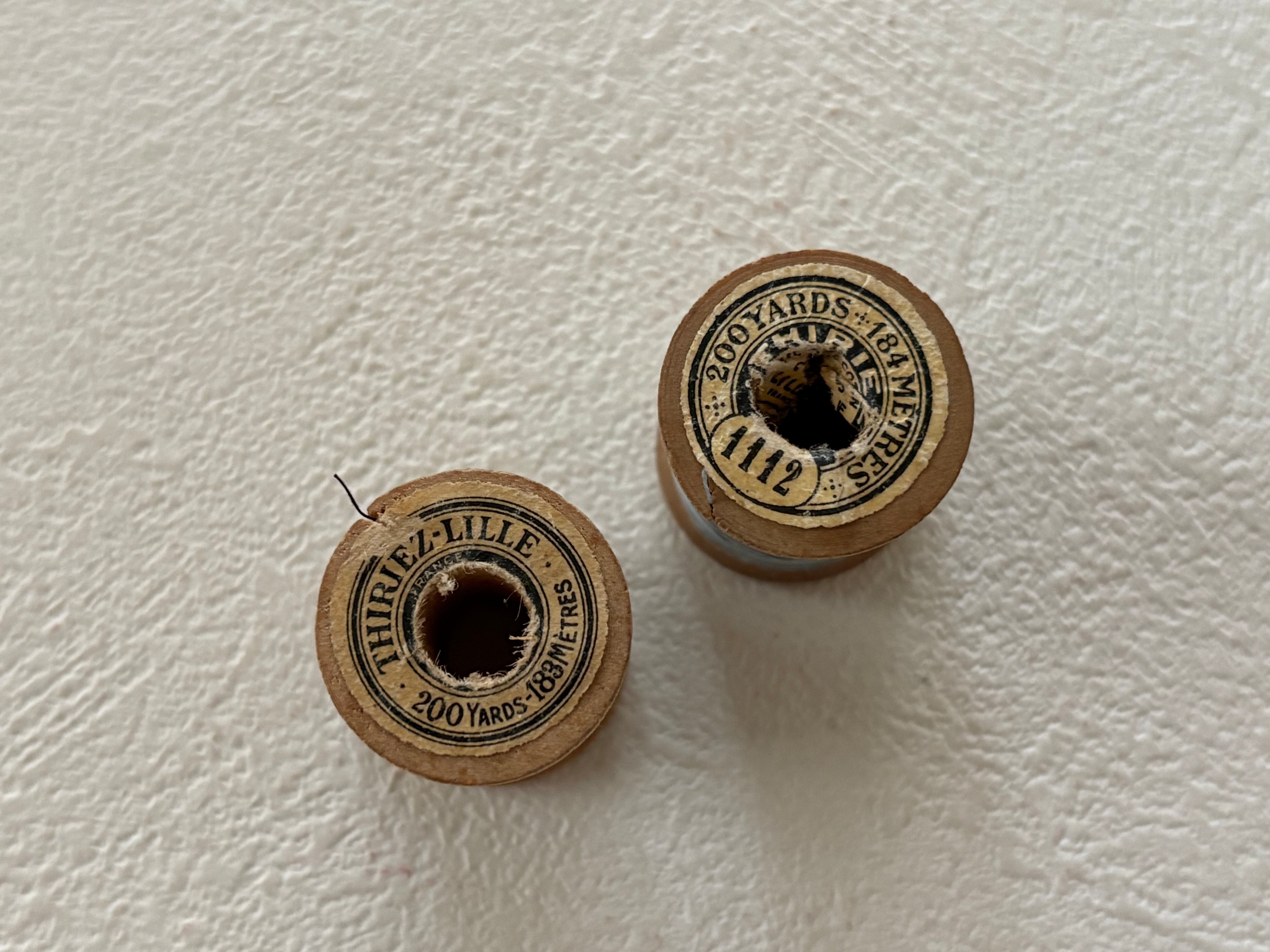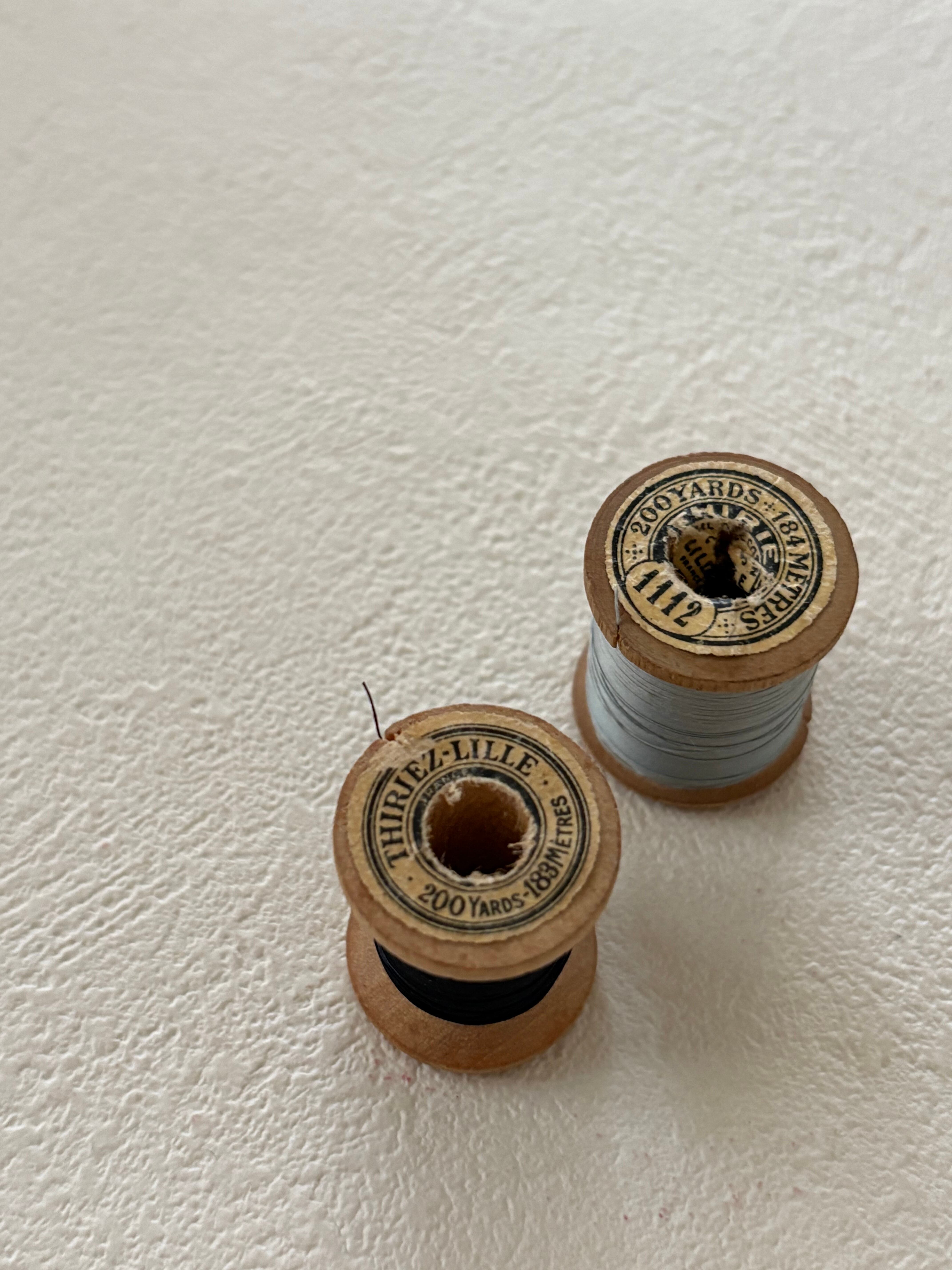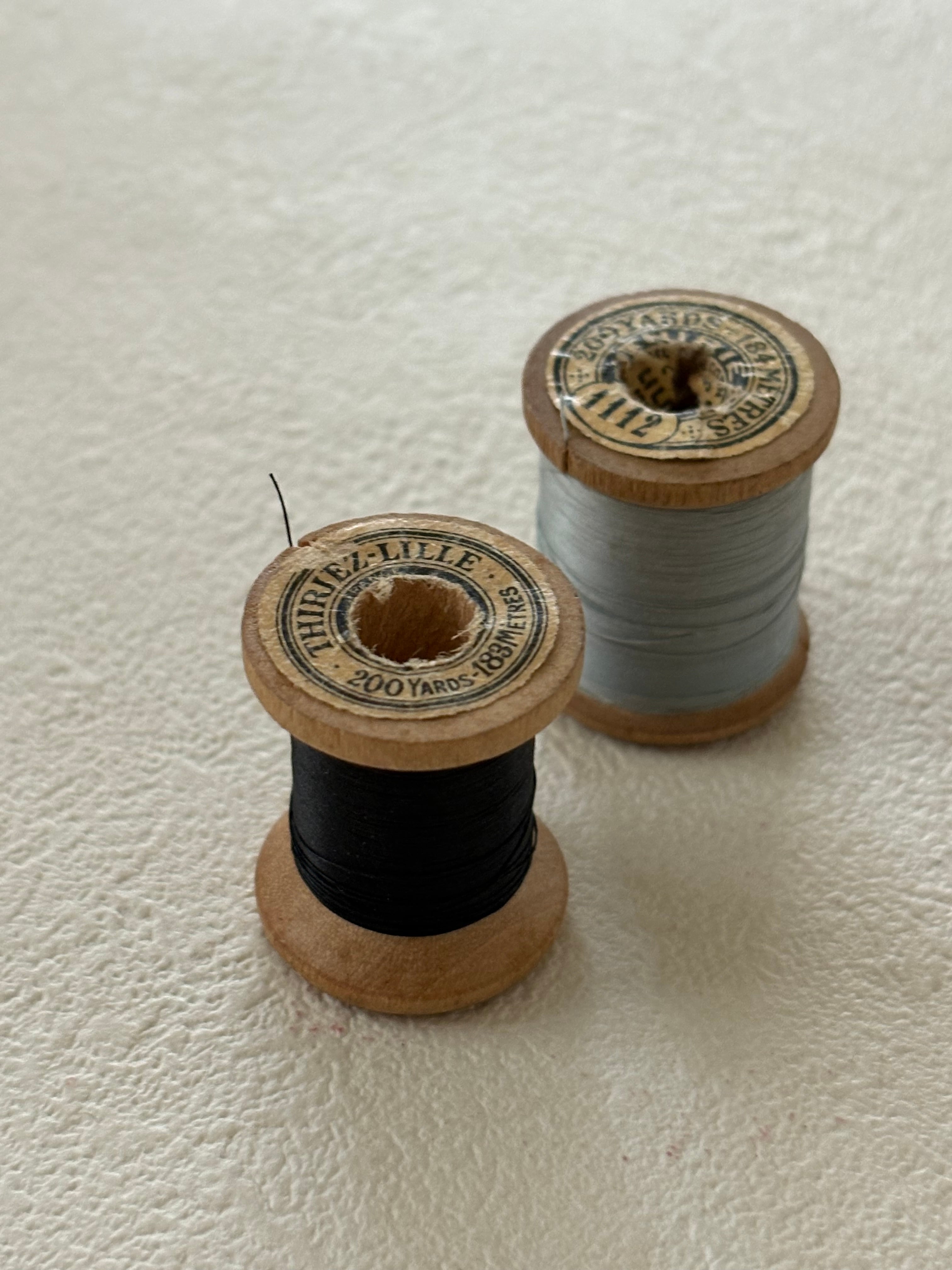 フランスアンティーク 小さな木製糸巻き 2個セット ライトブルー系/ブラック JTPF社 インテリア小物 オブジェ 撮影小物