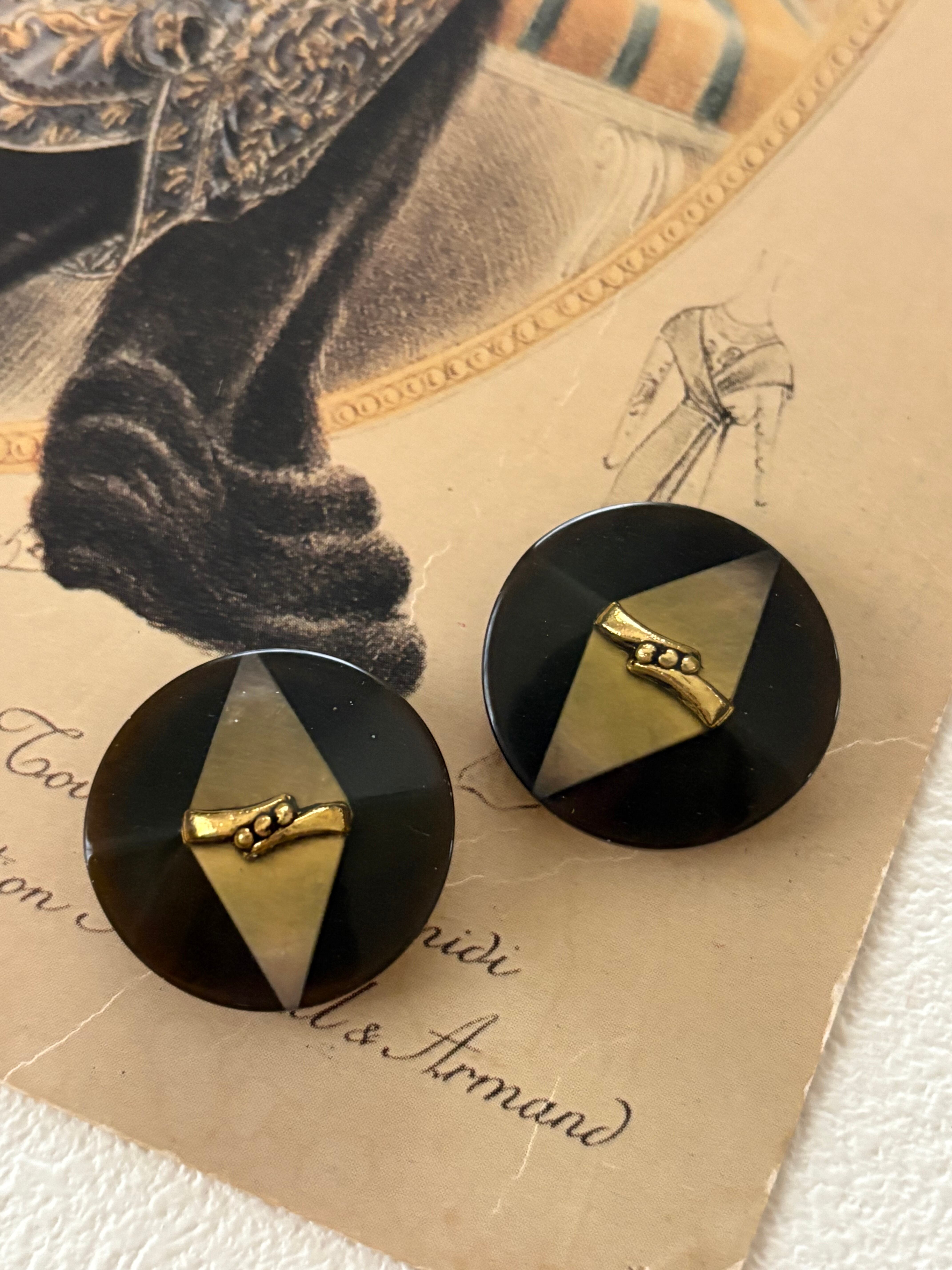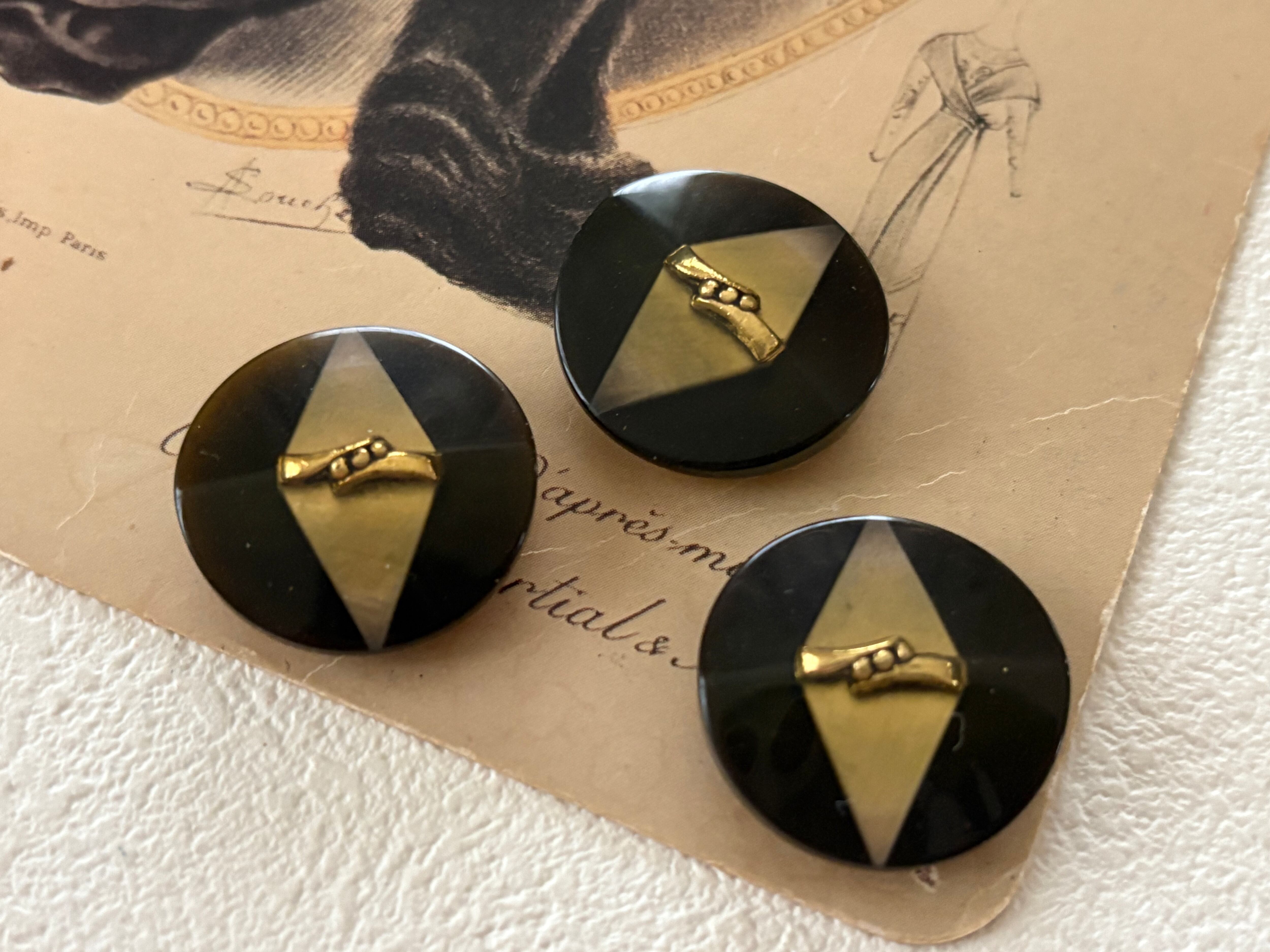 Japanese Vintage ボタン ブラウン×ゴールド 22mm 昭和レトロ アクセサリーパーツ 装飾材 カルトナージュ