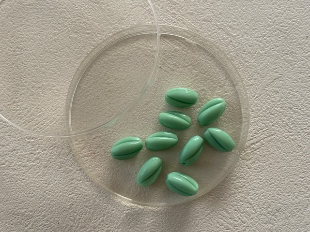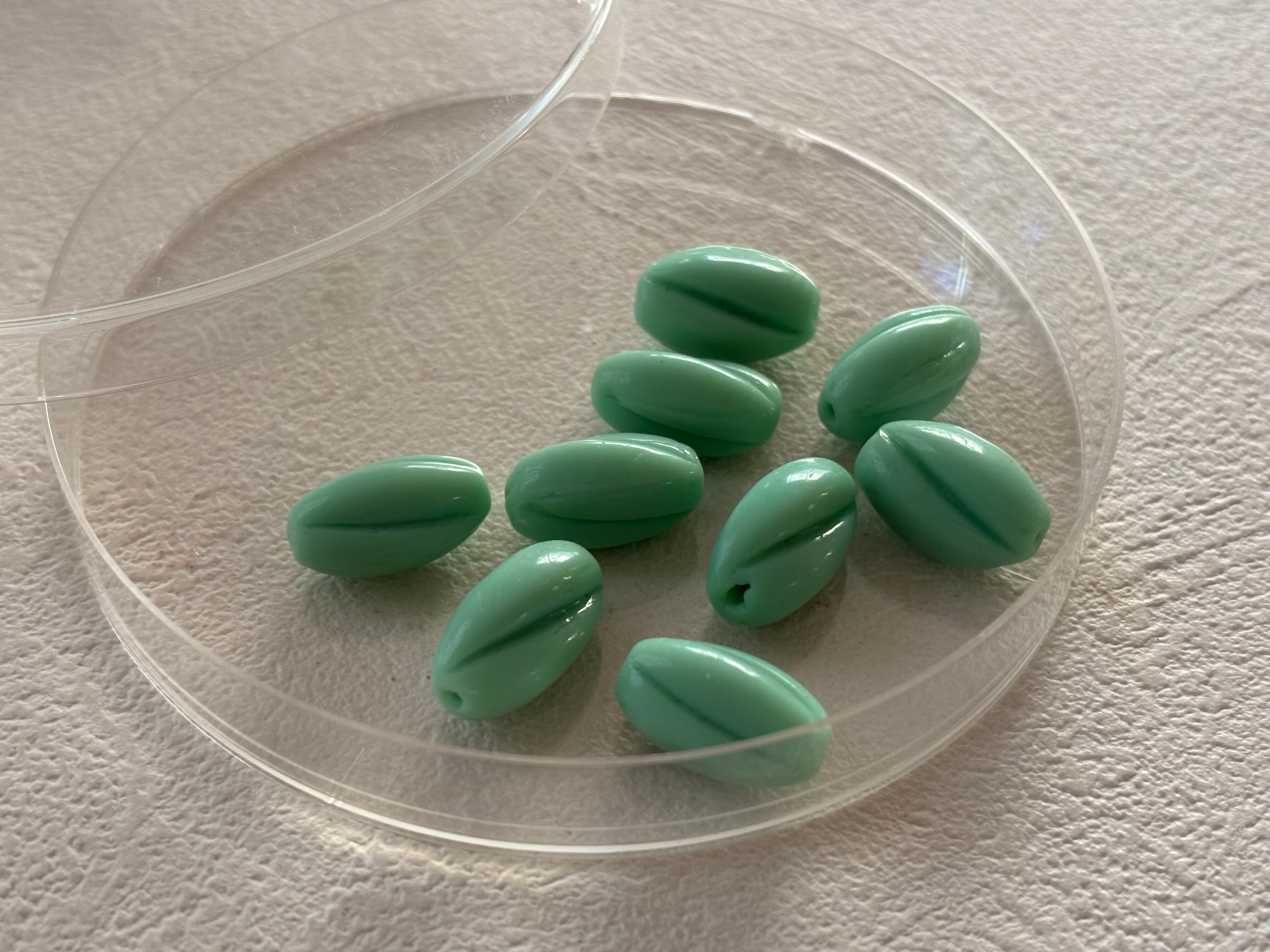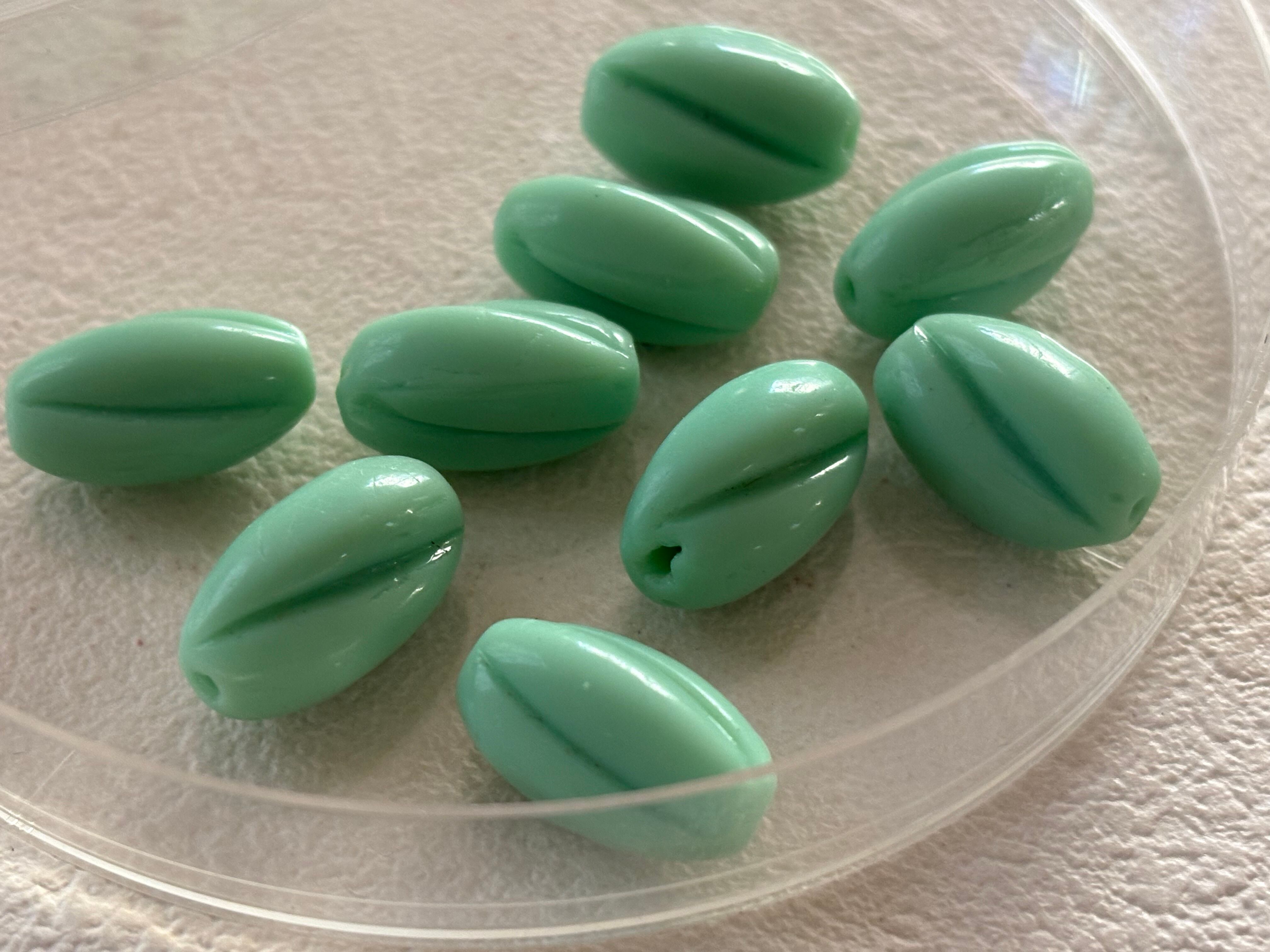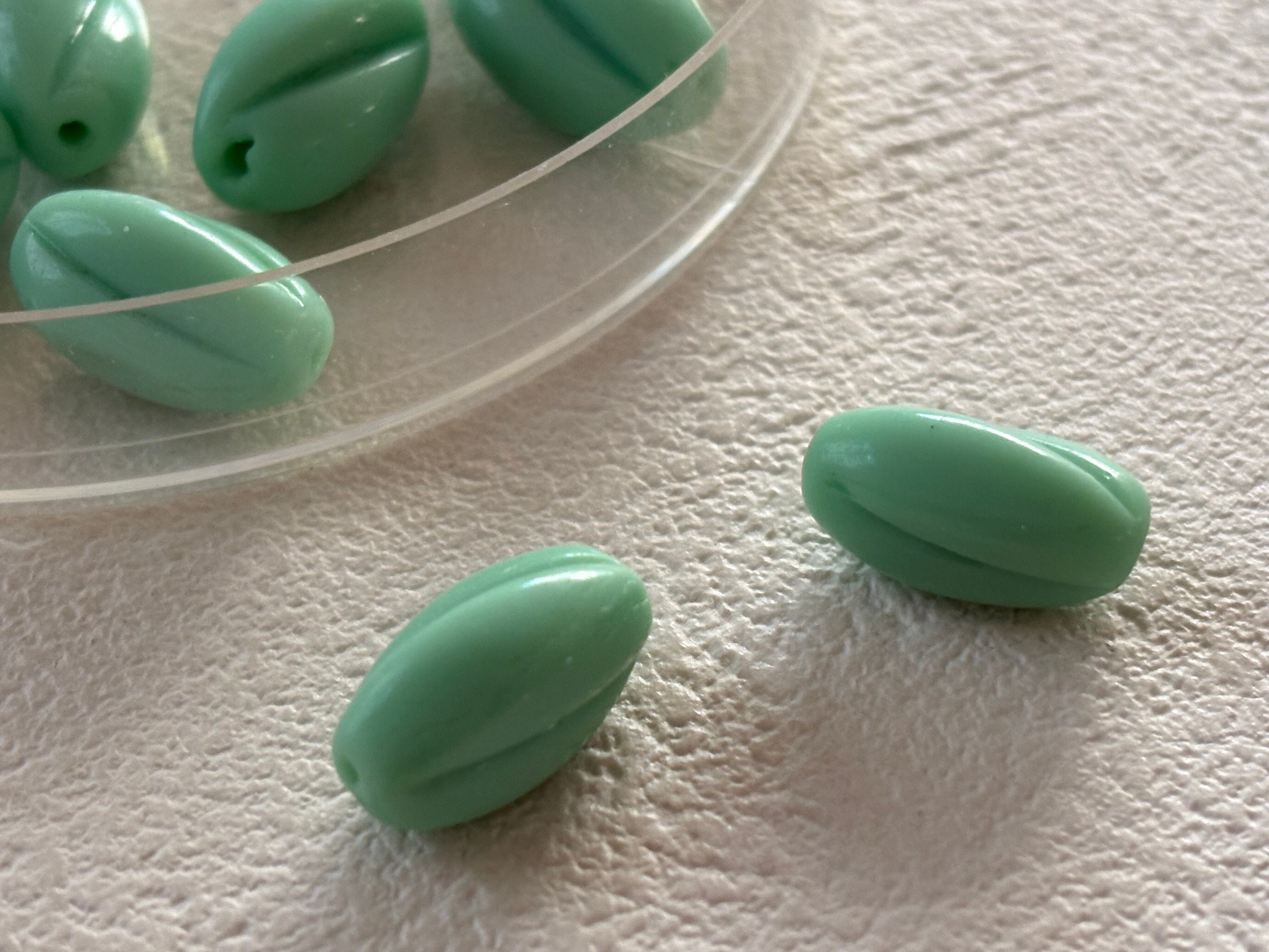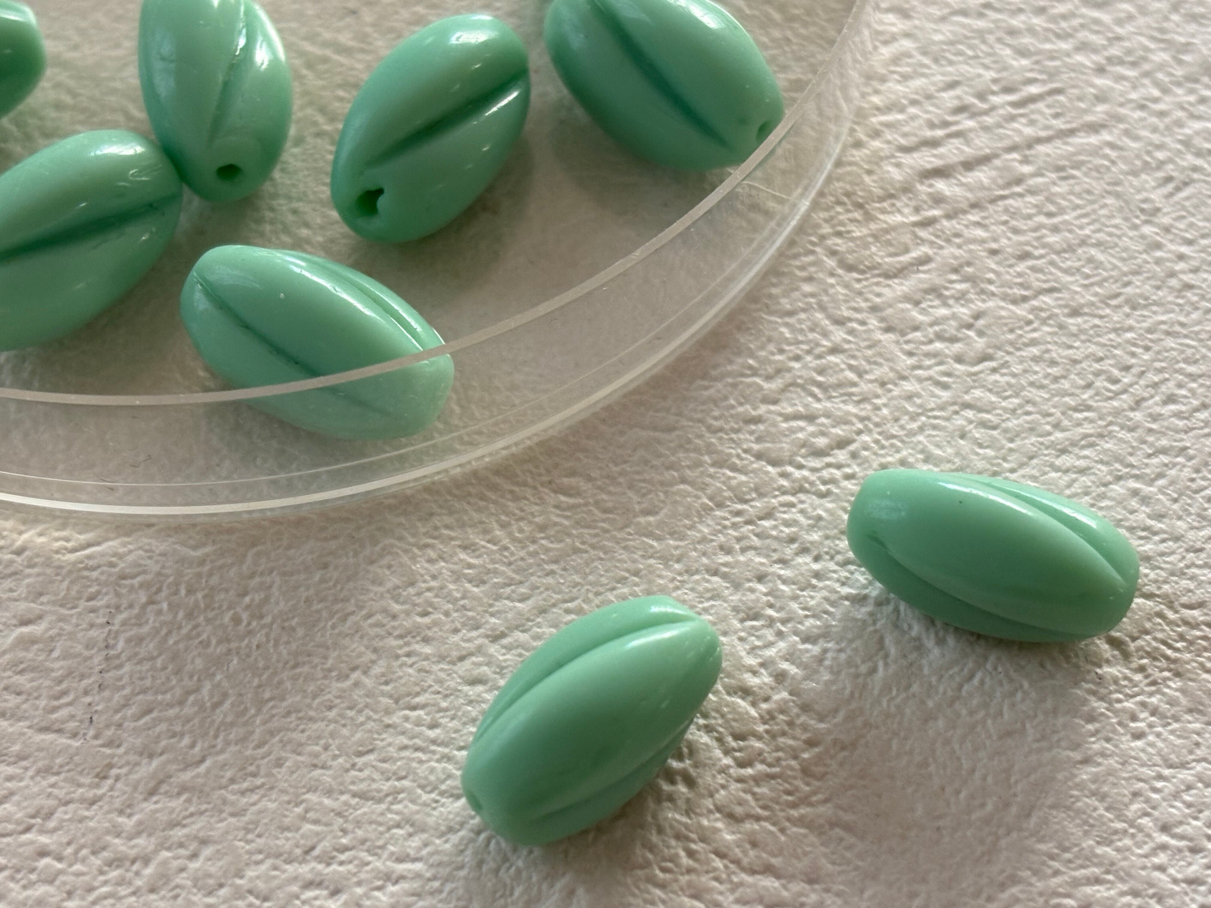 ミルキーなエメラルドグリーンのツイストビーズ。