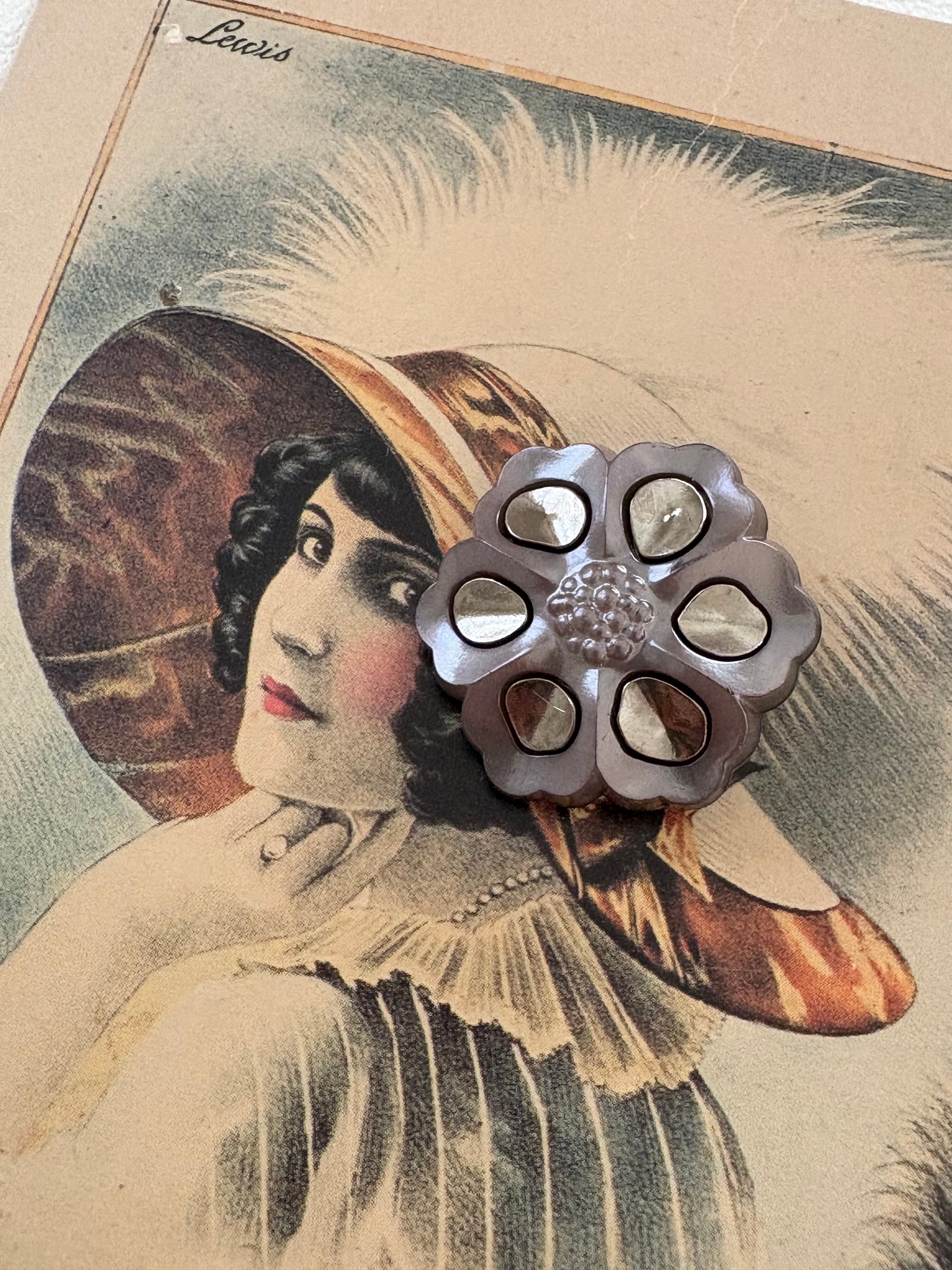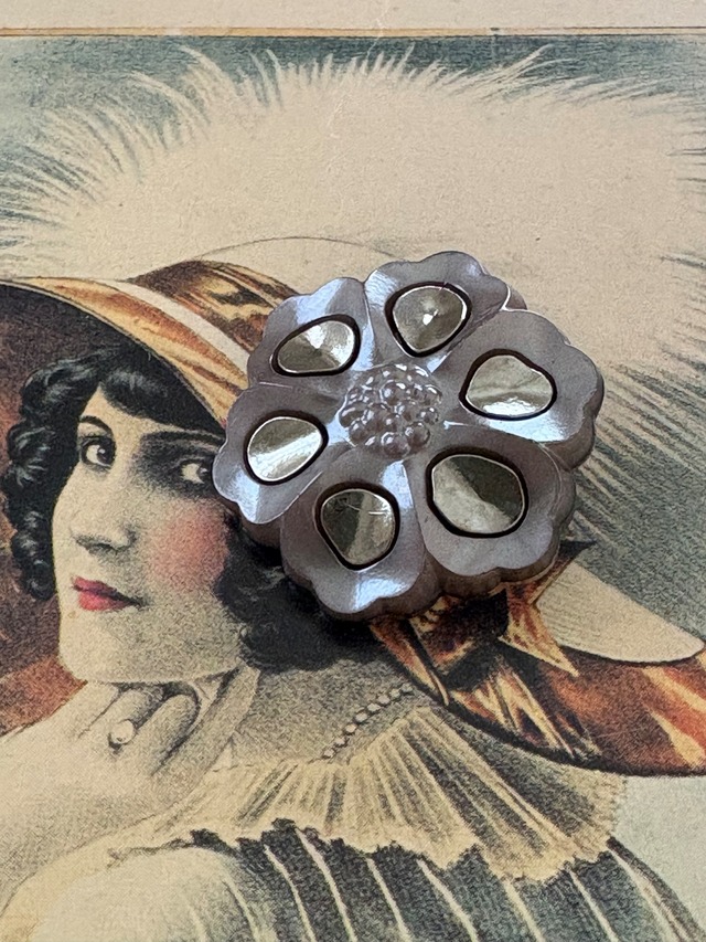 Japanese Vintage ボタン パープル系×シルバー 27mm フラワー 昭和レトロ アクセサリーパーツ 装飾材 カルトナージュ