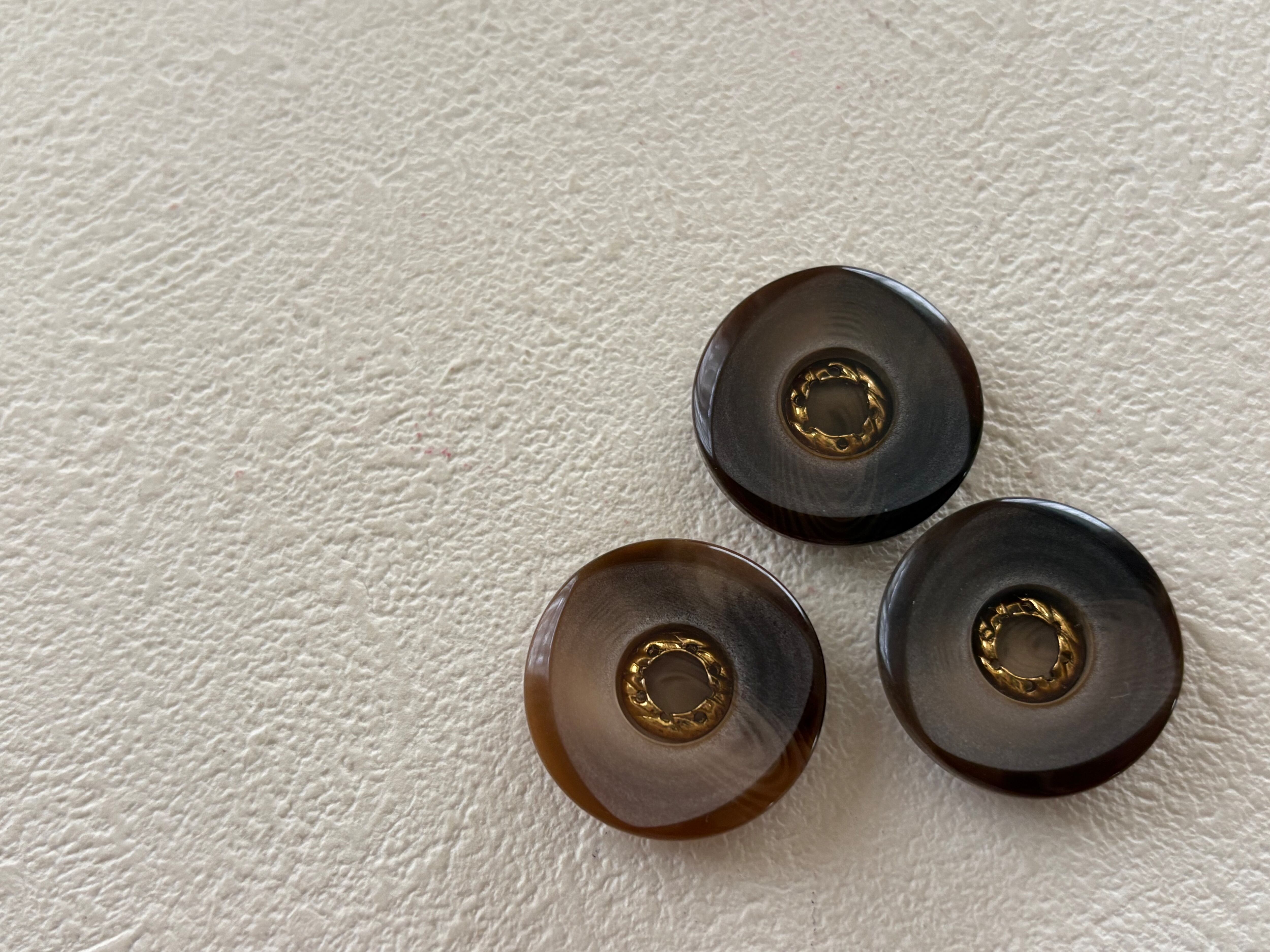 Japanese Vintage ボタン 22mm ダークブラウン×ゴールド プラスチックボタン 昭和レトロ アクセサリーパーツ 装飾材 カルトナージュ
