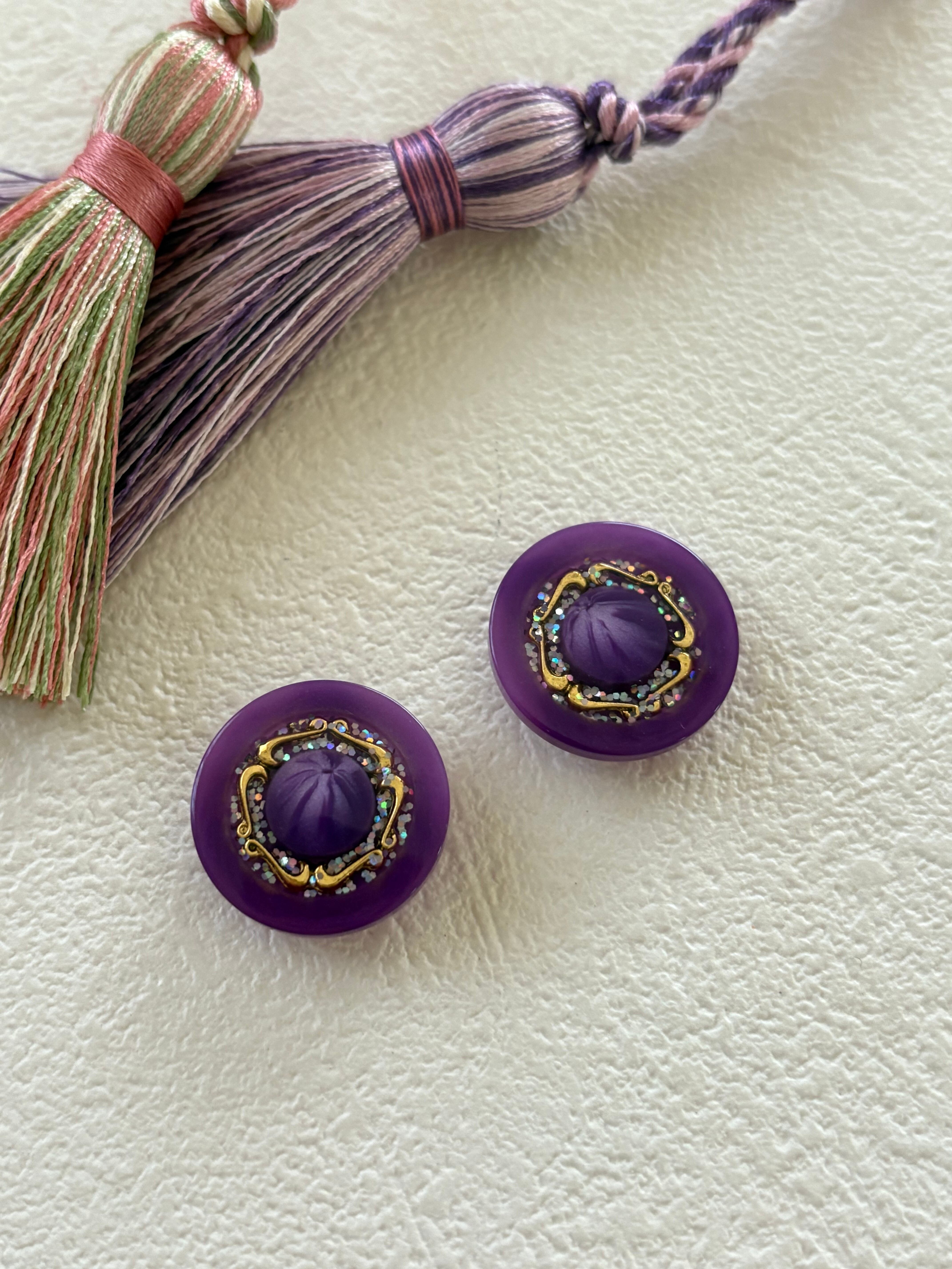 Japanese Vintage ボタン 17mm プラスチックボタン グリッター パープル×ゴールド 昭和レトロ アクセサリーパーツ 装飾材 カルトナージュ