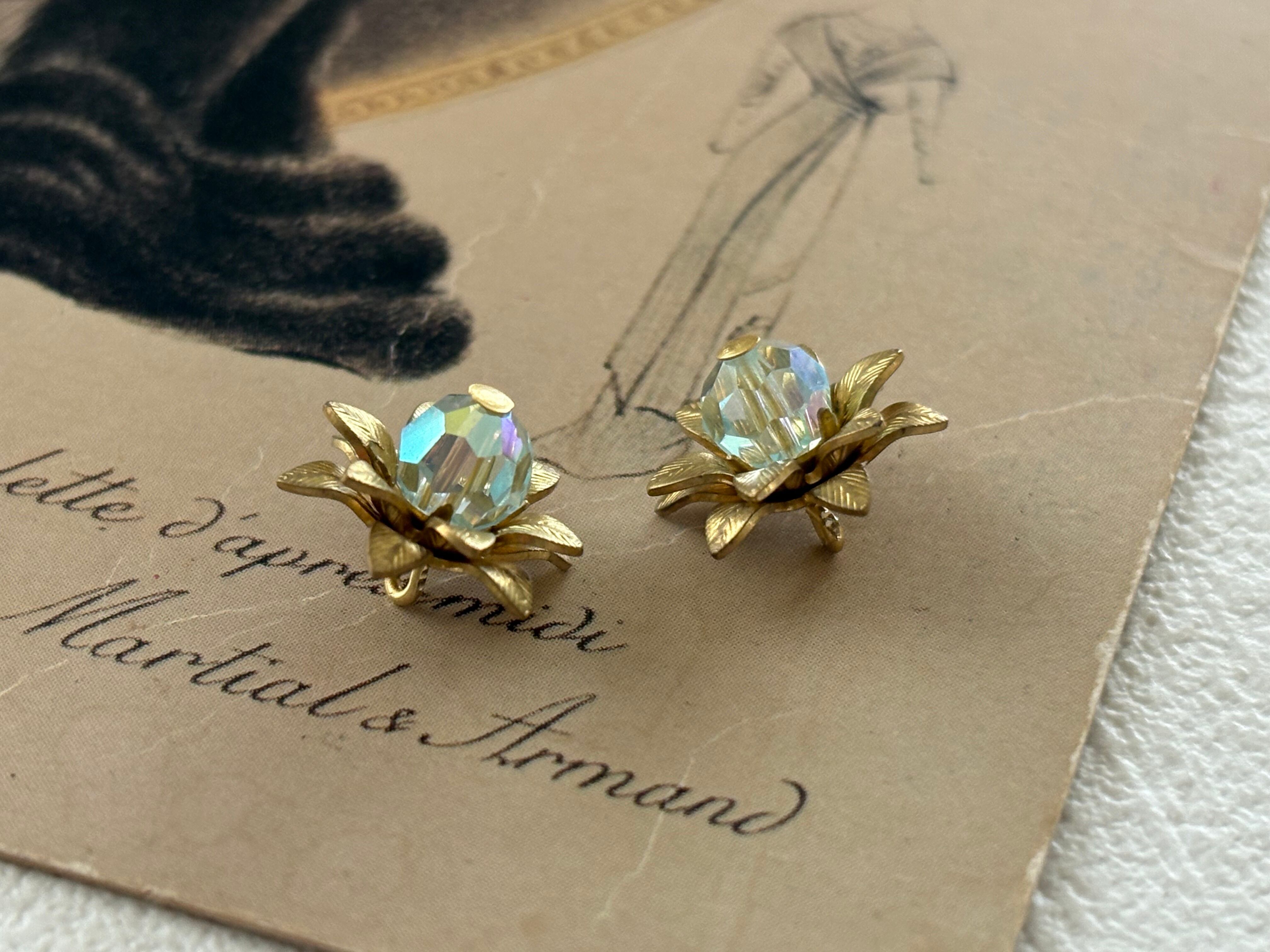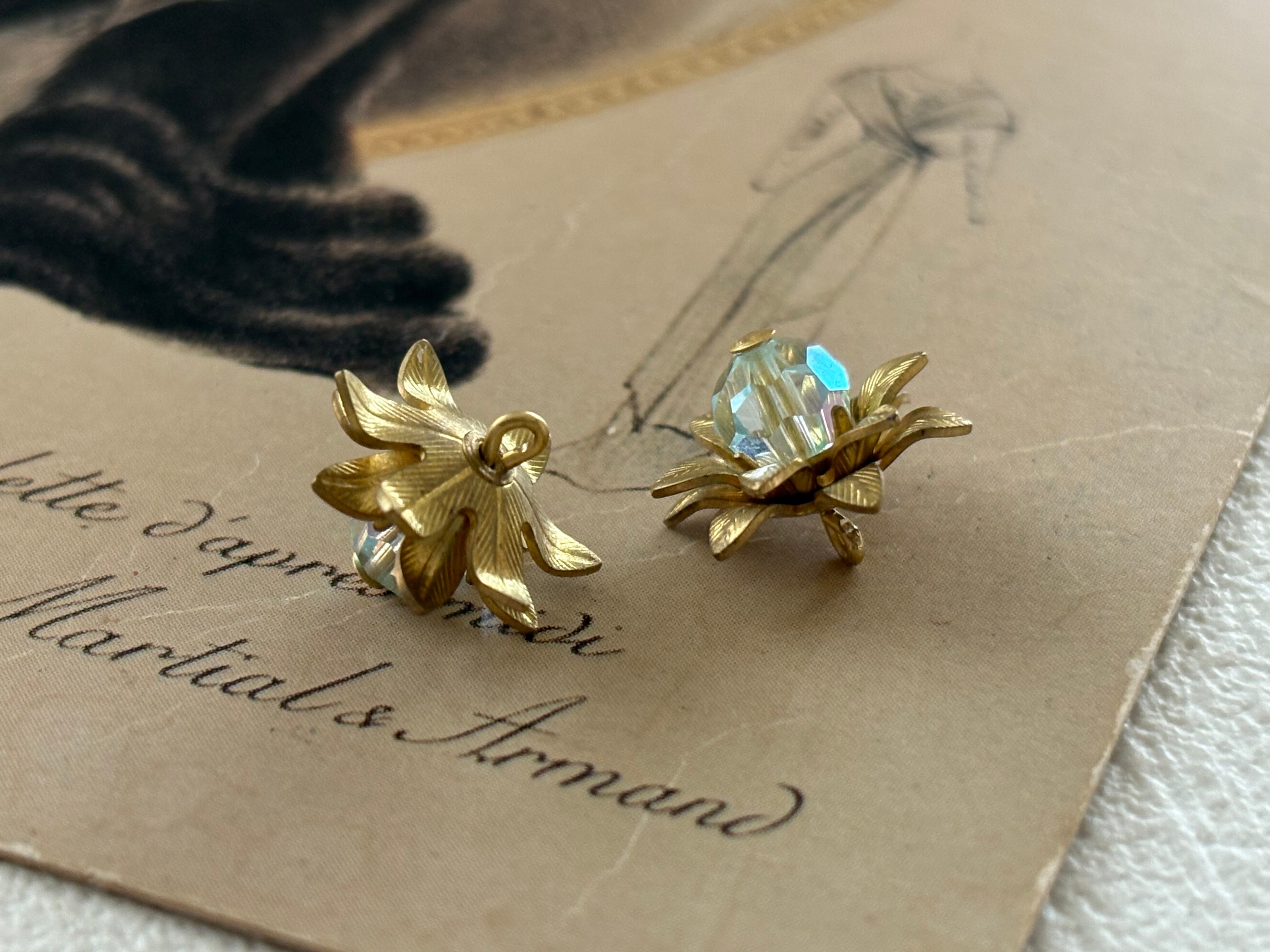 輸入デザインパーツ 小さな立体お花型パーツ 真鍮 クリスタルビーズ USA ゴールド アクセサリーパーツ デコレーション材