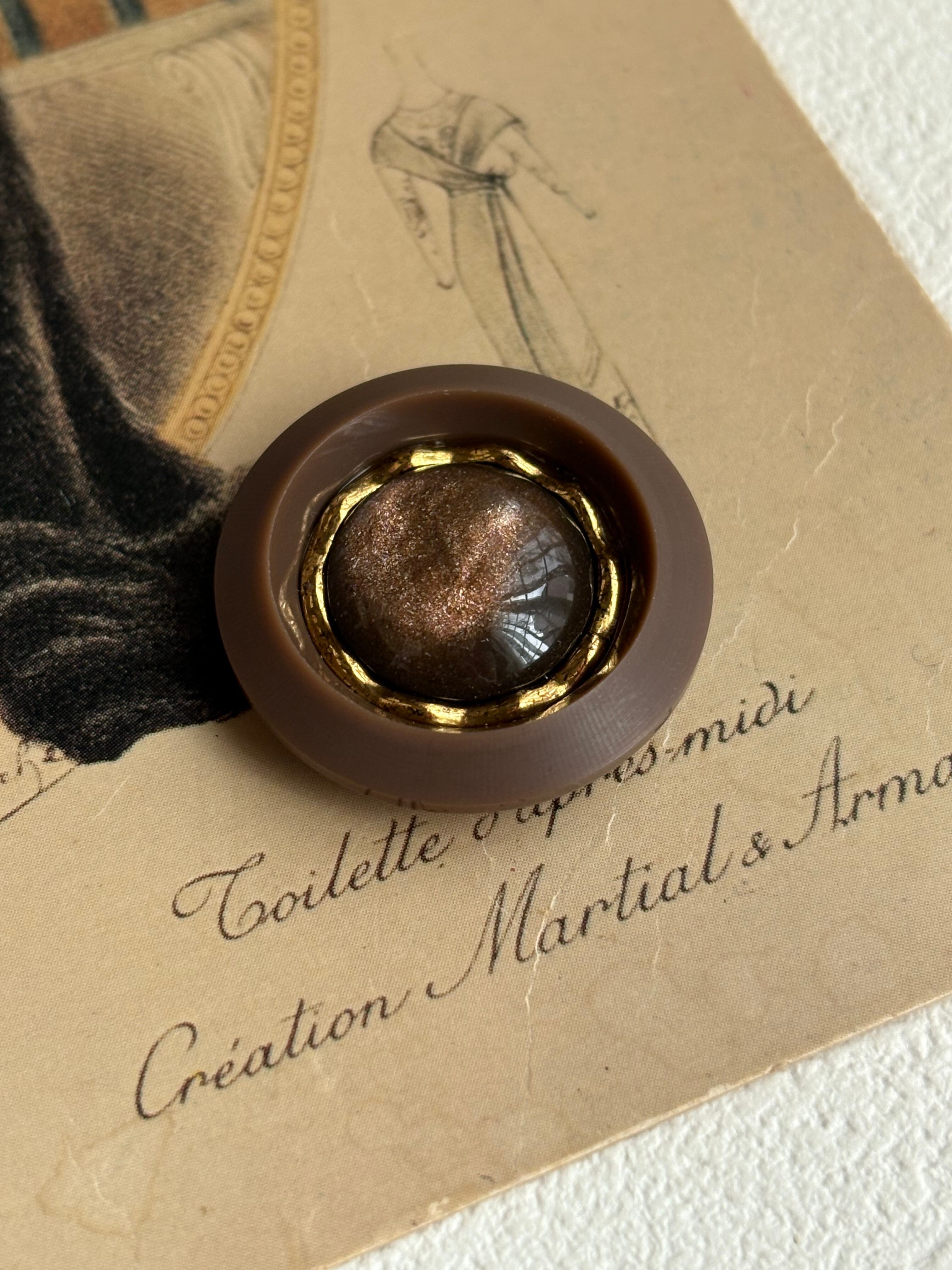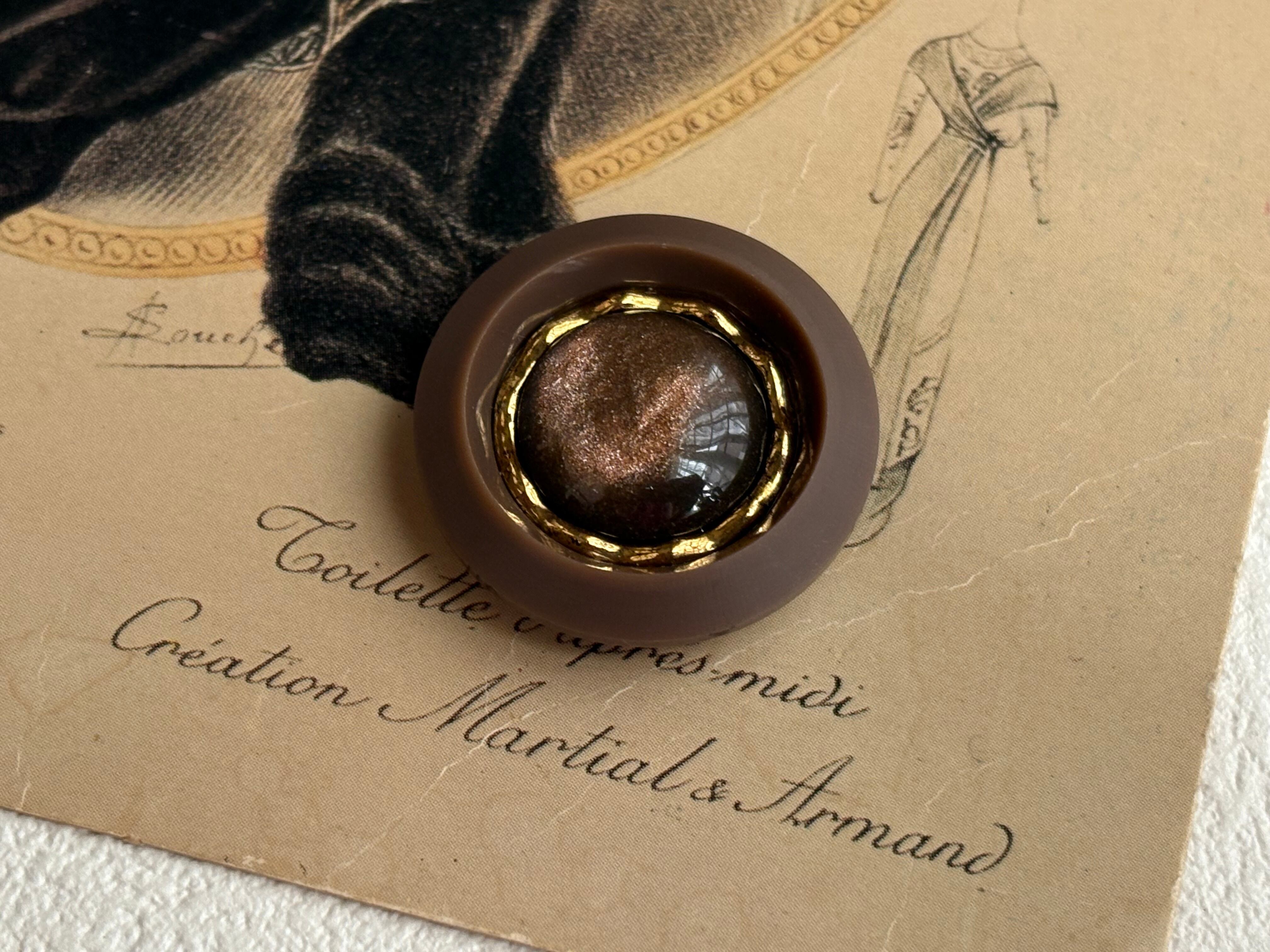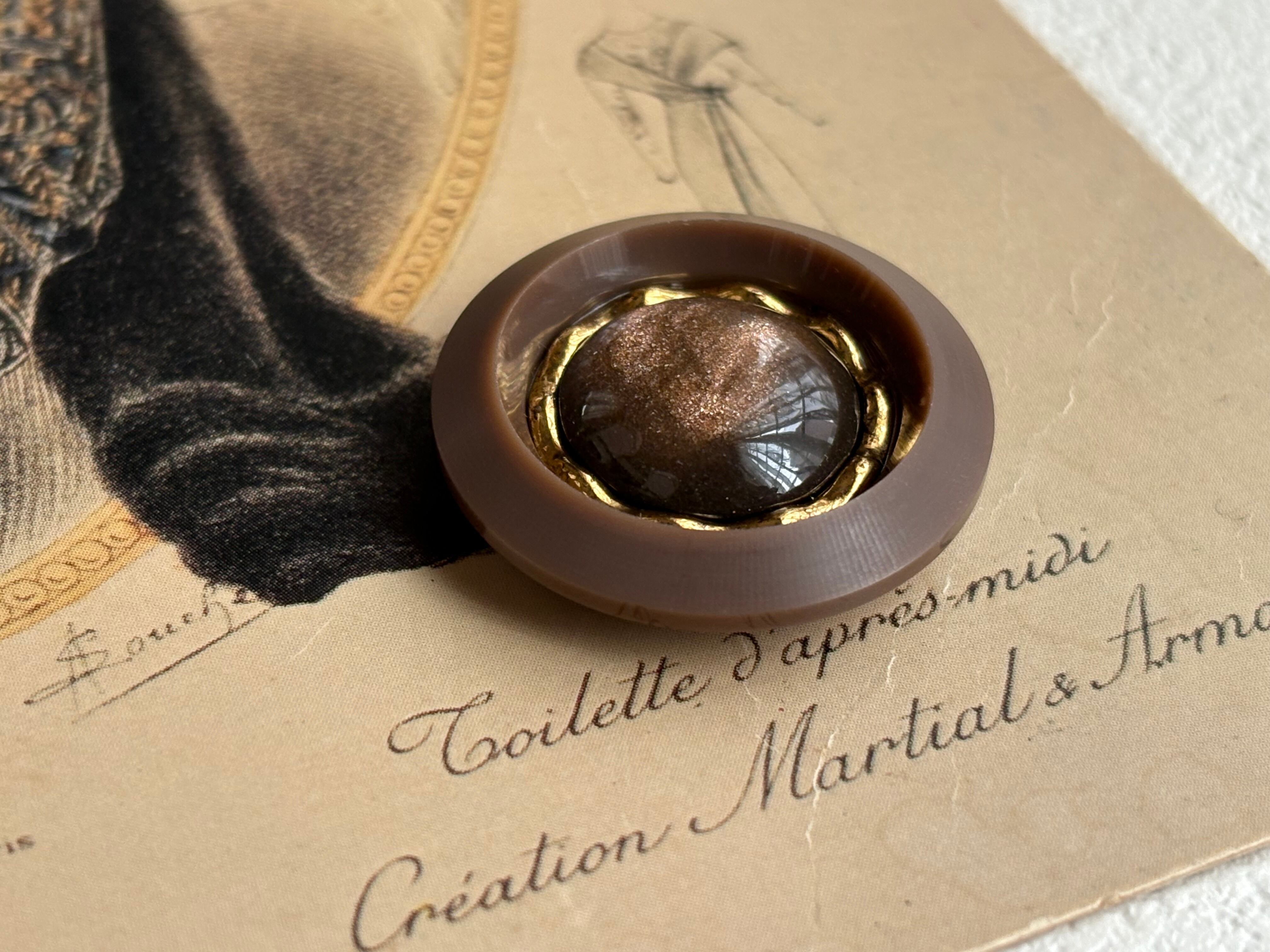 Japanese Vintage ボタン 22mm ブラウン×ゴールド カボション 昭和レトロ アクセサリーパーツ 装飾材 カルトナージュ