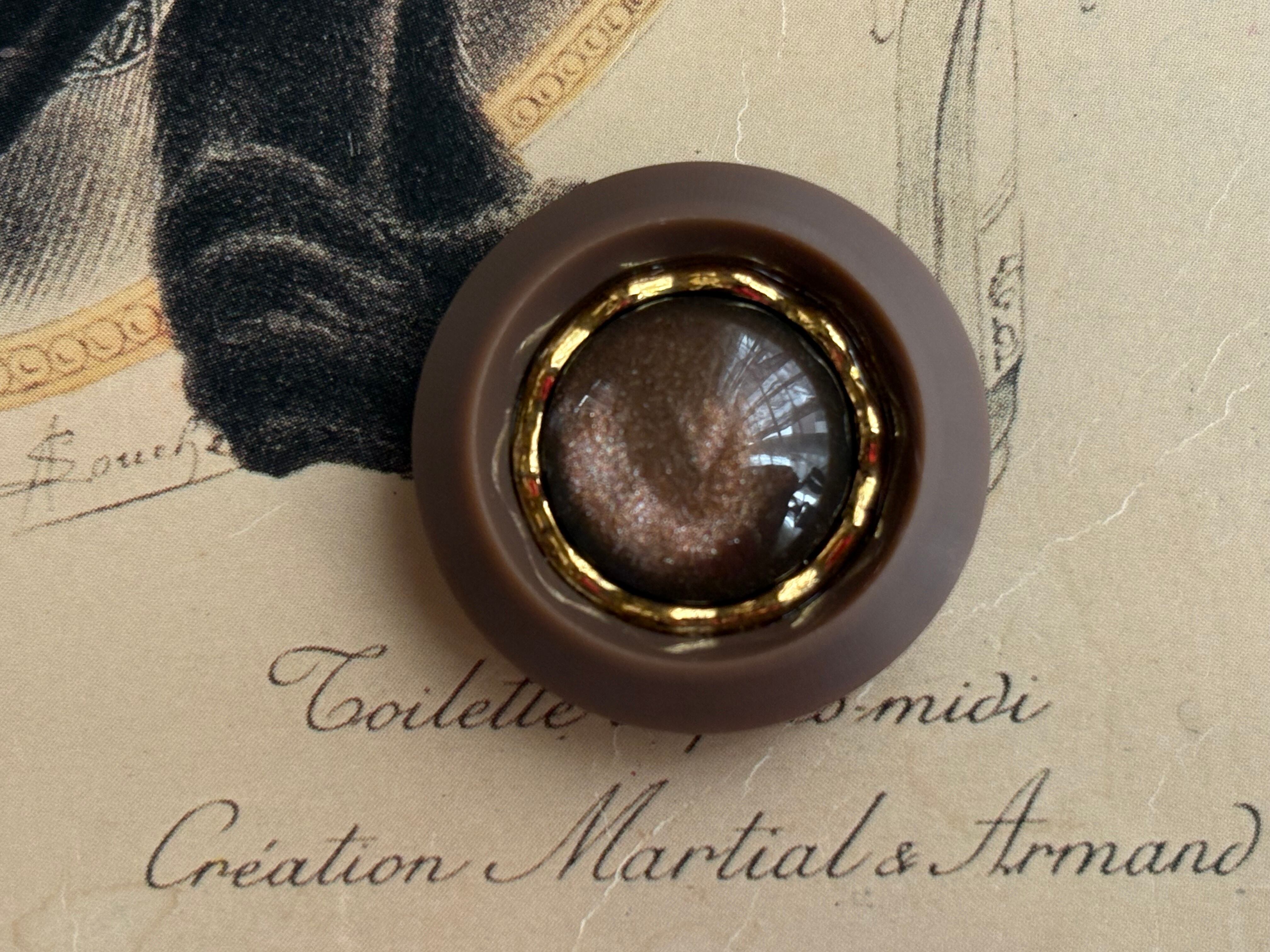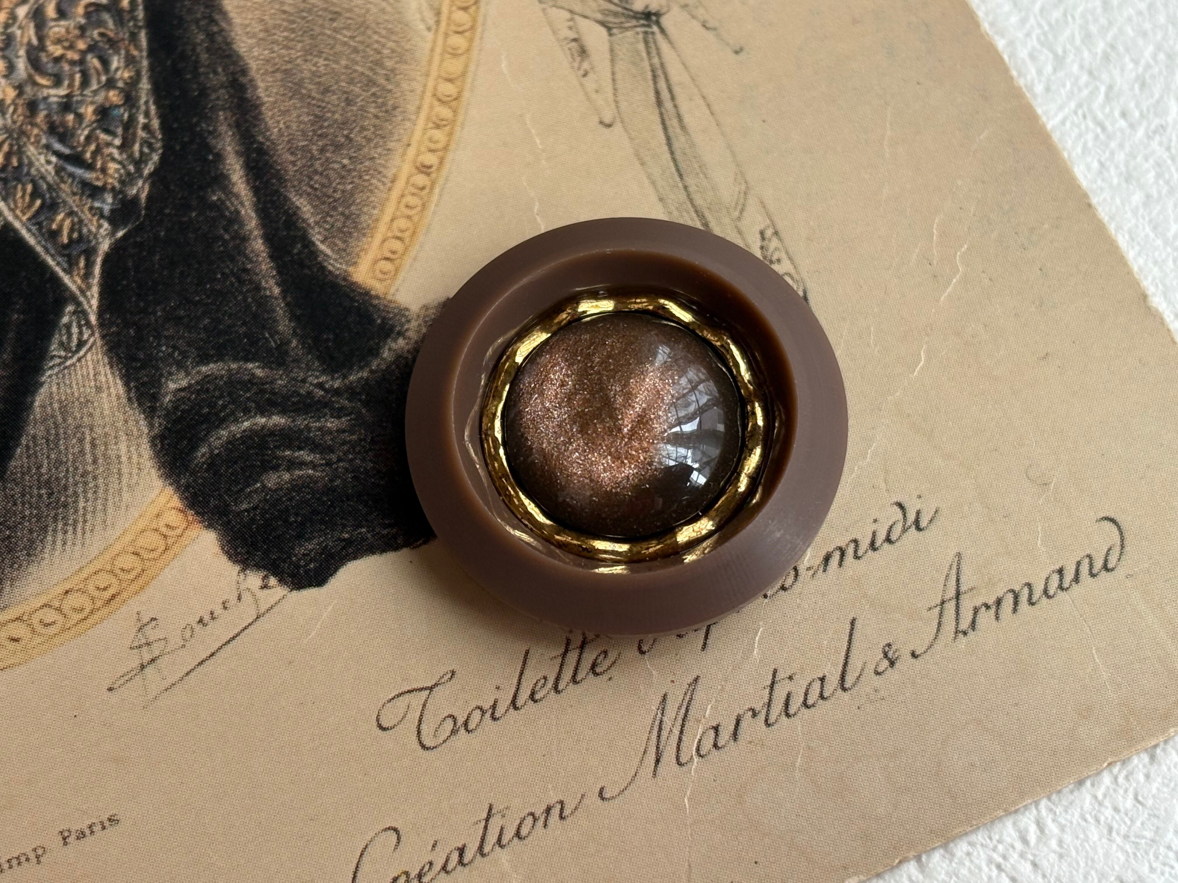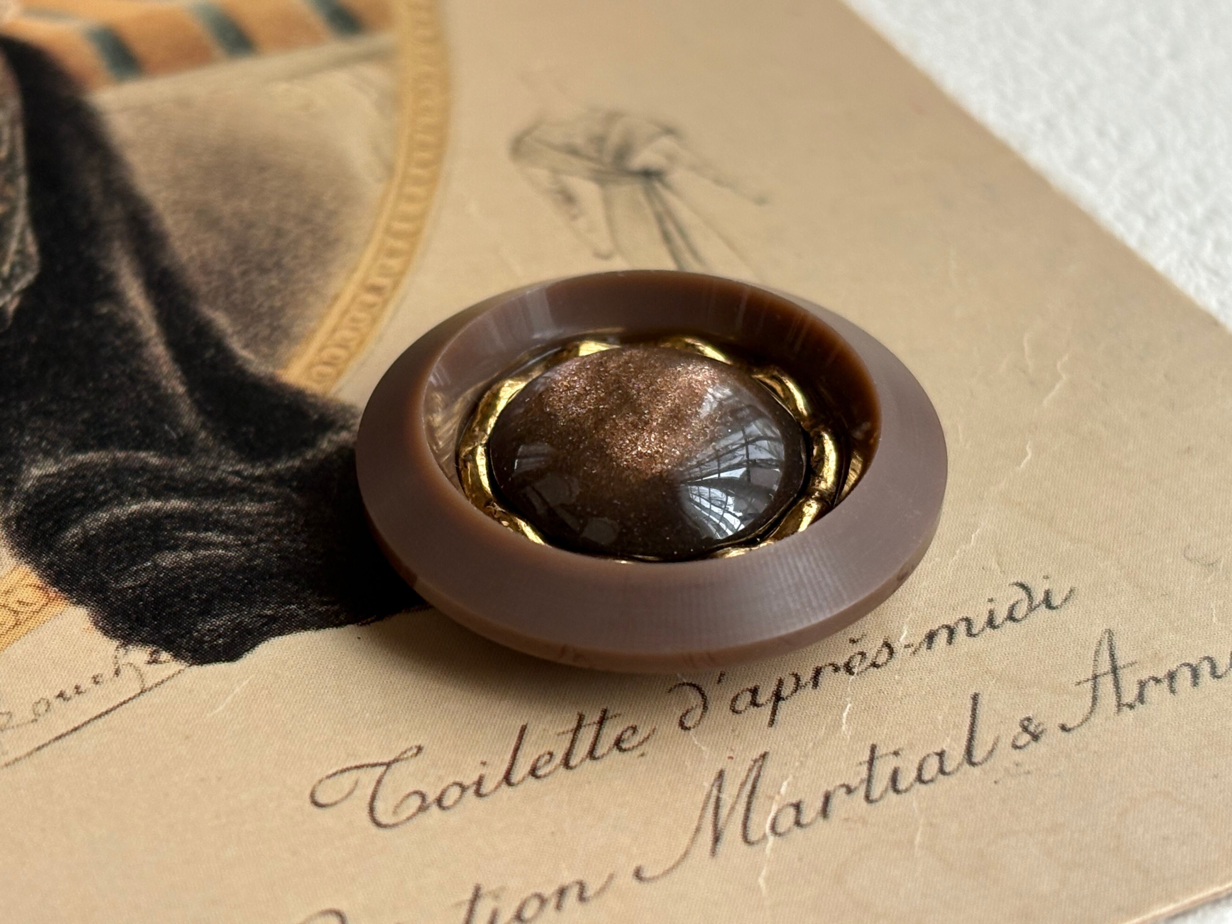 Japanese Vintage ボタン 22mm ブラウン×ゴールド カボション 昭和レトロ アクセサリーパーツ 装飾材 カルトナージュ