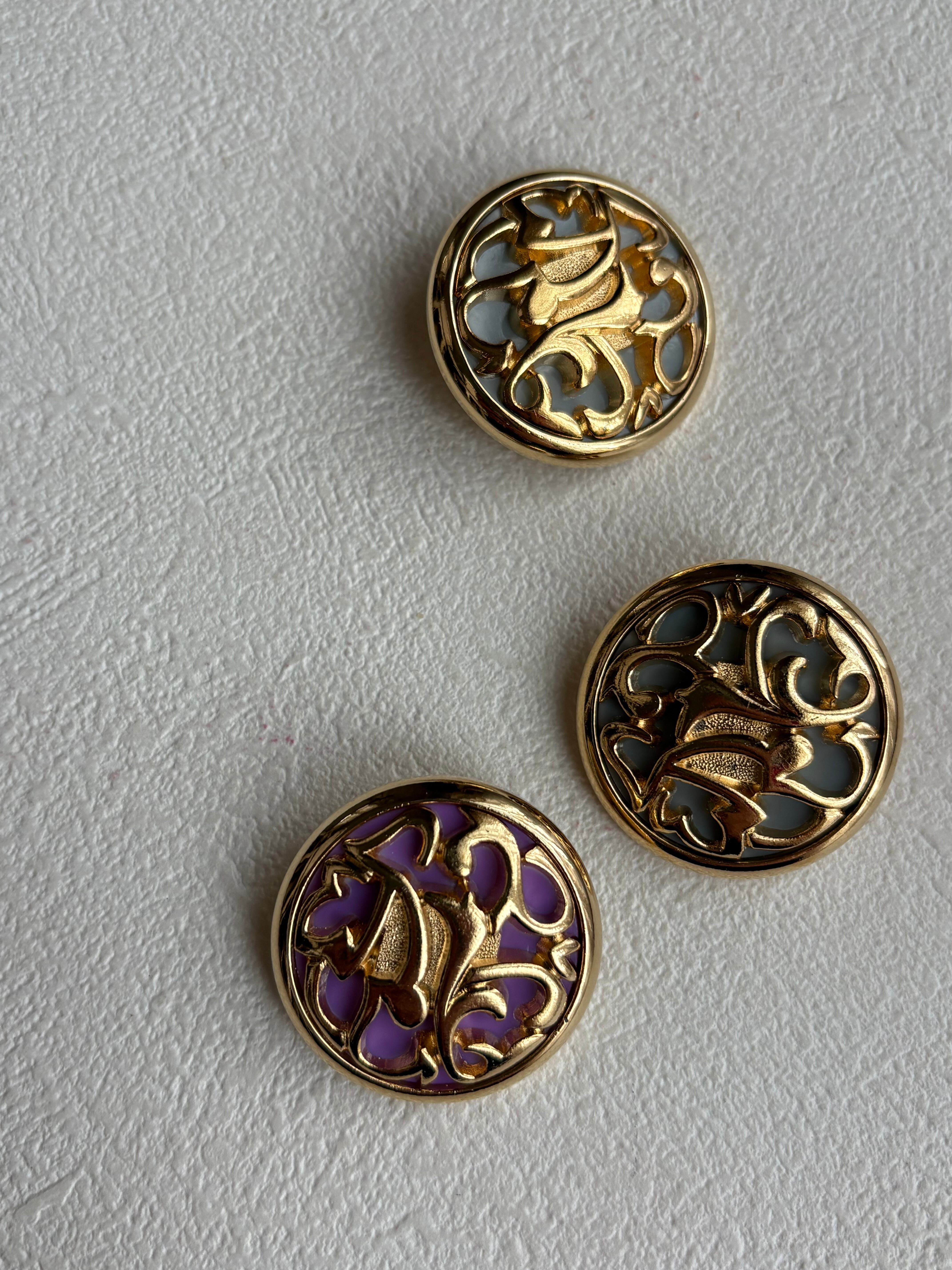 ゴールドの透かしのデザイン、大きなサイズが存在感のある目をひくボタン。