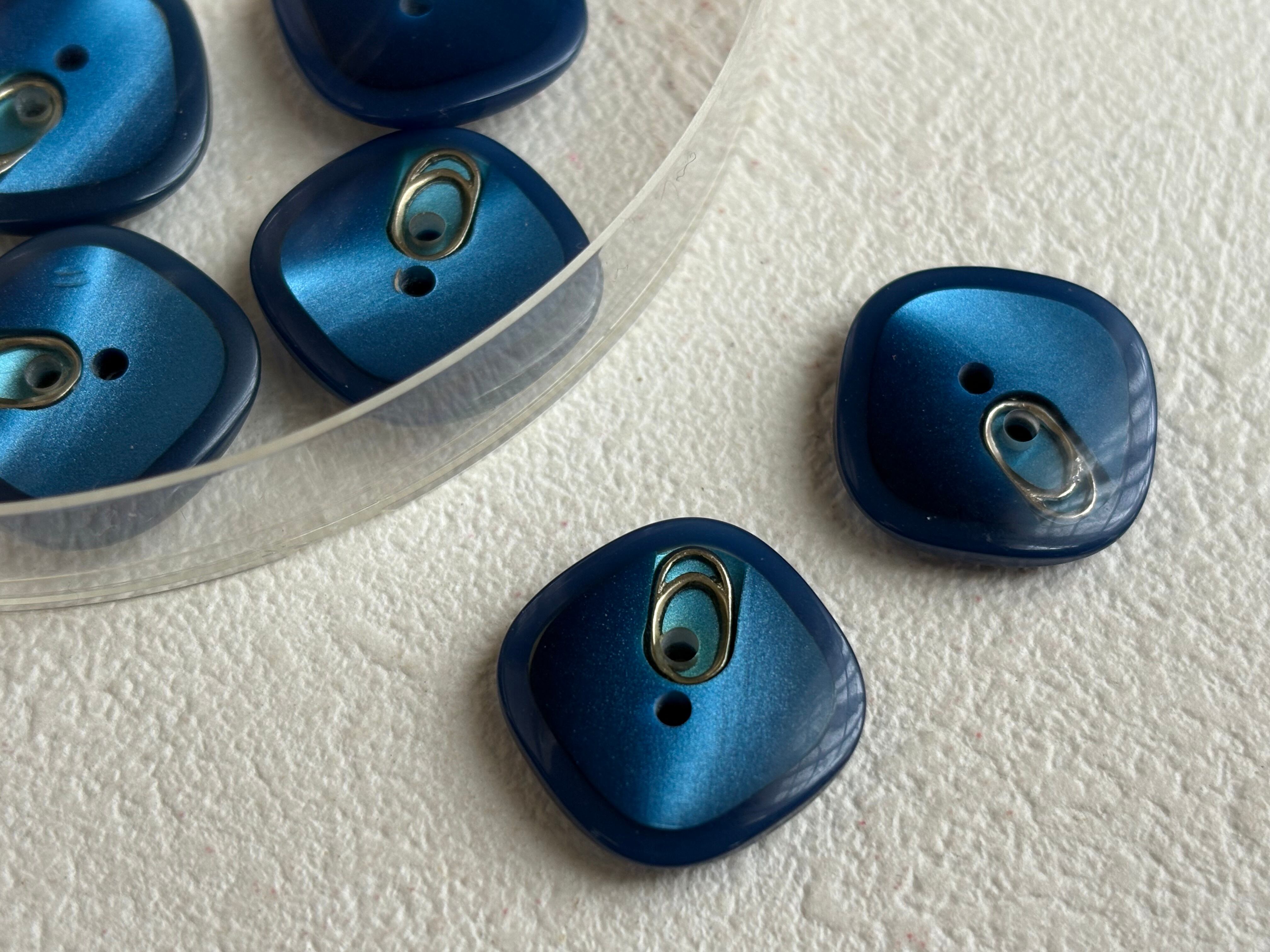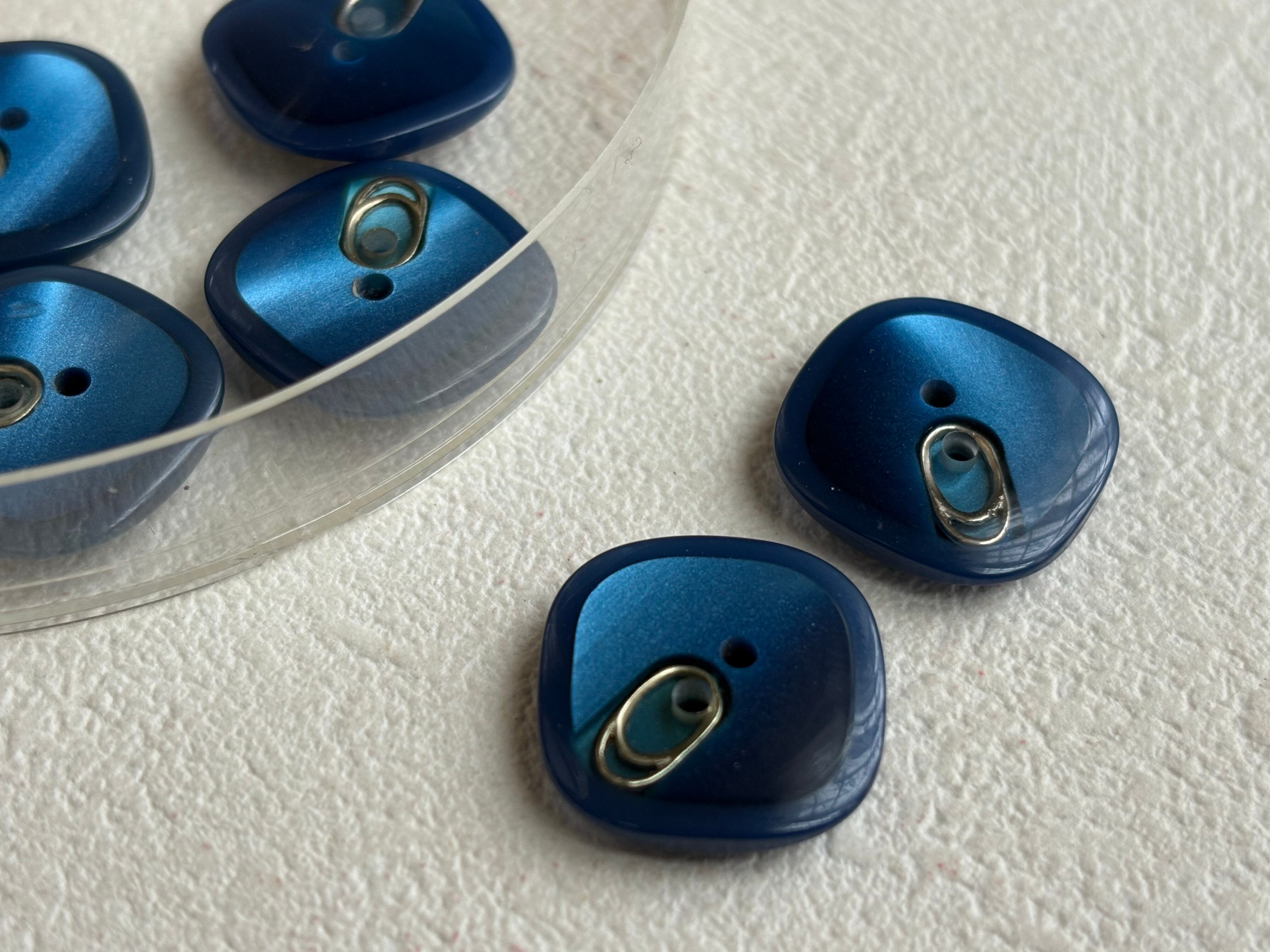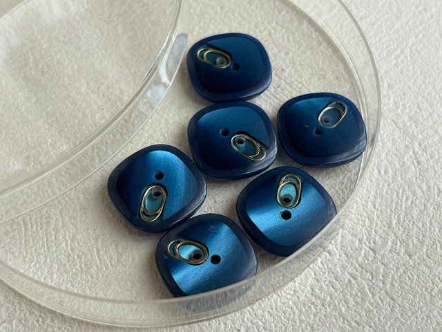 Japanese Vintage ボタン 角なしスクウェア ブルー 17mm 昭和レトロ アクセサリーパーツ 装飾材 カルトナージュ