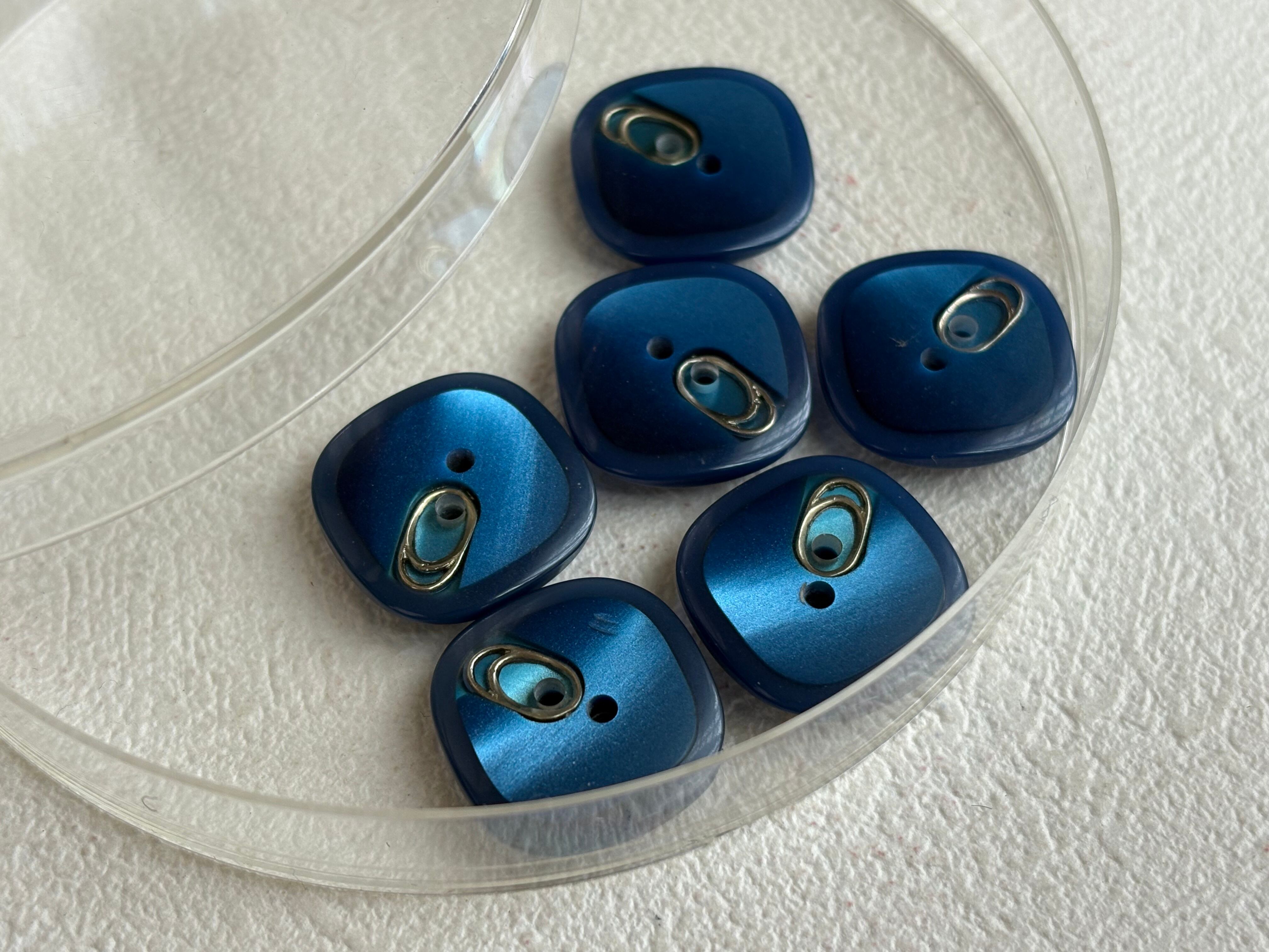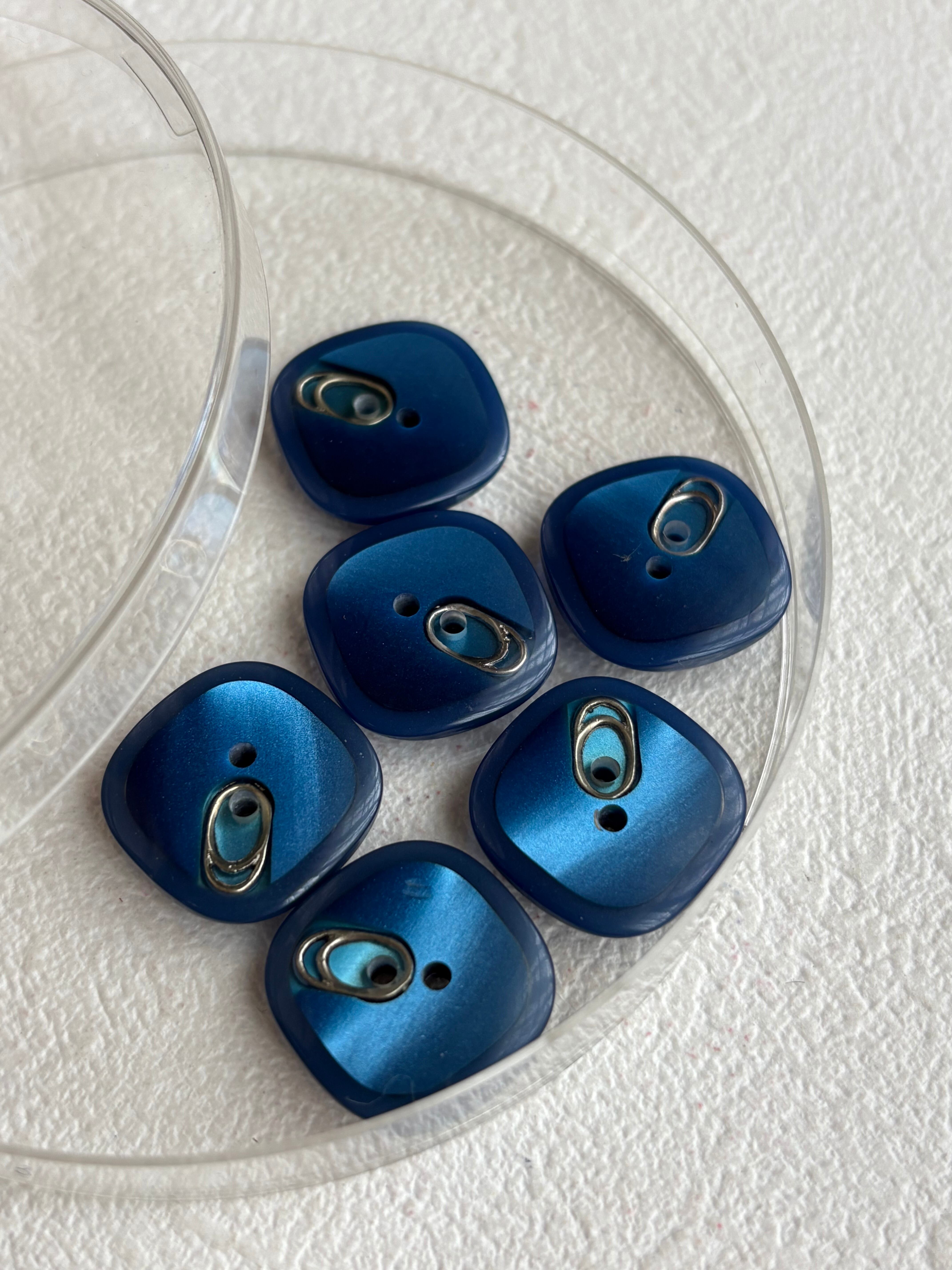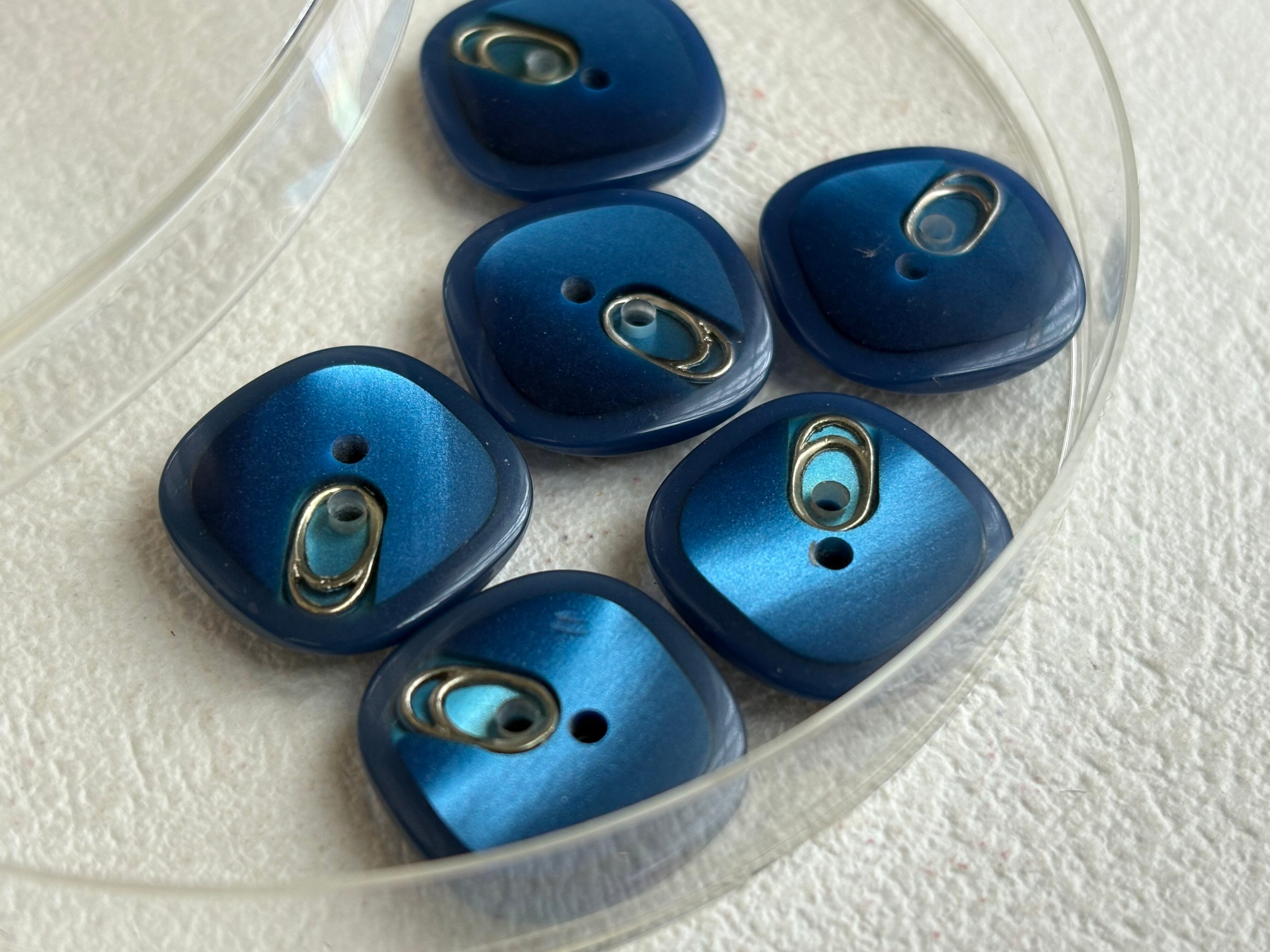 Japanese Vintage ボタン 角なしスクウェア ブルー 17mm 昭和レトロ アクセサリーパーツ 装飾材 カルトナージュ