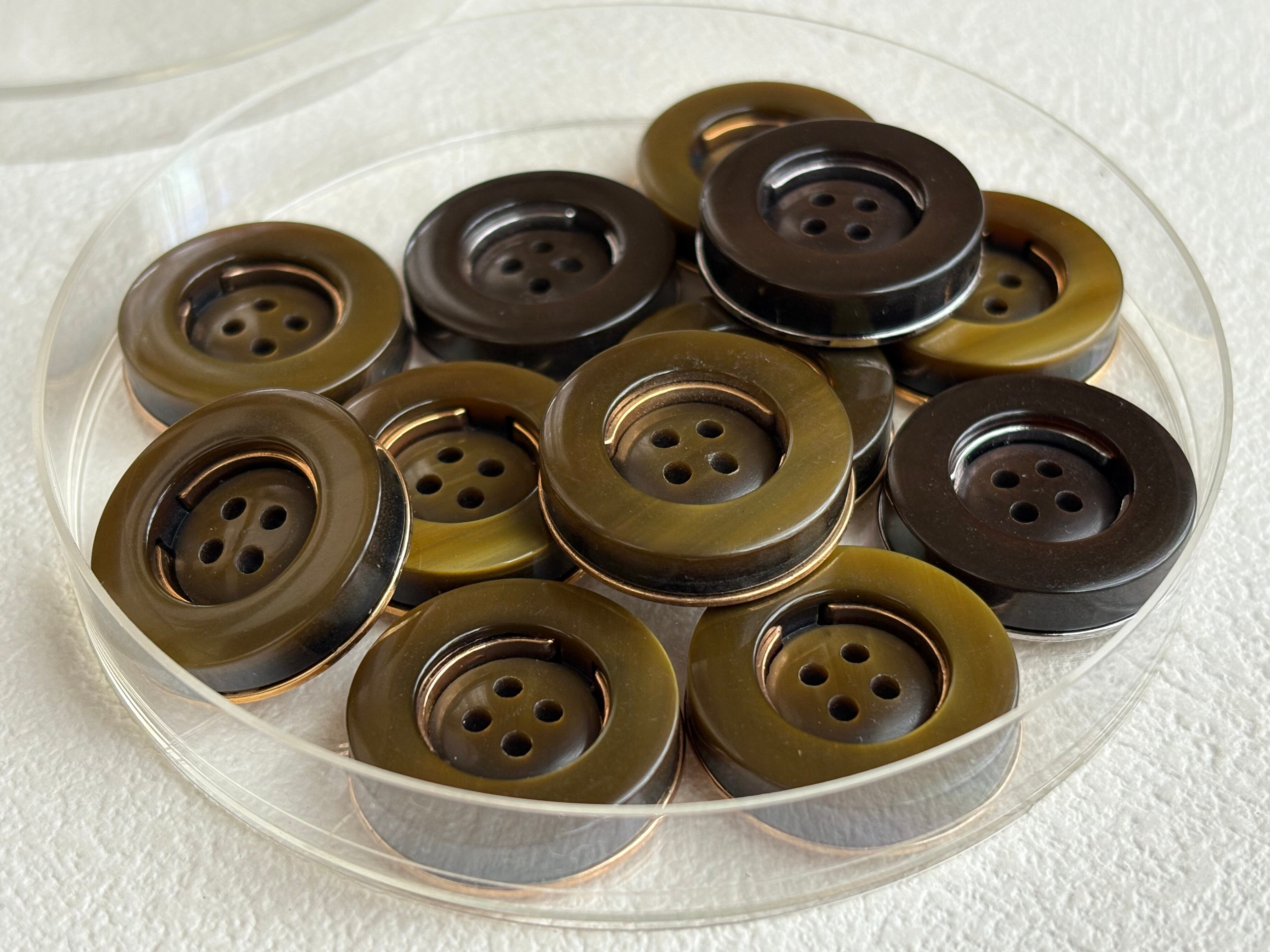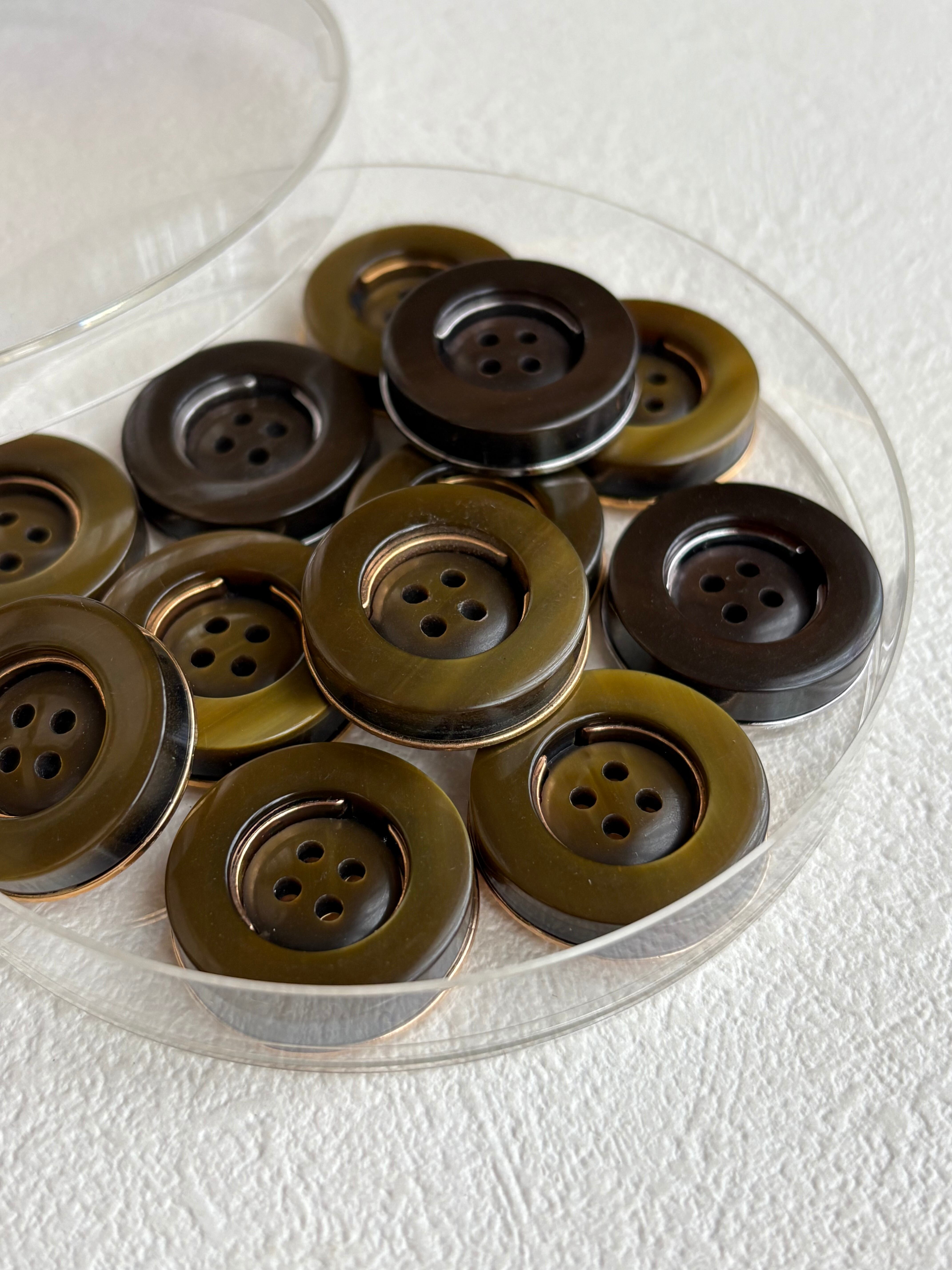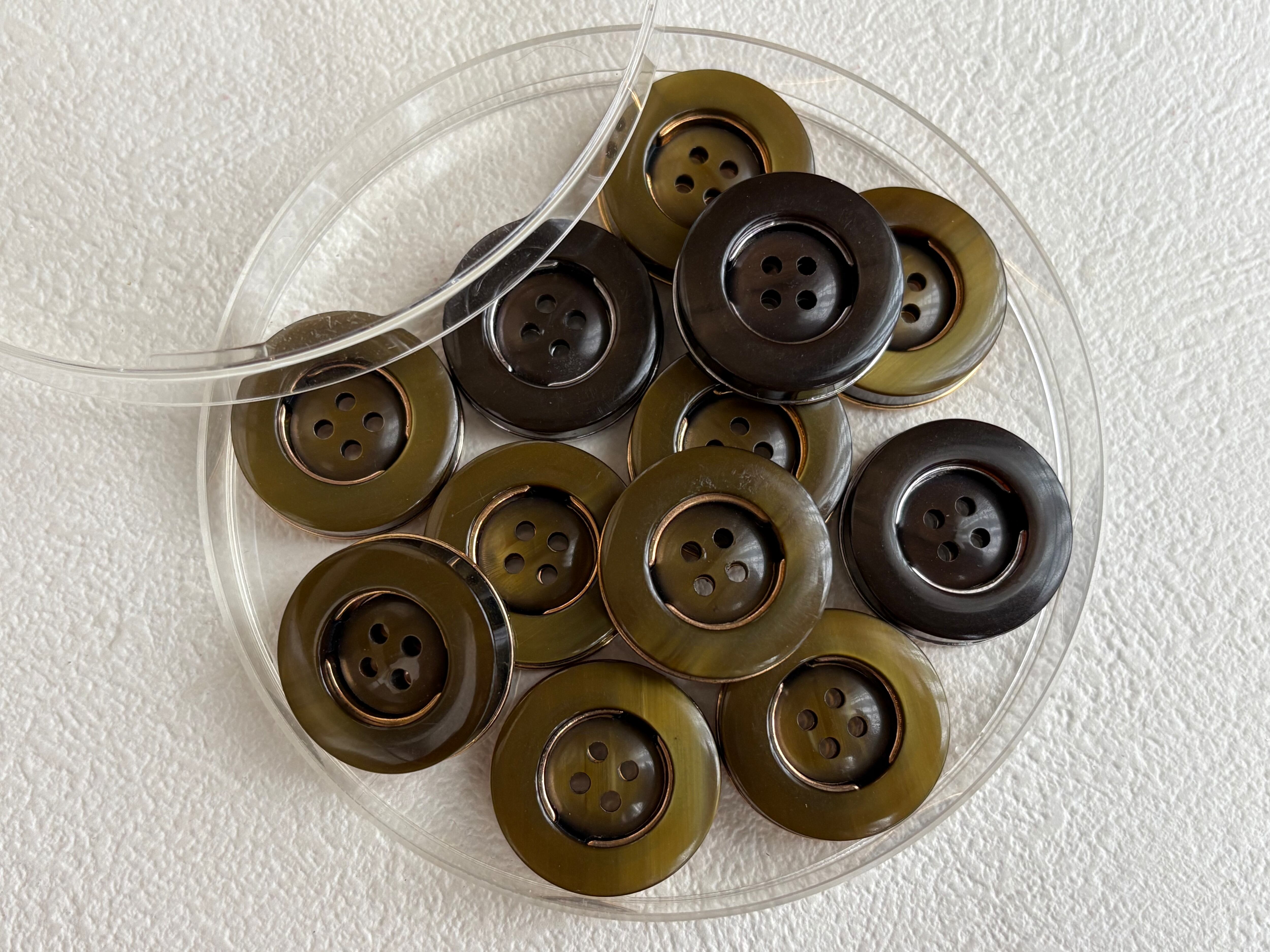 Japanese Vintage ボタン カーキ系×ゴールド/ダークブラウン×シルバー 22mm 四つ穴 昭和レトロ アクセサリーパーツ 装飾材 カルトナージュ