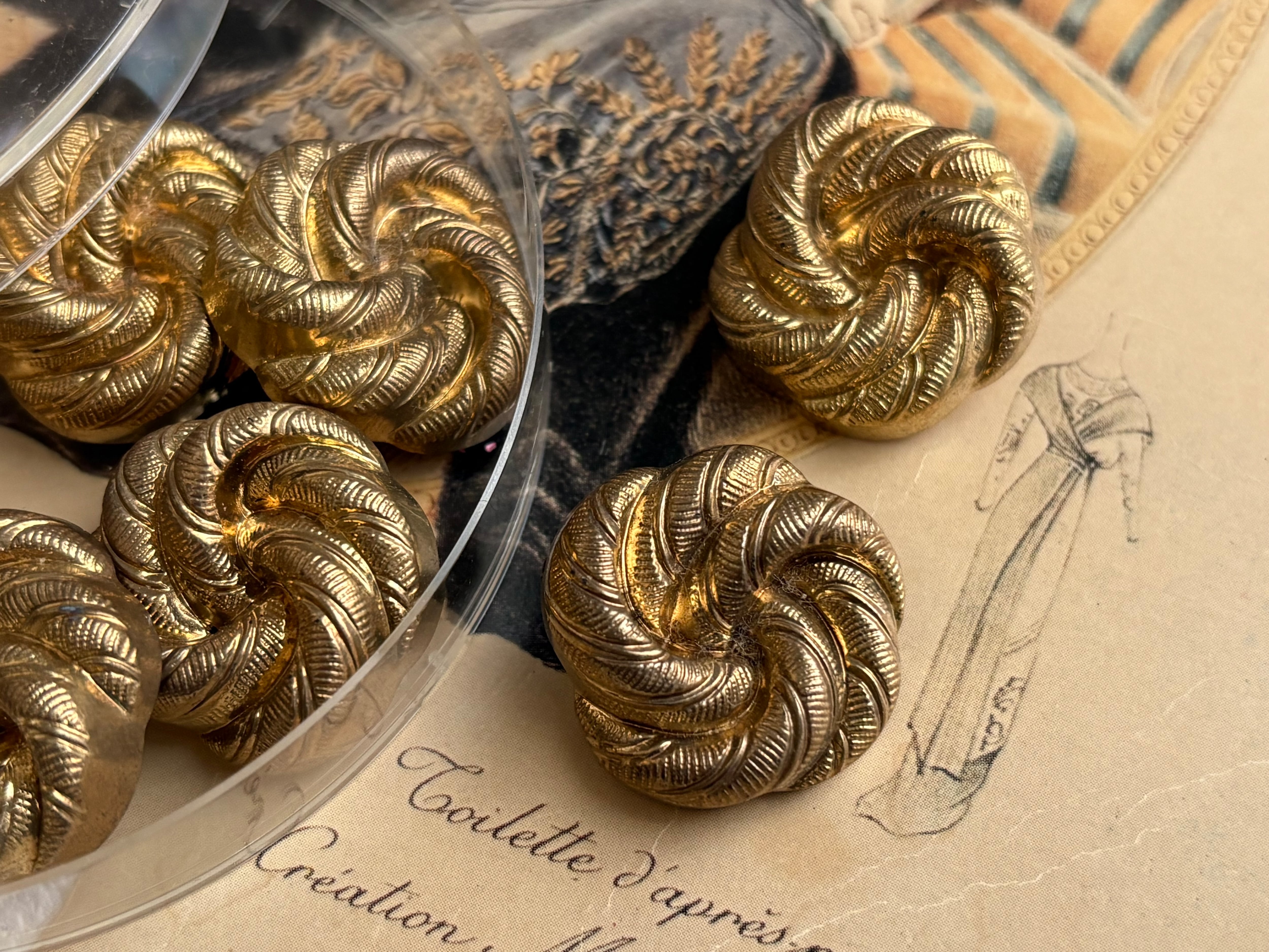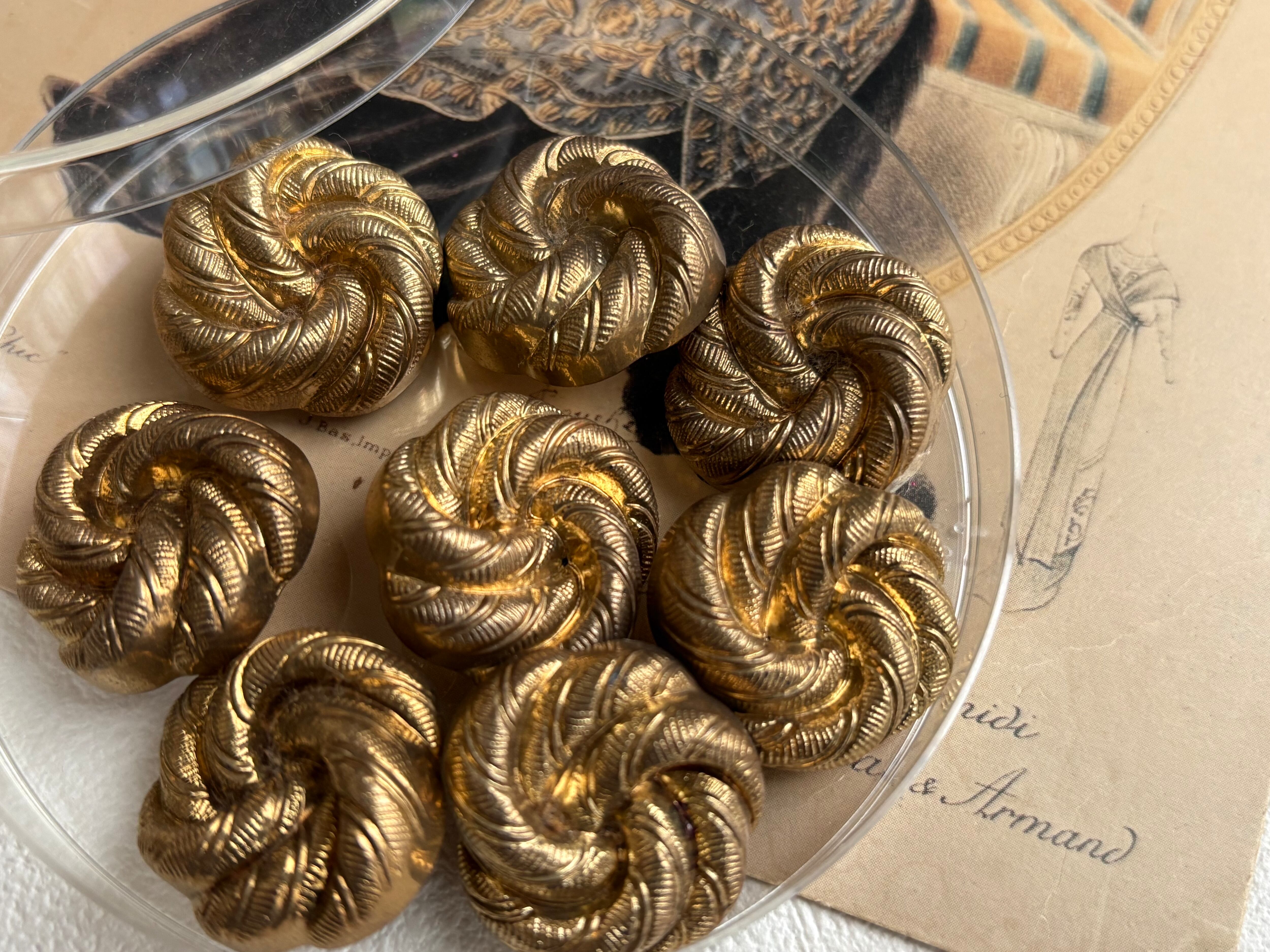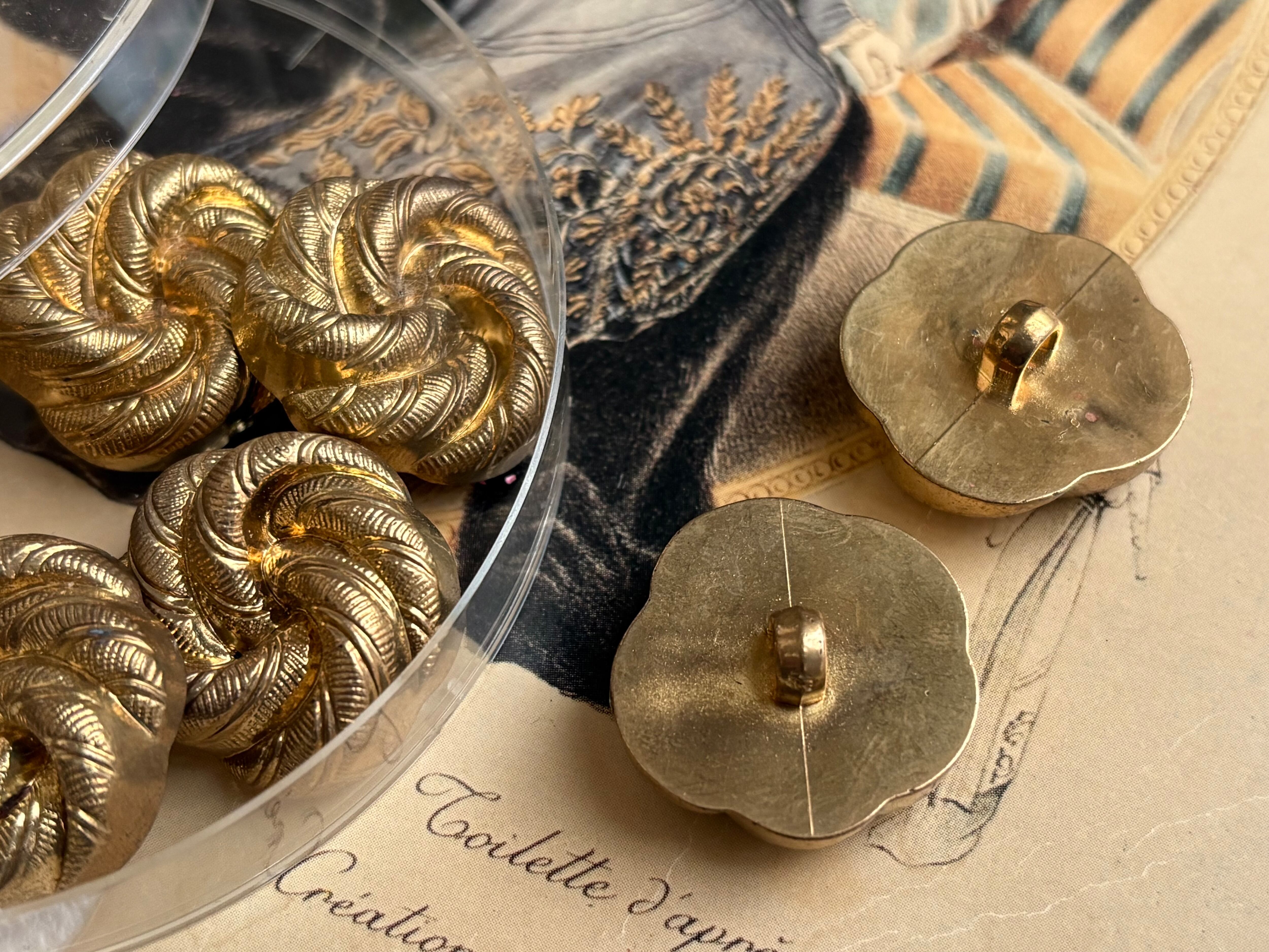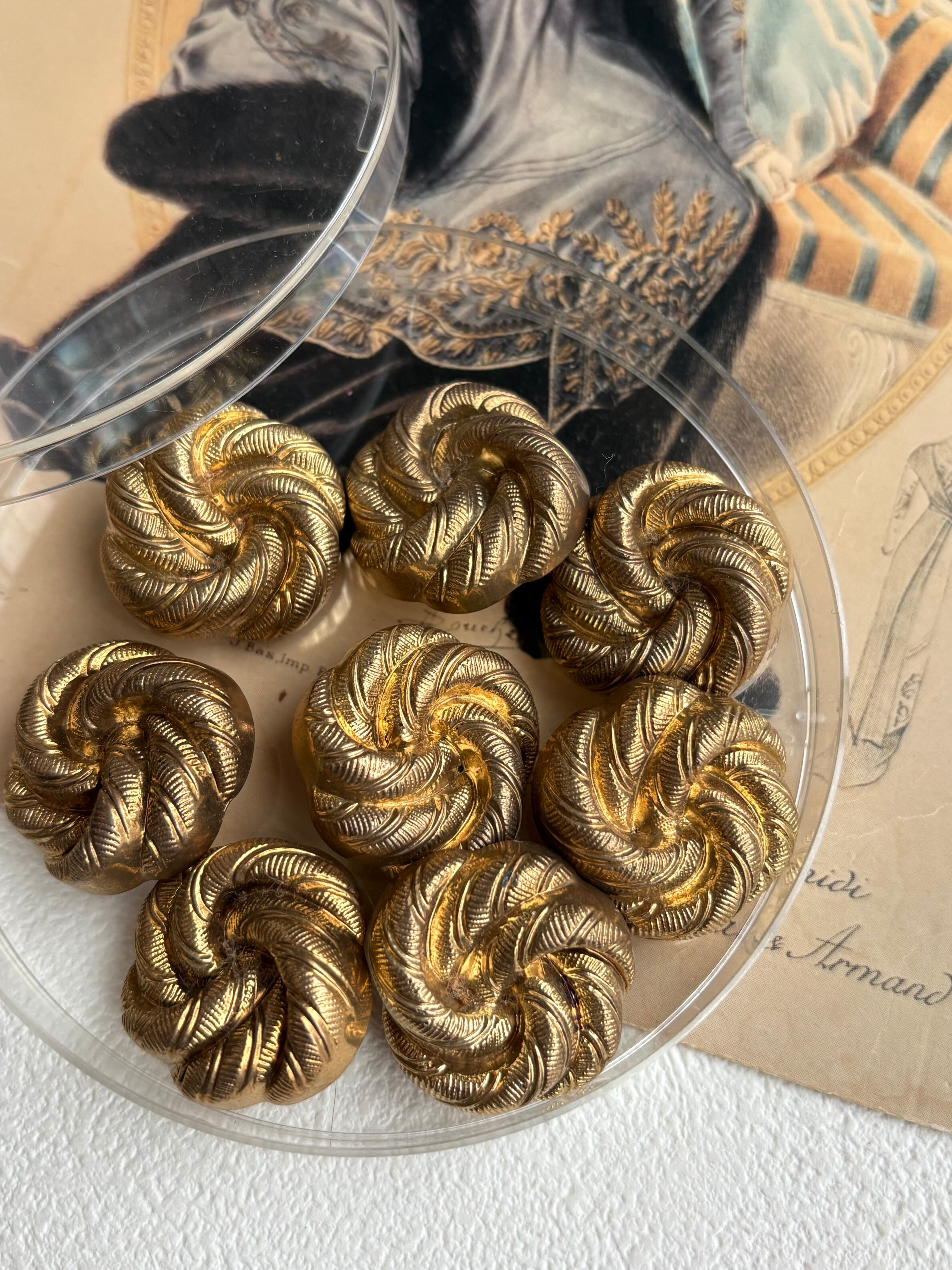 フランスVintage ヴィンテージボタンゴールド 24mm 渦 プラスチック アクセサリーパーツ デコレーション材 カルトナージュ