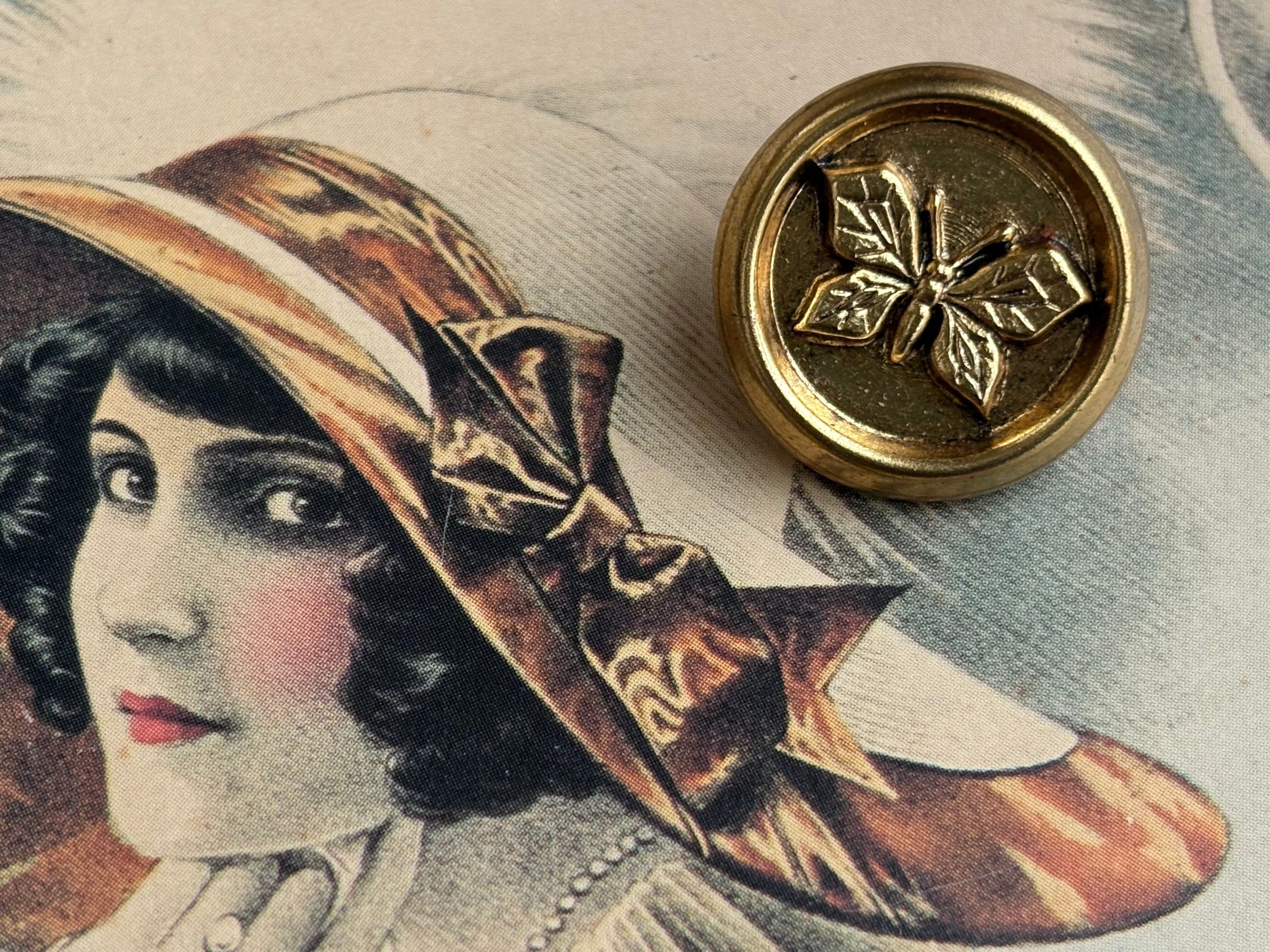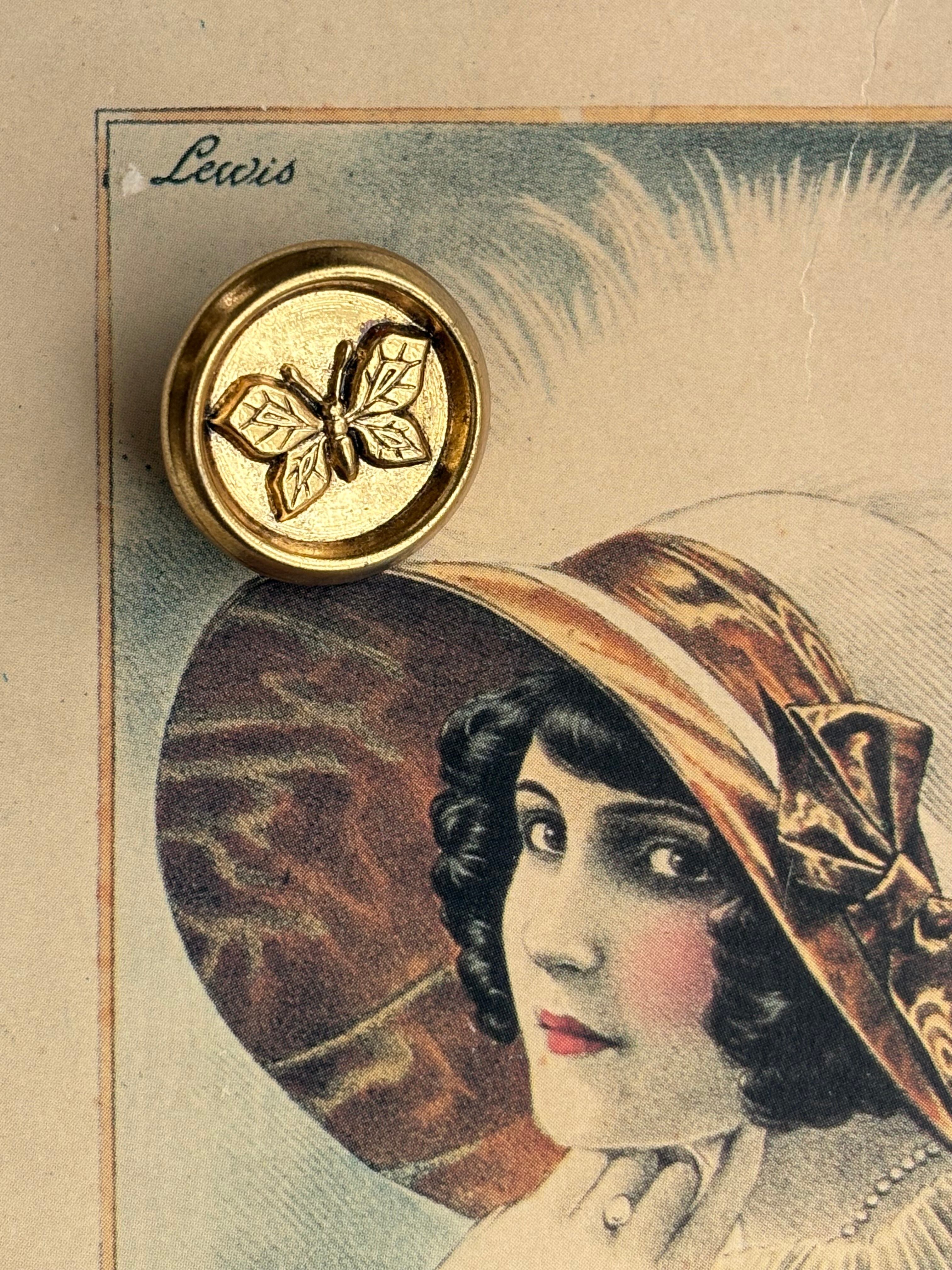 フランスアンティークボタンcoinderoux コアンドロー パピヨン 蝶々 ゴールド メタルボタン 21mm アクセサリーパーツ デコレーション材
