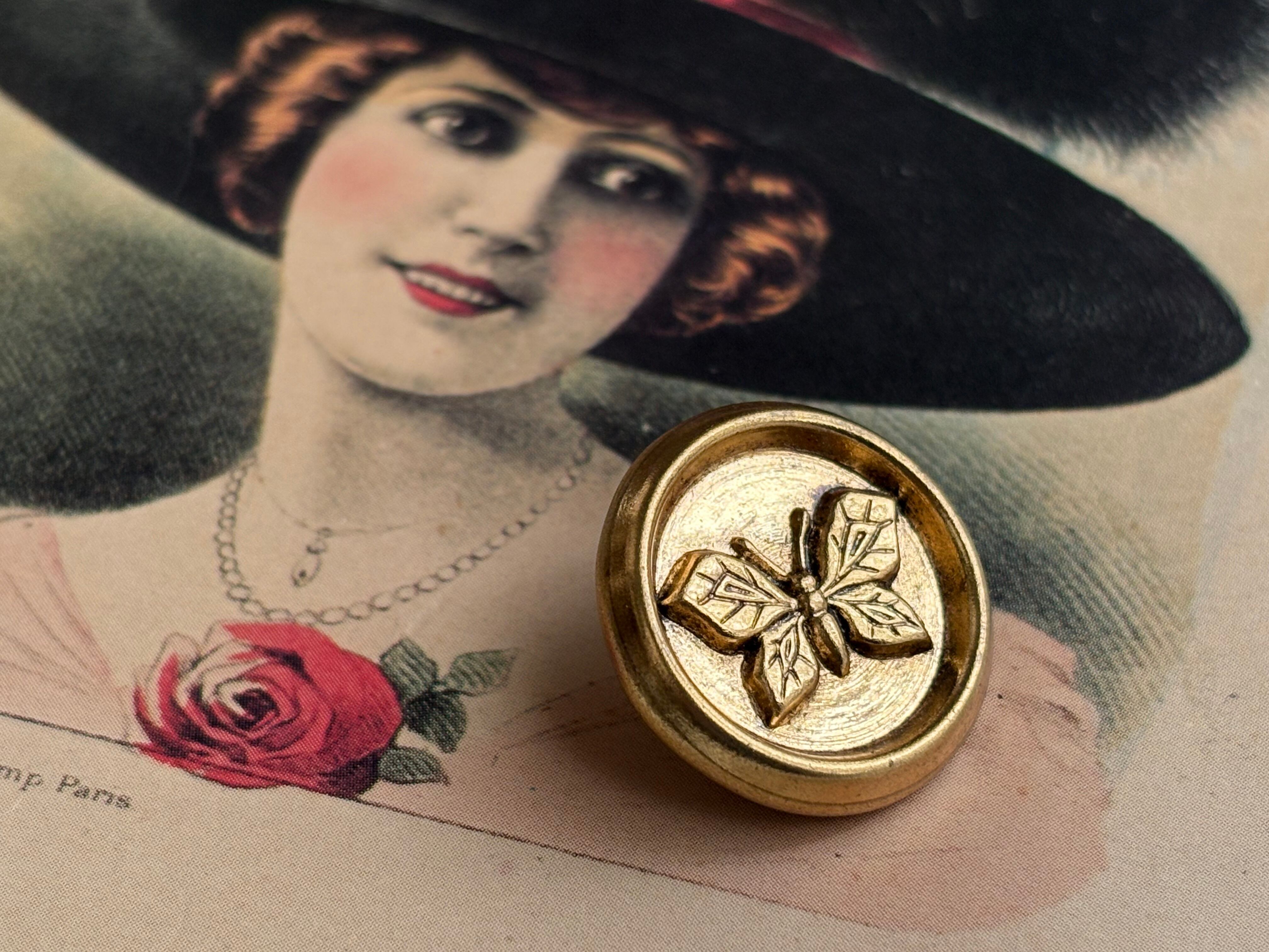 クラシカルで上品なパピヨン(蝶々)のアンティークボタンです。