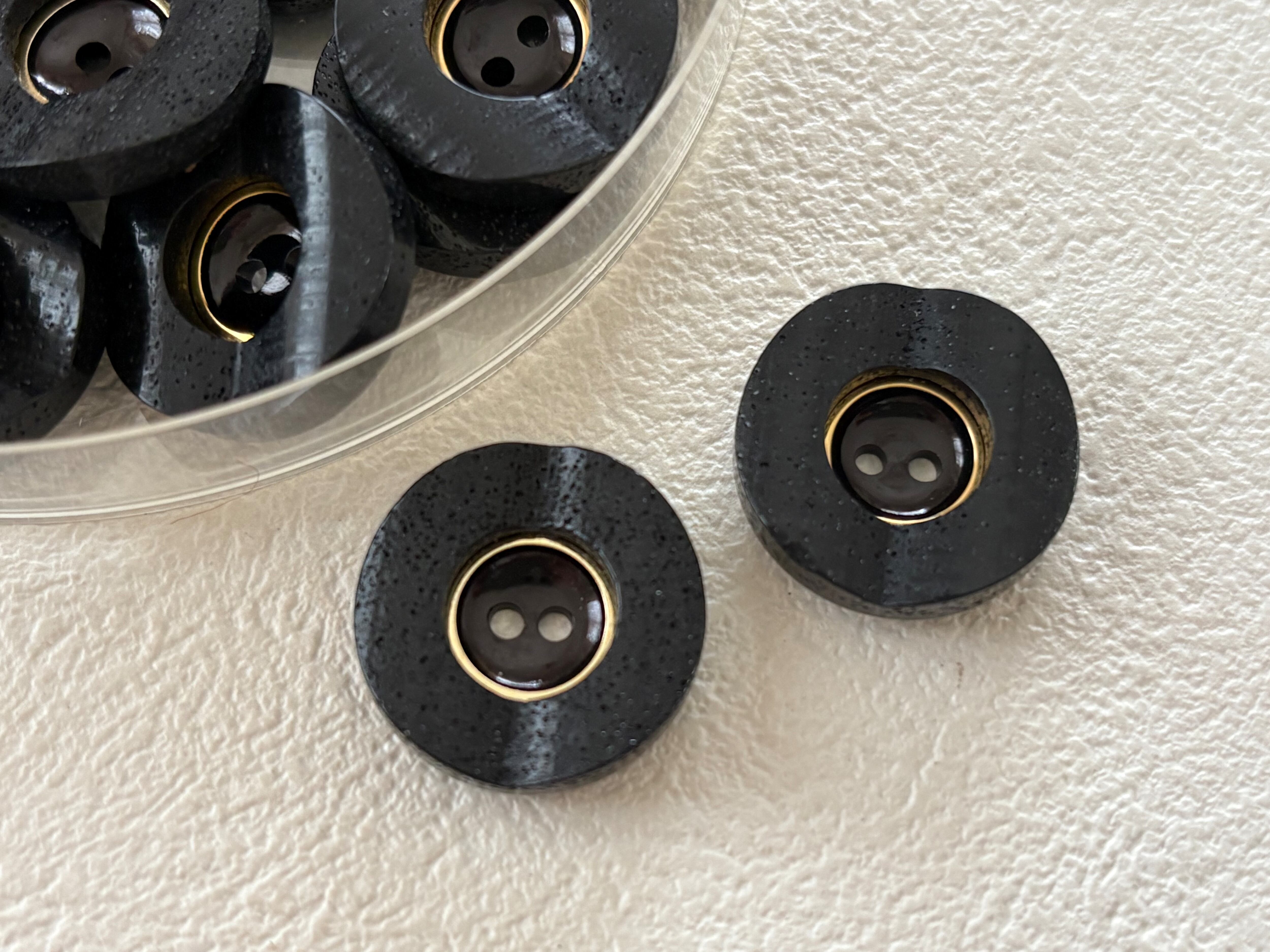 Japanese Vintage ボタン ブラック×ゴールド 19mm 昭和レトロ アクセサリーパーツ 装飾材
