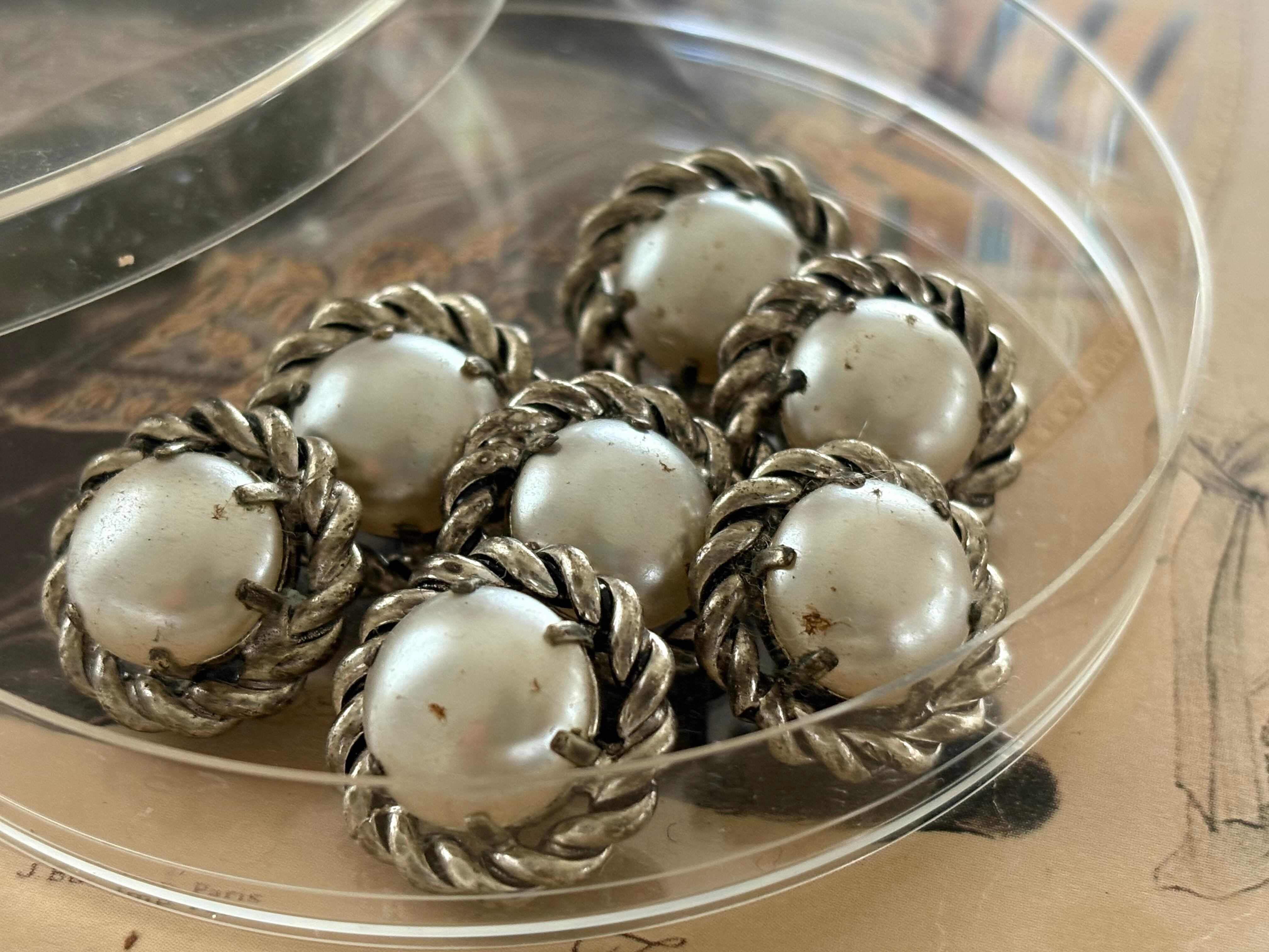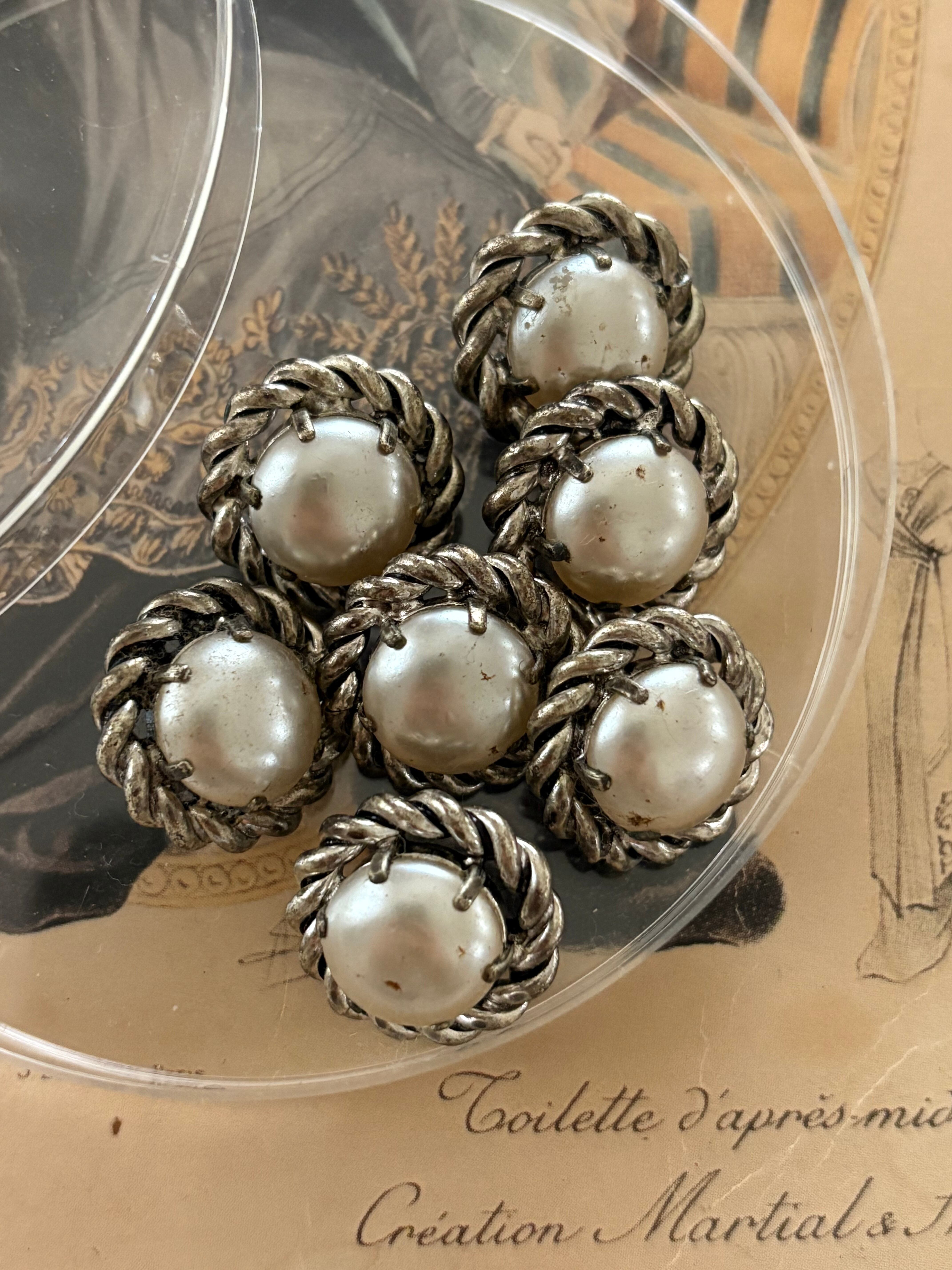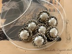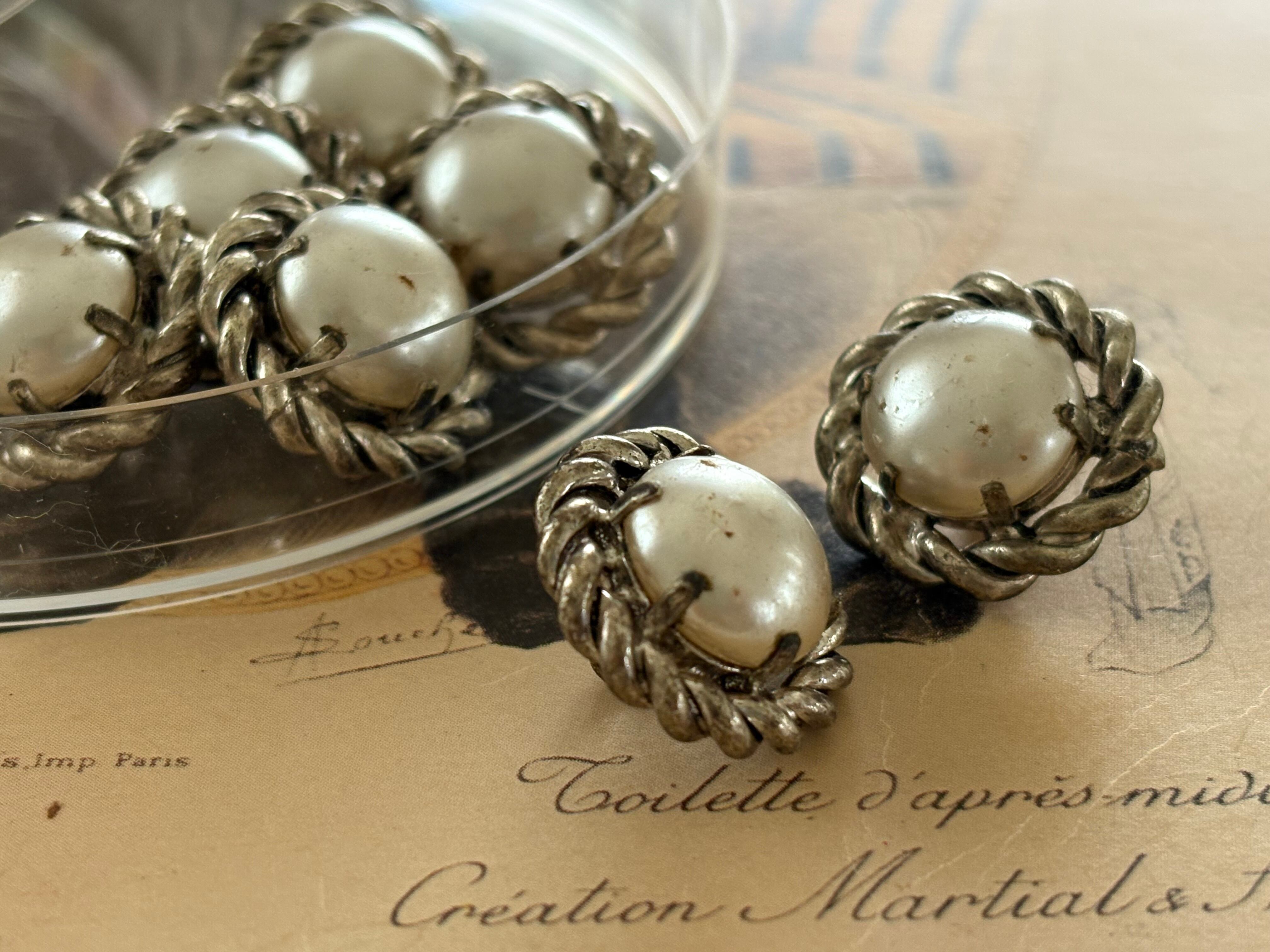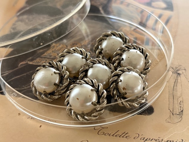 フランスアンティークボタンガラスパール シルバー メタルボタン 18mm アクセサリーパーツ デコレーション材