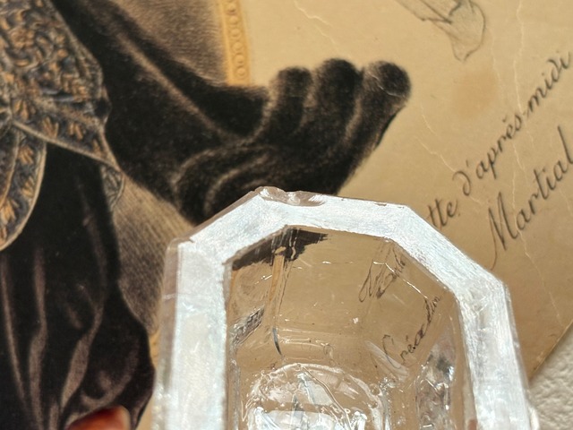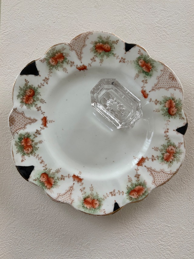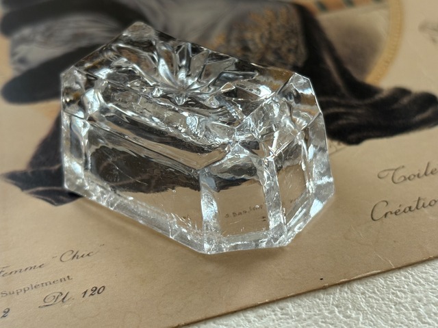 小さなサイズ、底面のカット模様、ぽってりとした気泡の入ったガラスが可愛いく目をひくディッシュです。