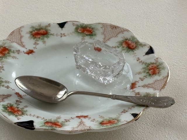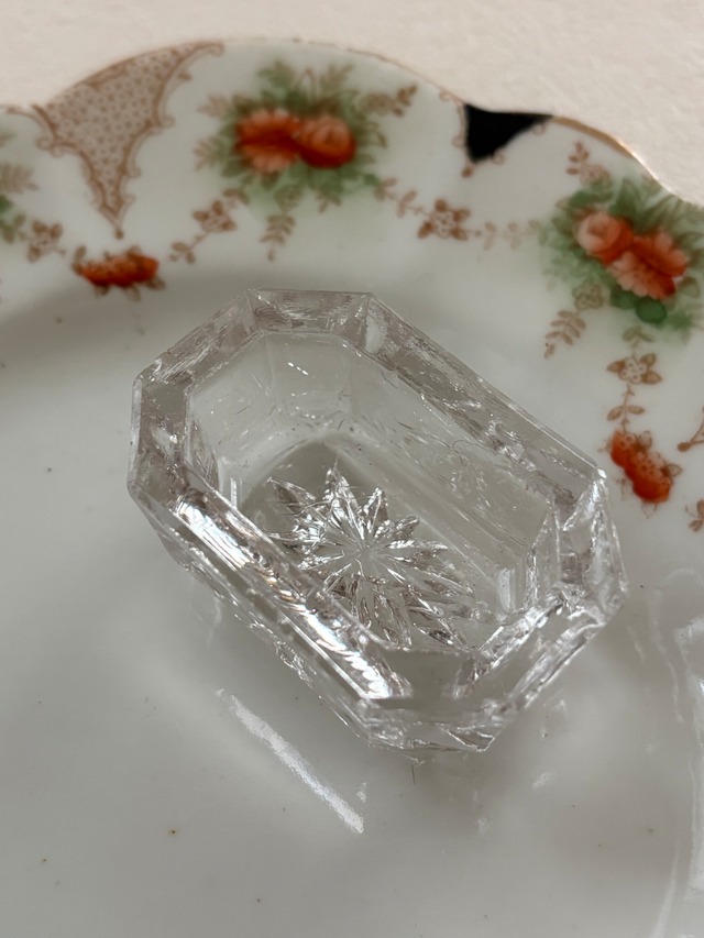 英国Vintage 小さなクリアガラスのスパイスディッシュ スパイスボウル フラワーベース 小物入れ インテリア小物 撮影小物