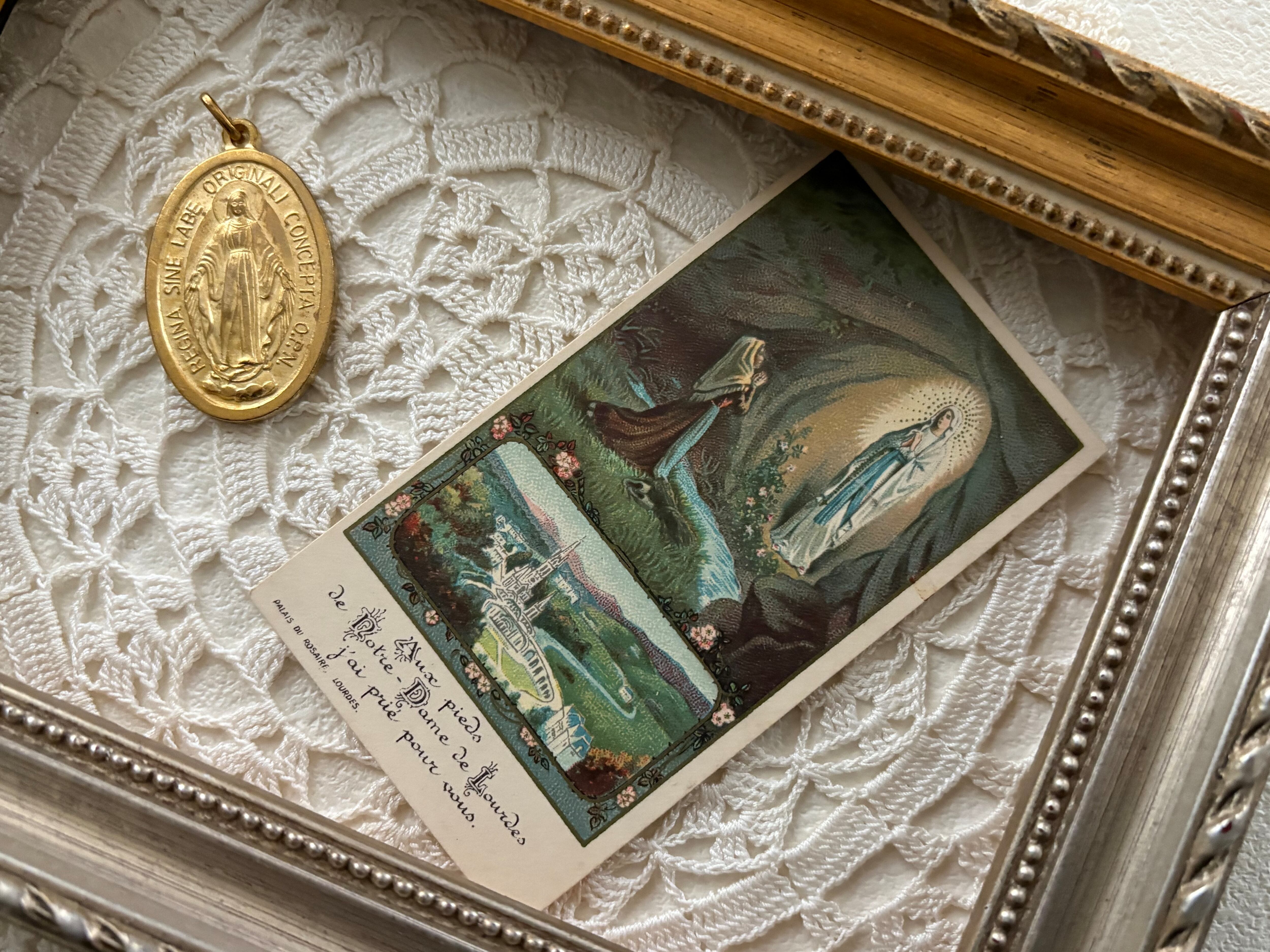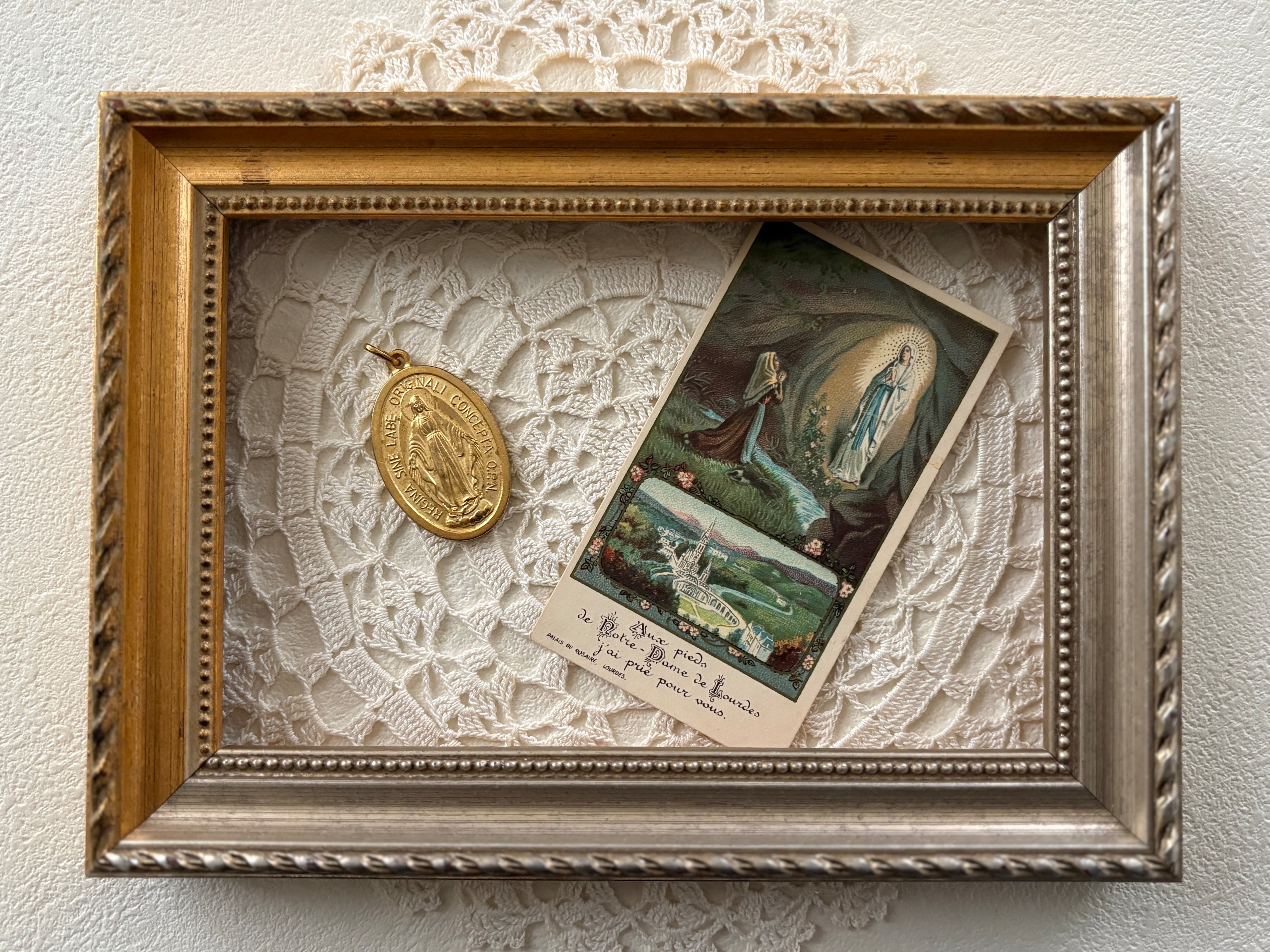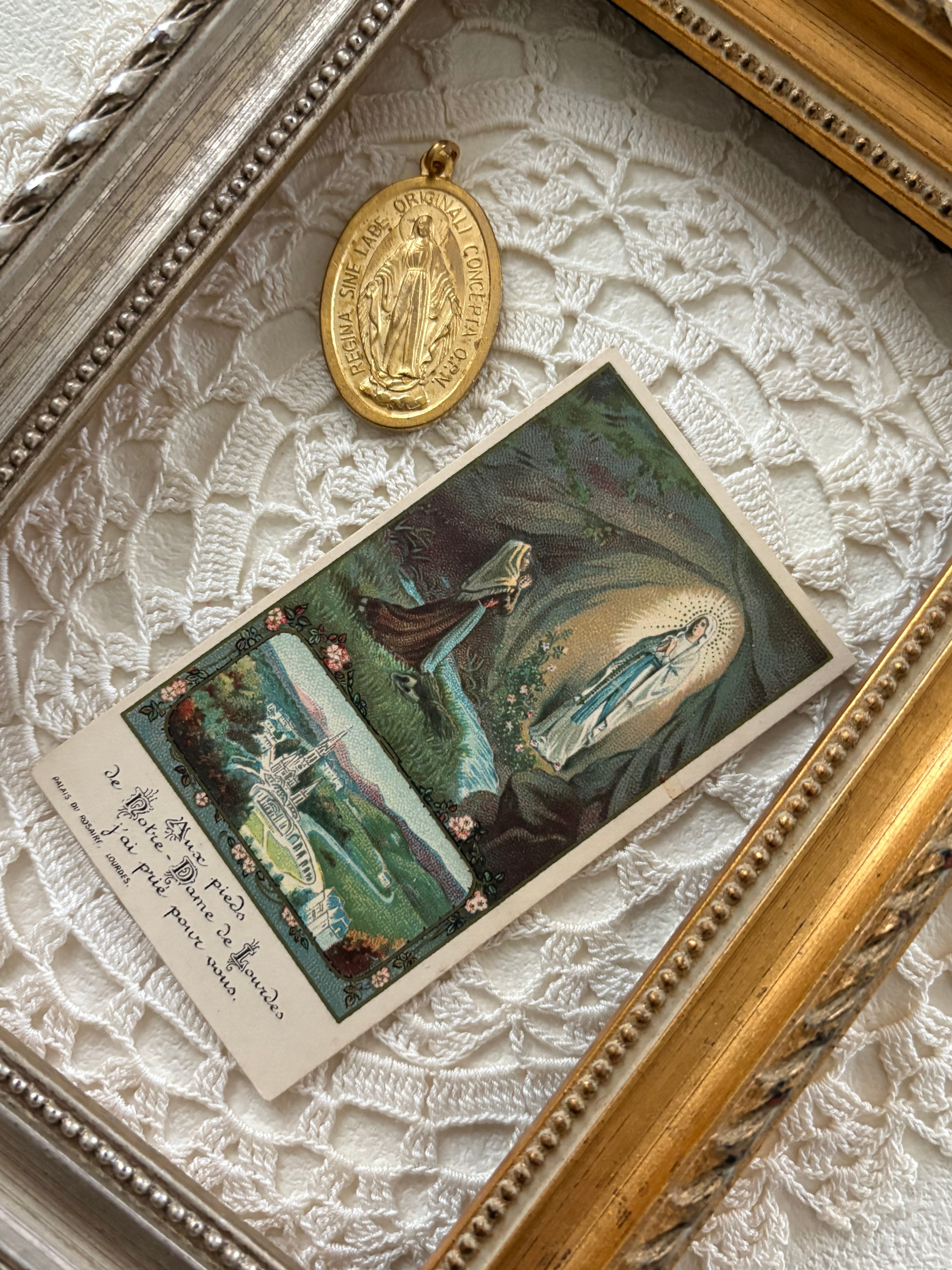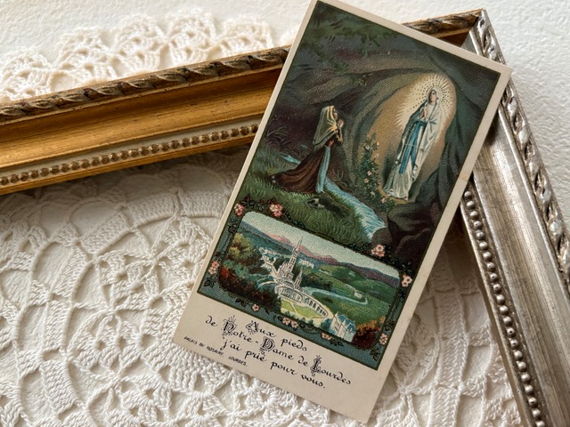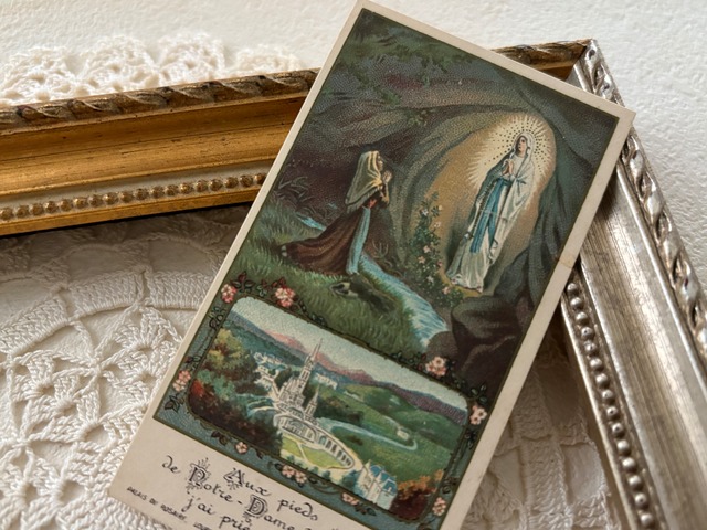 フランスアンティーク Holy Card ホーリーカード 1940年 ルルドの聖母マリア ベルナデッタ 額装 撮影小物 インテリア コレクション