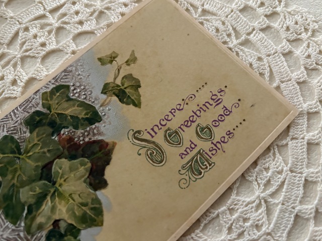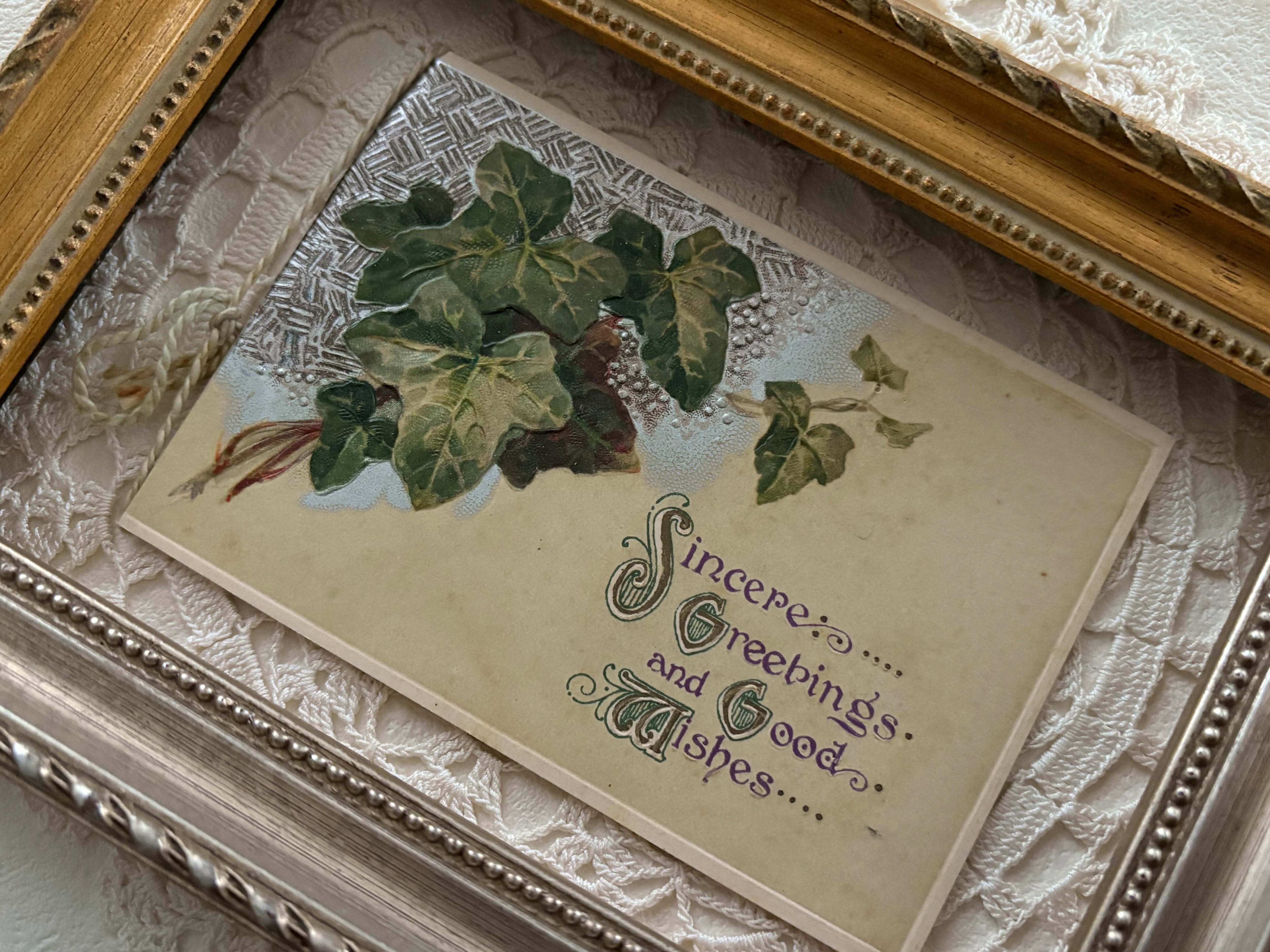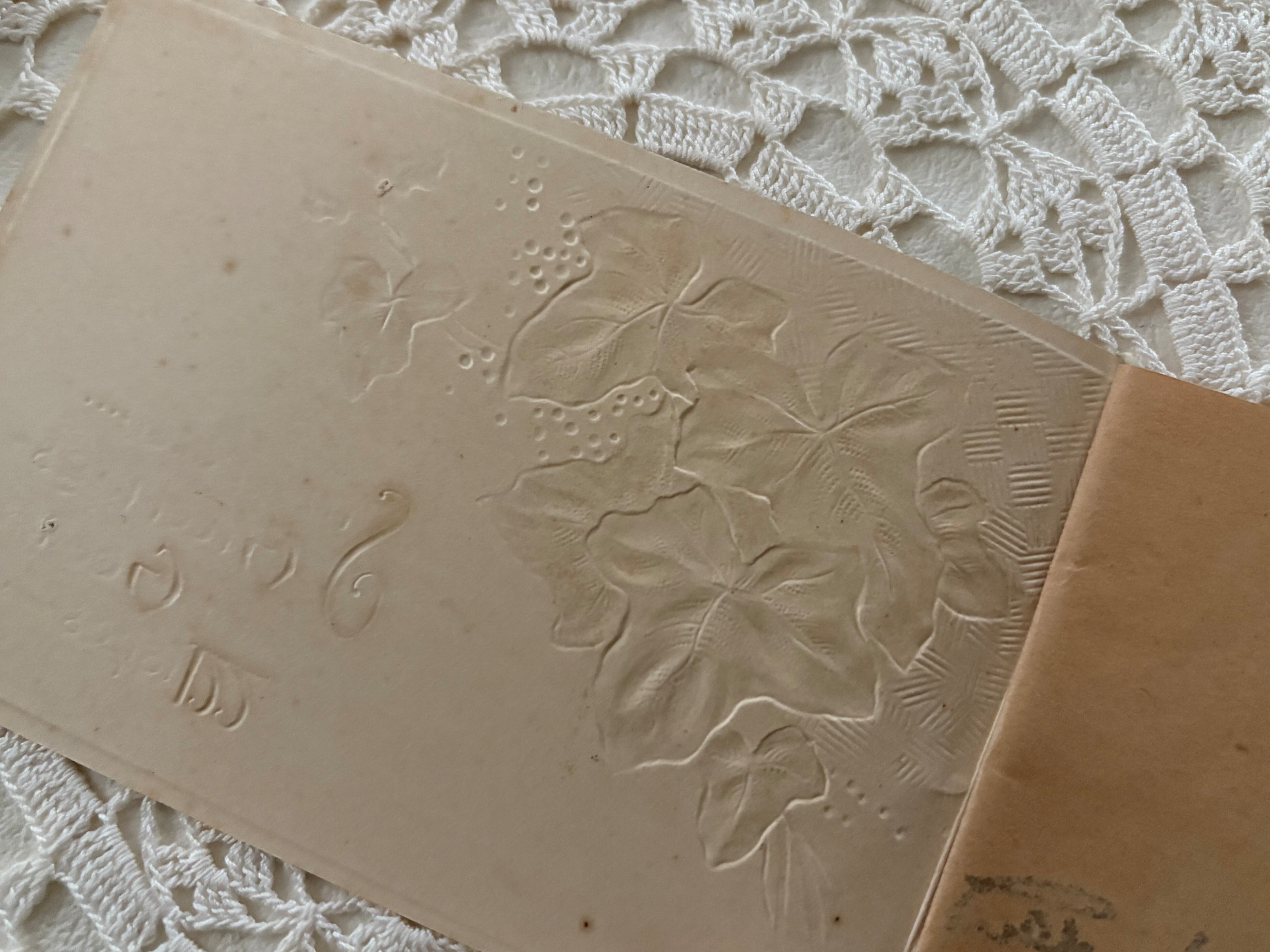 フランス アンティークカード アイビー エンボス 見開きタイプ フランス 額装 インテリア 撮影小物 クリスマス Noel