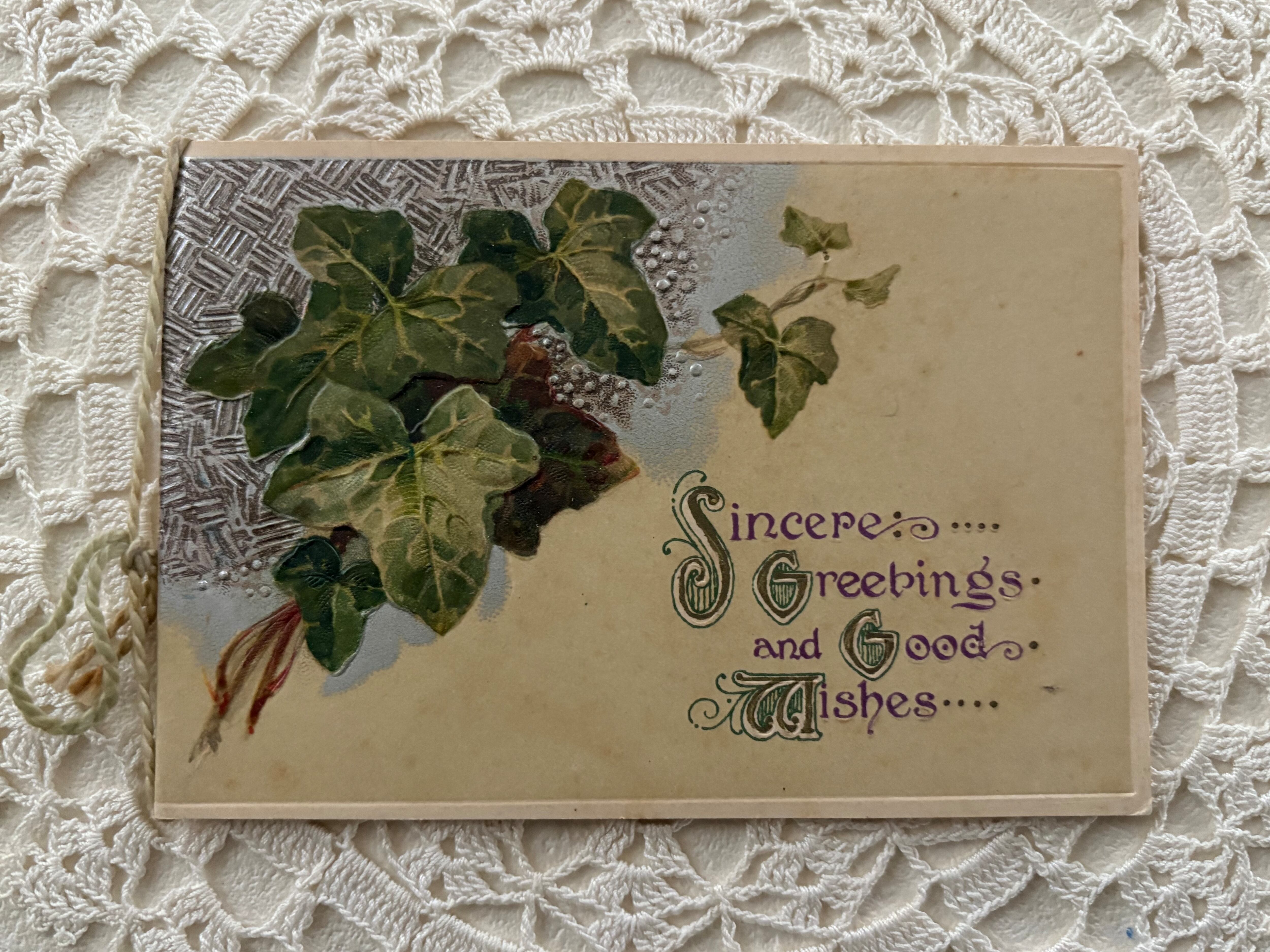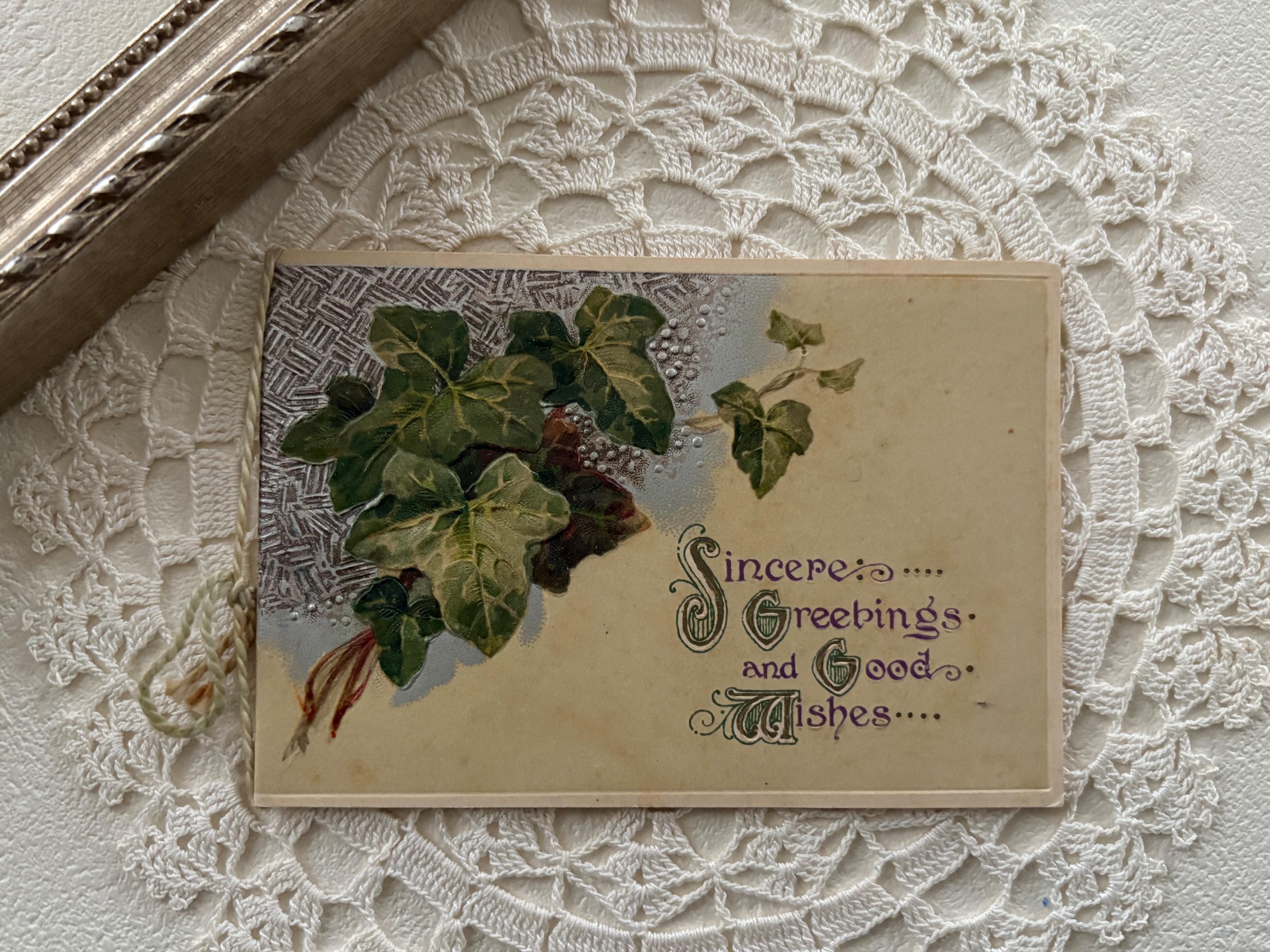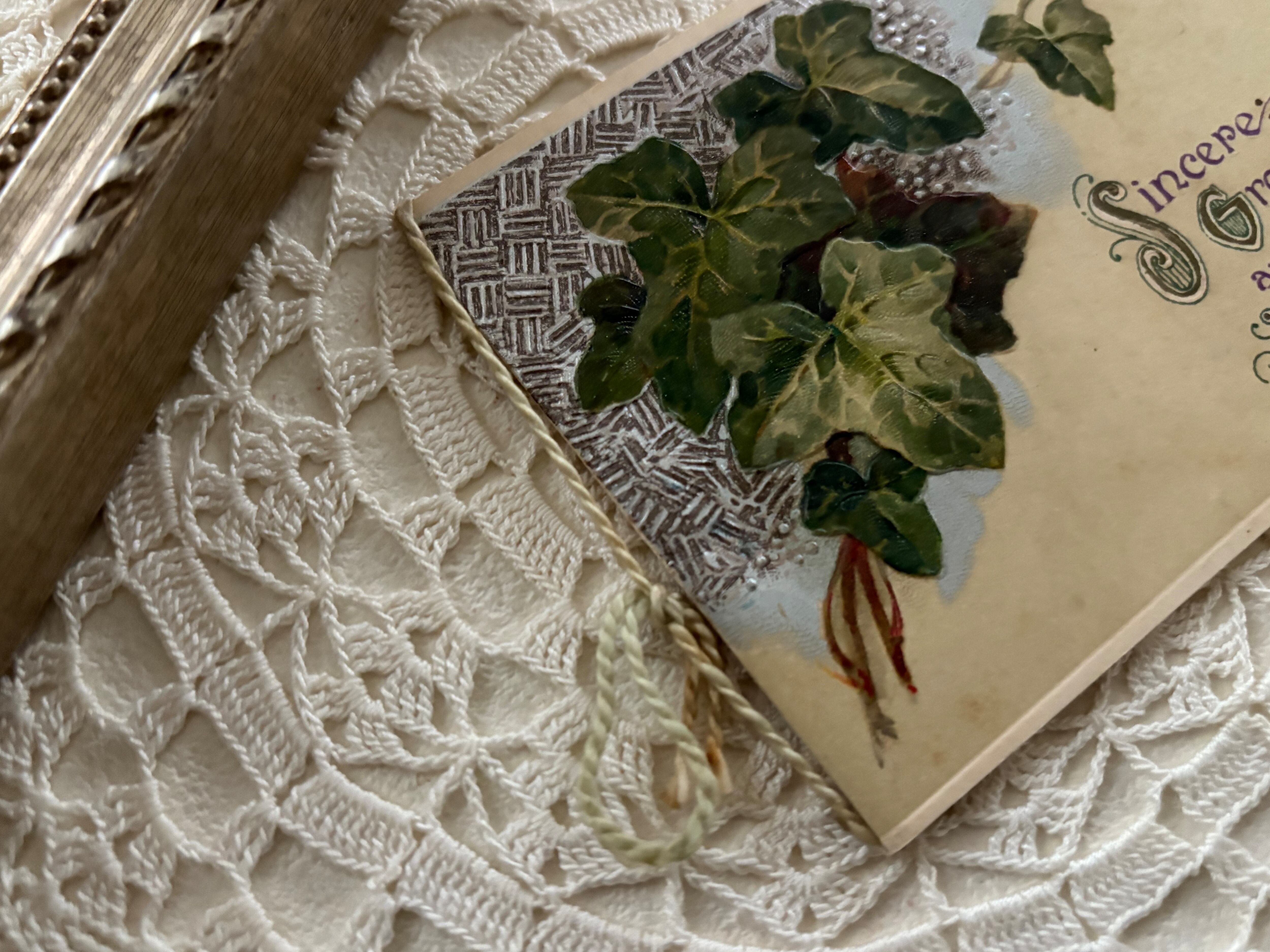 フランス アンティークカード アイビー エンボス 見開きタイプ フランス 額装 インテリア 撮影小物 クリスマス Noel