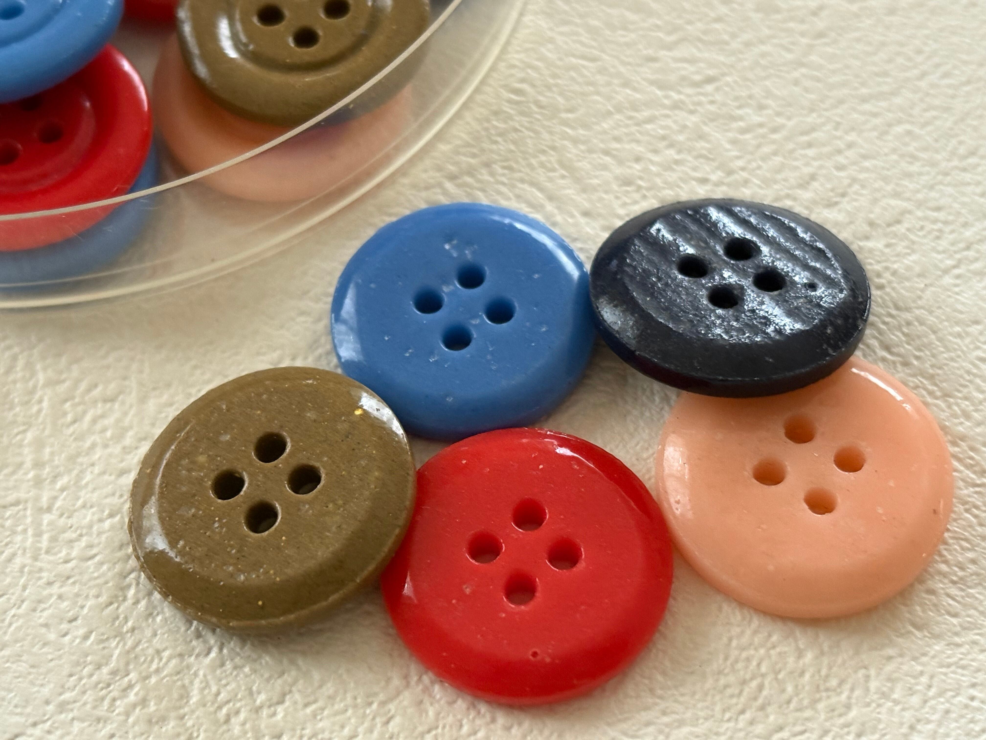 フランス アンティークボタン ガラスボタン 20mm レッド/ライトブルー/ピンク/ネイビー/カーキ 撮影小物 四つ穴 コレクション