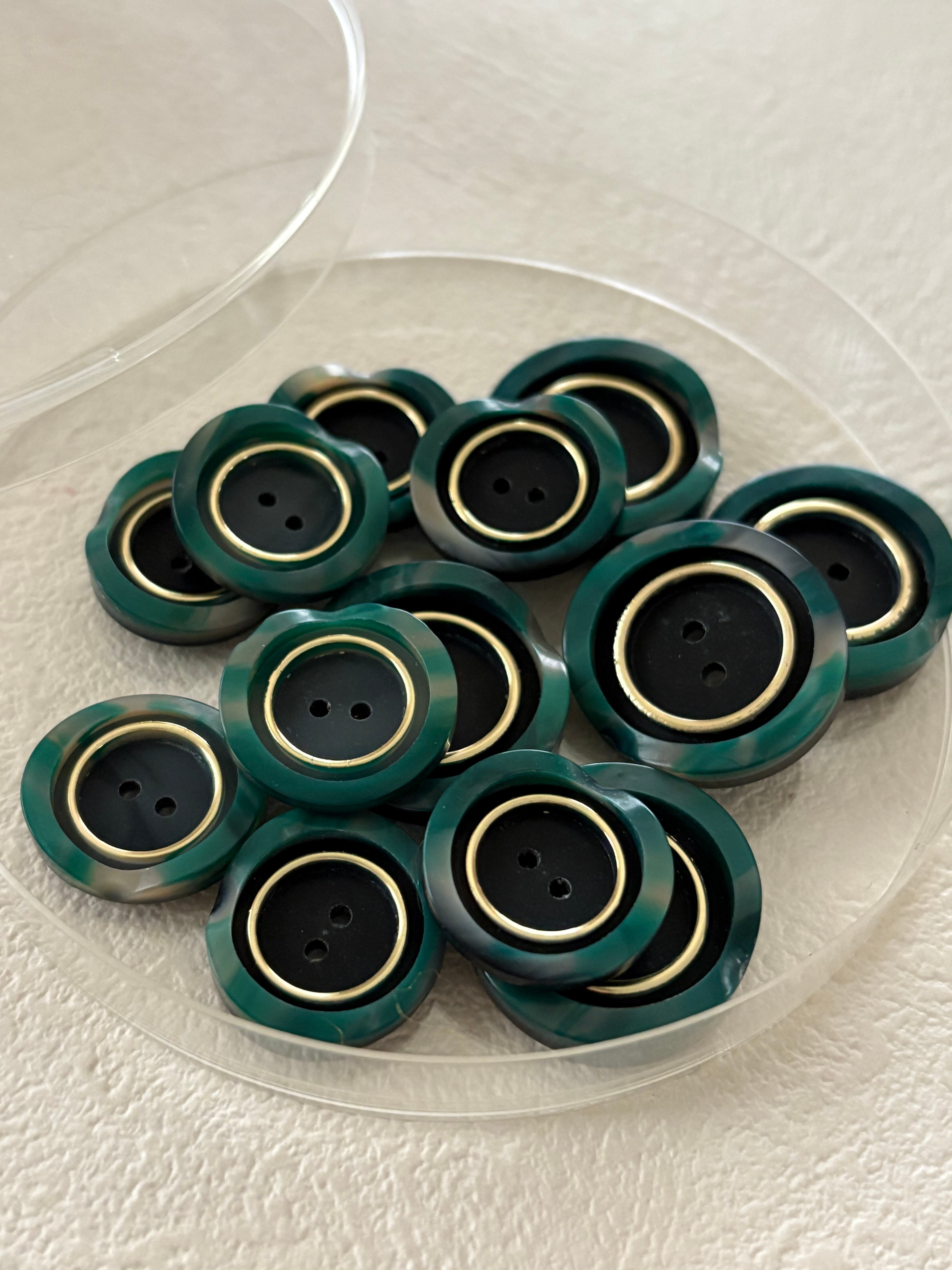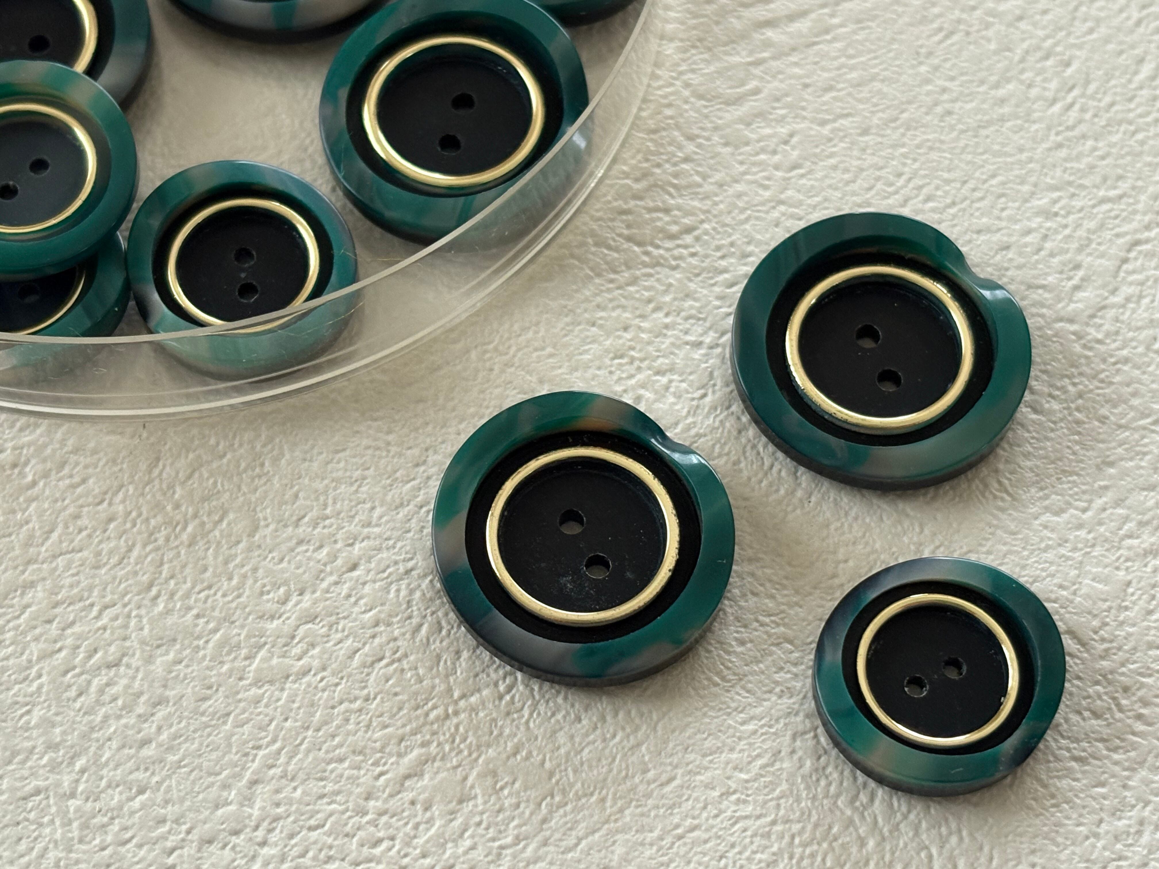 Japanese Vintage ボタン 22mm グリーン マーブル模様 レトロ アクセサリーパーツ 二つ穴