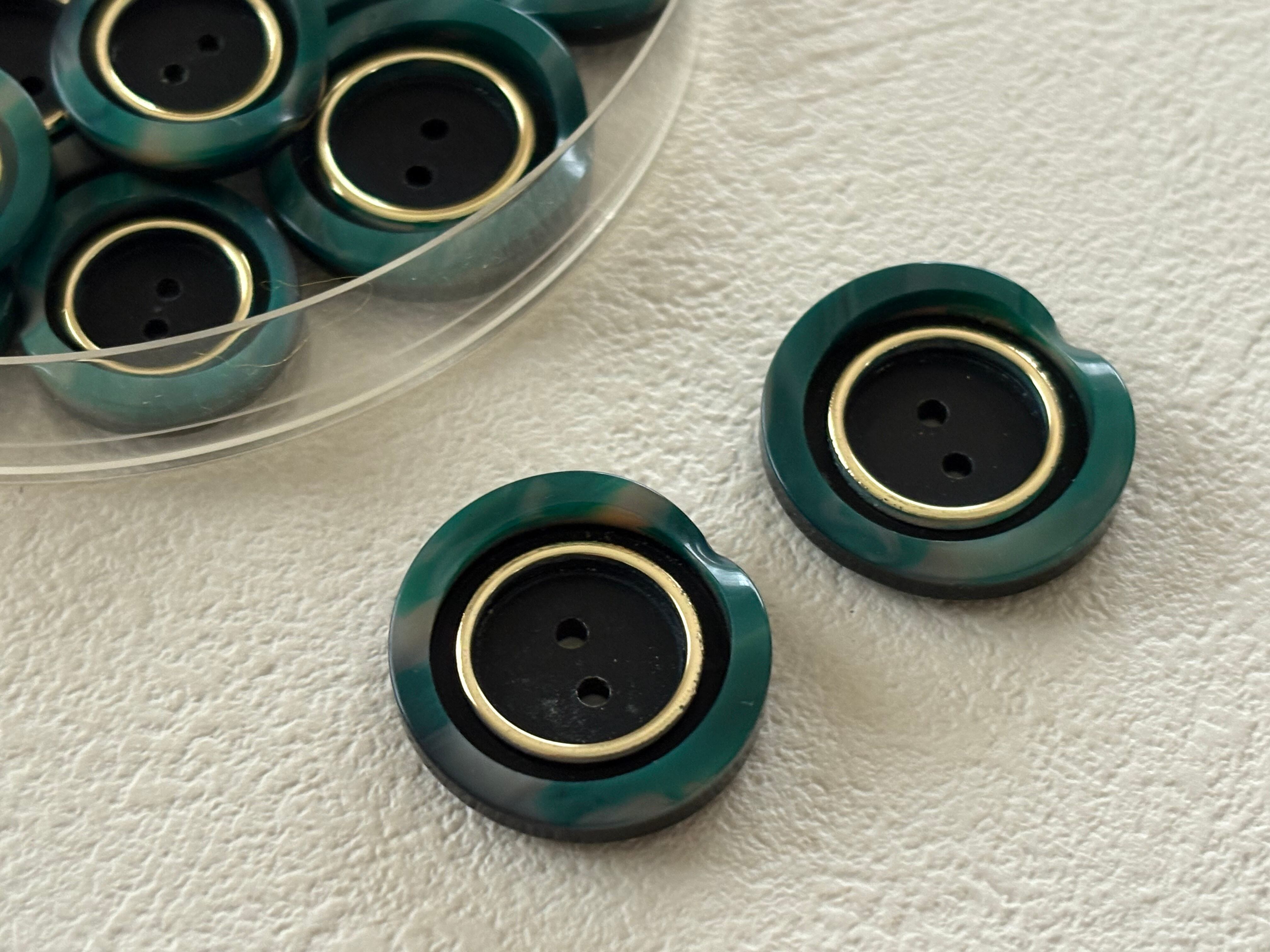 シンプルなデザインですが縁周りがグリーンのマーブル模様がお洒落なボタン。