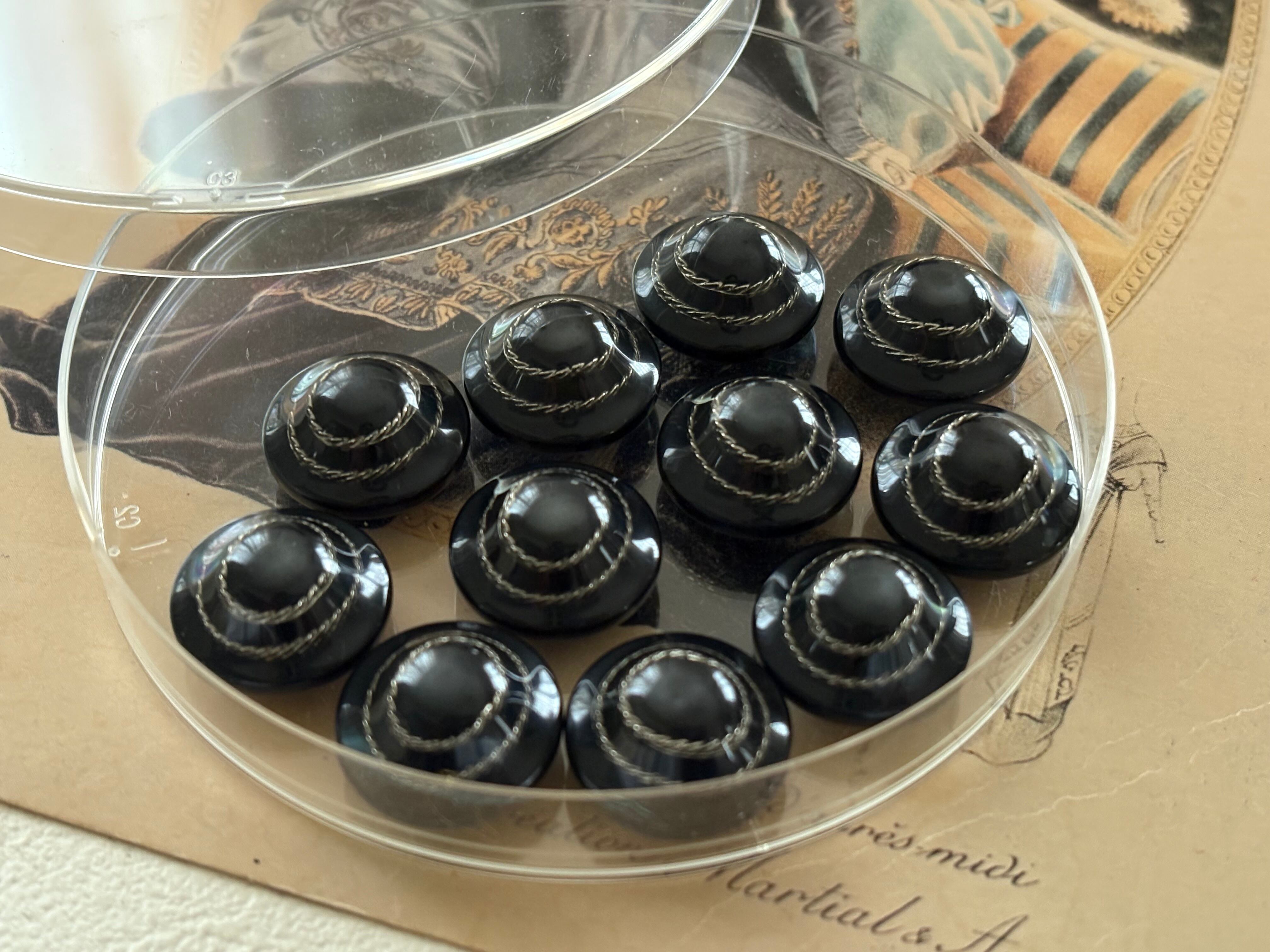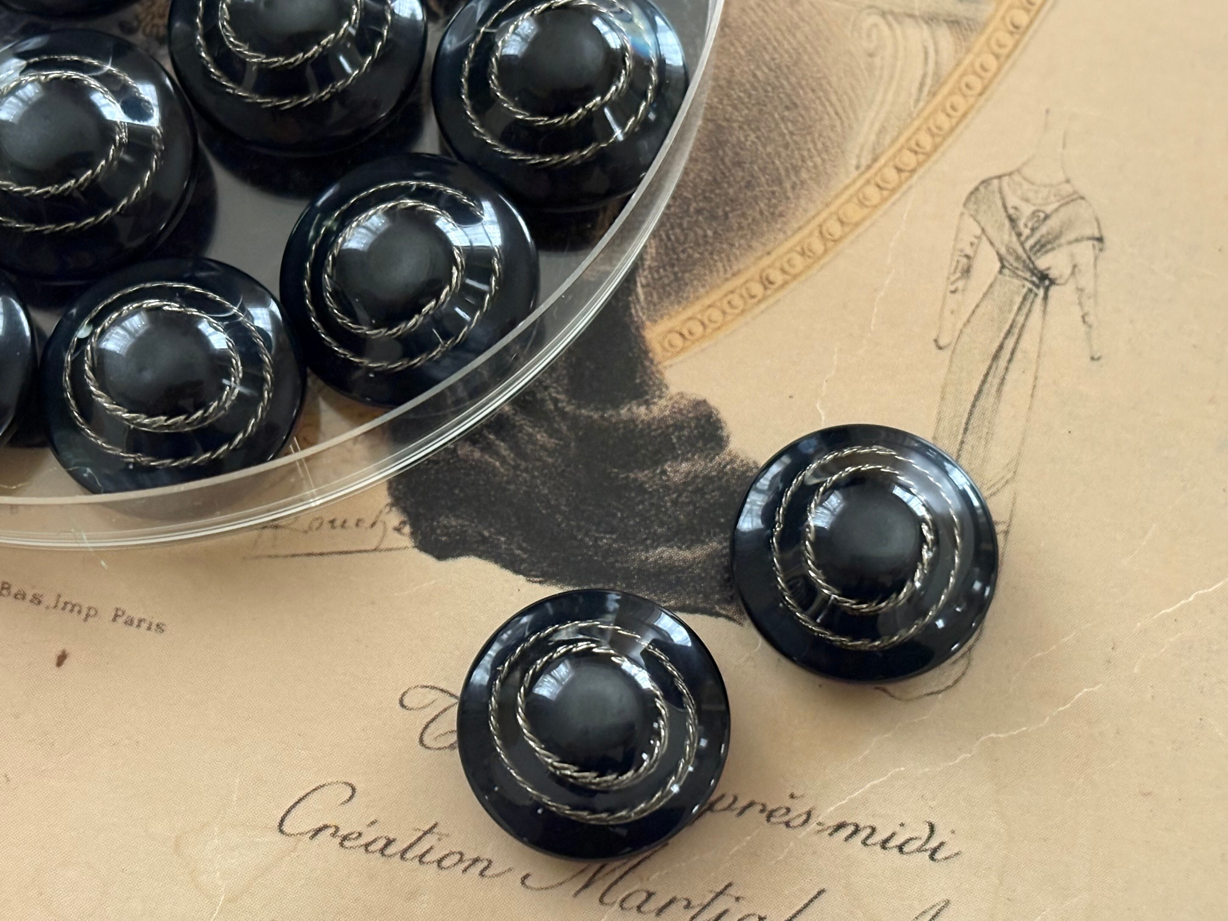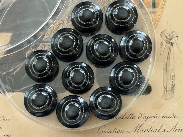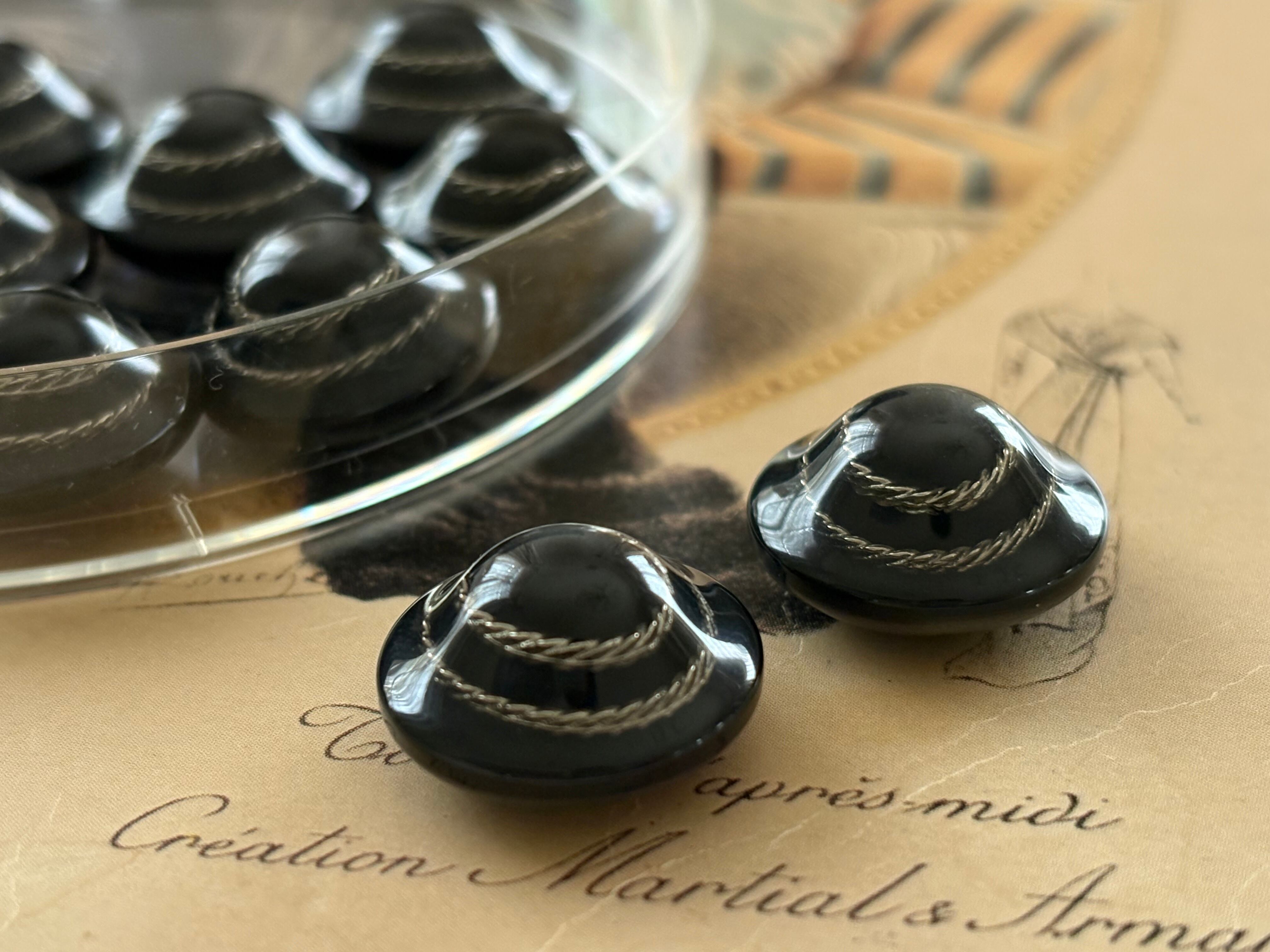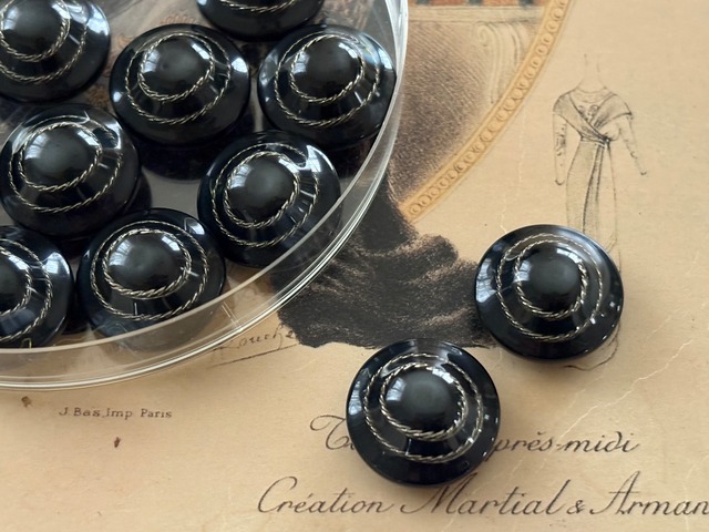 イタリア Vintage ヴィンテージボタン 17mm デッドストック ブラック×シルバー ドーム型 アクセサリーパーツ デコレーション材