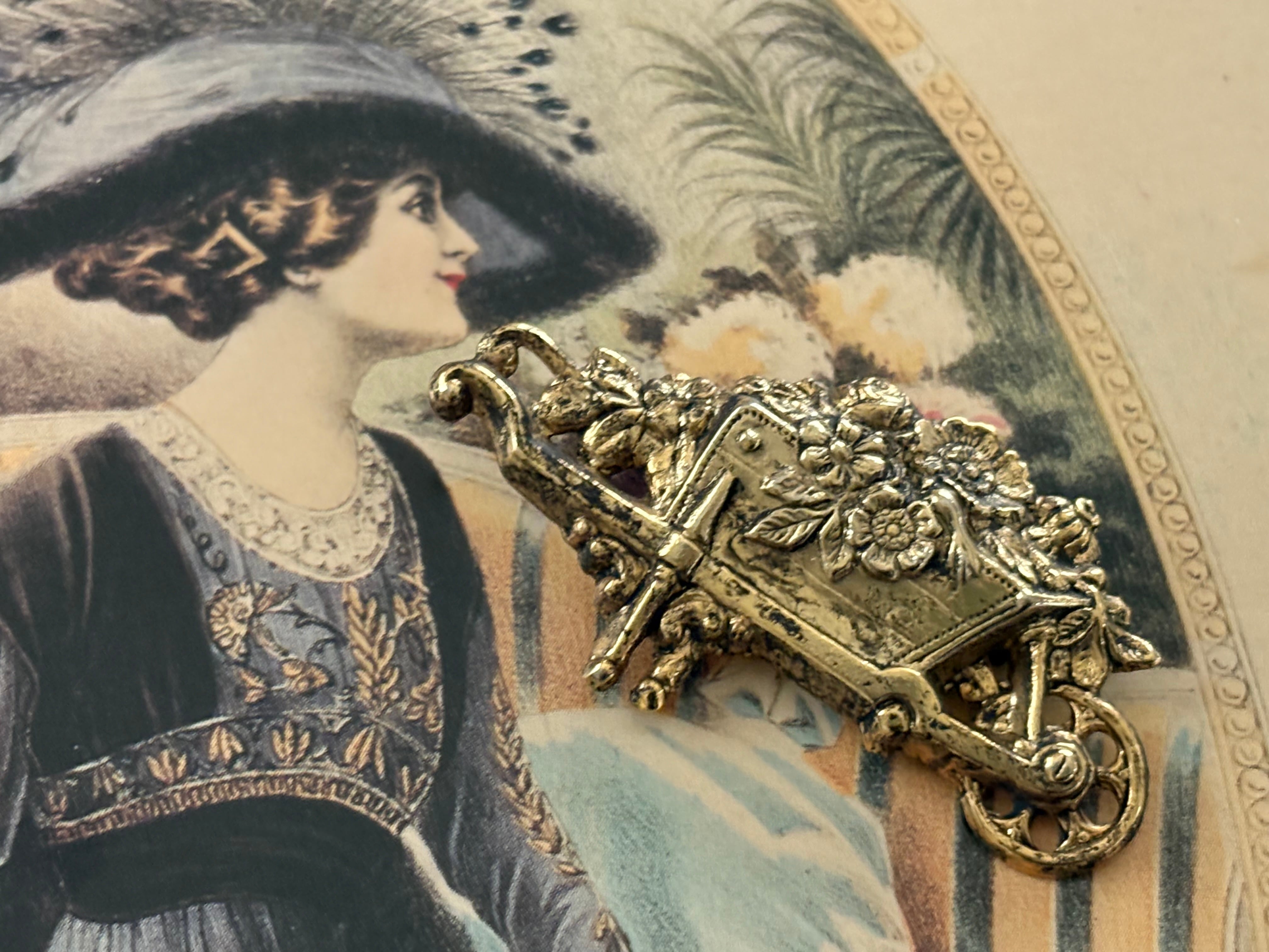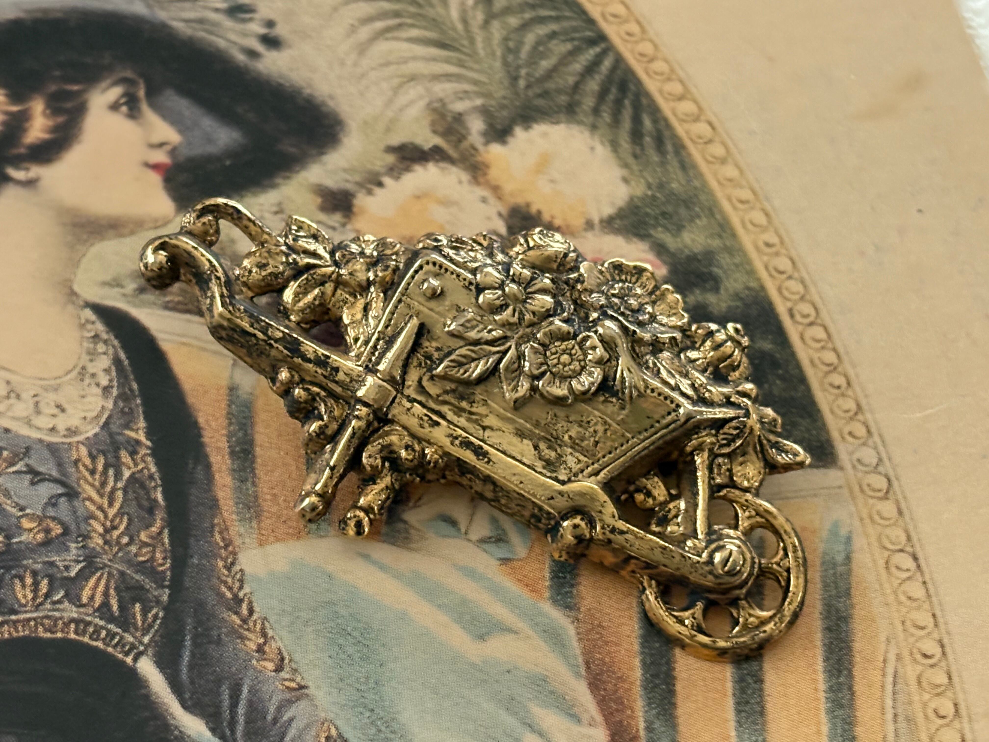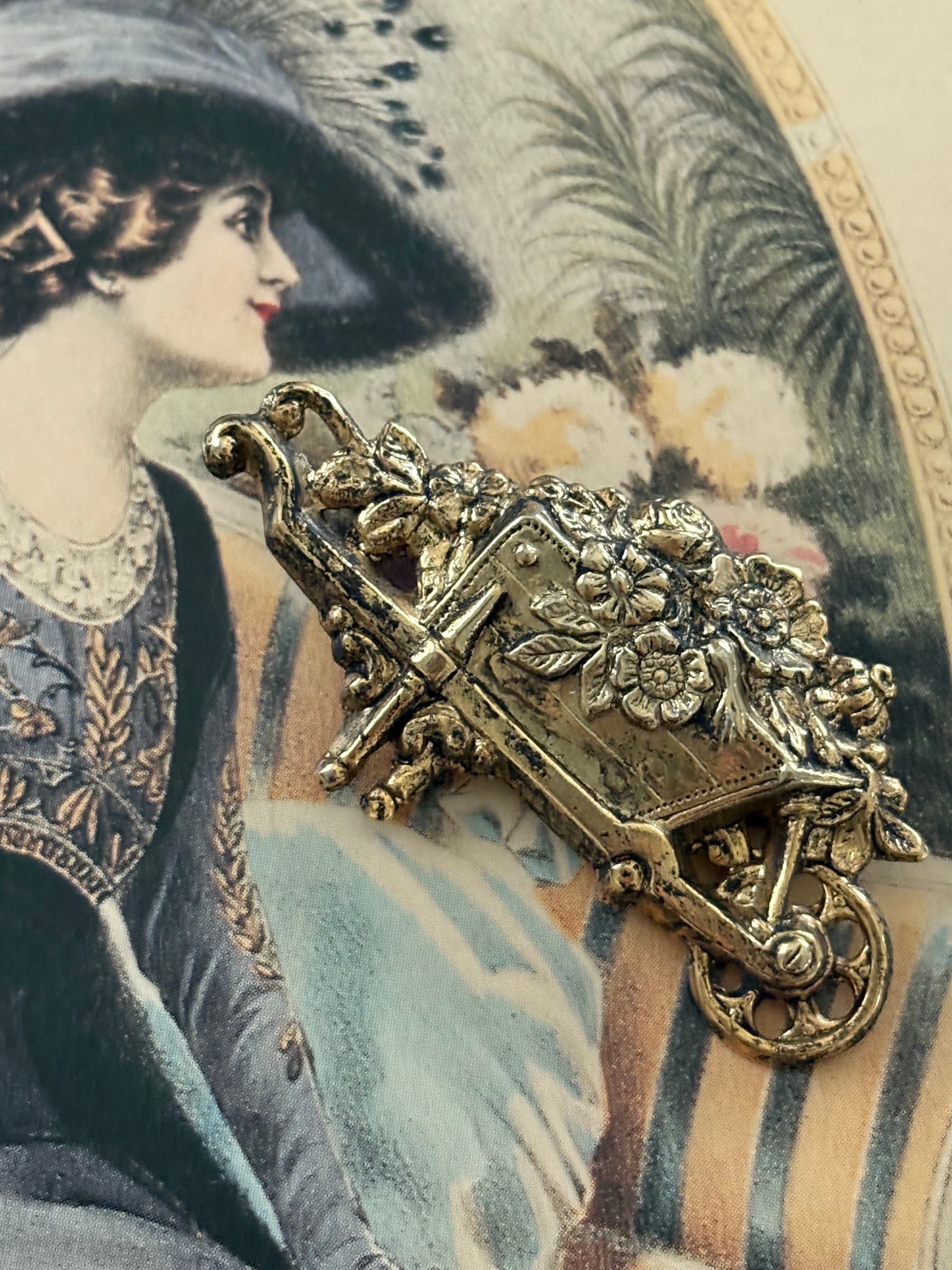 フランスVintage 花車のブローチ アクセサリー ゴールド デコレーション材 カルトナージュ