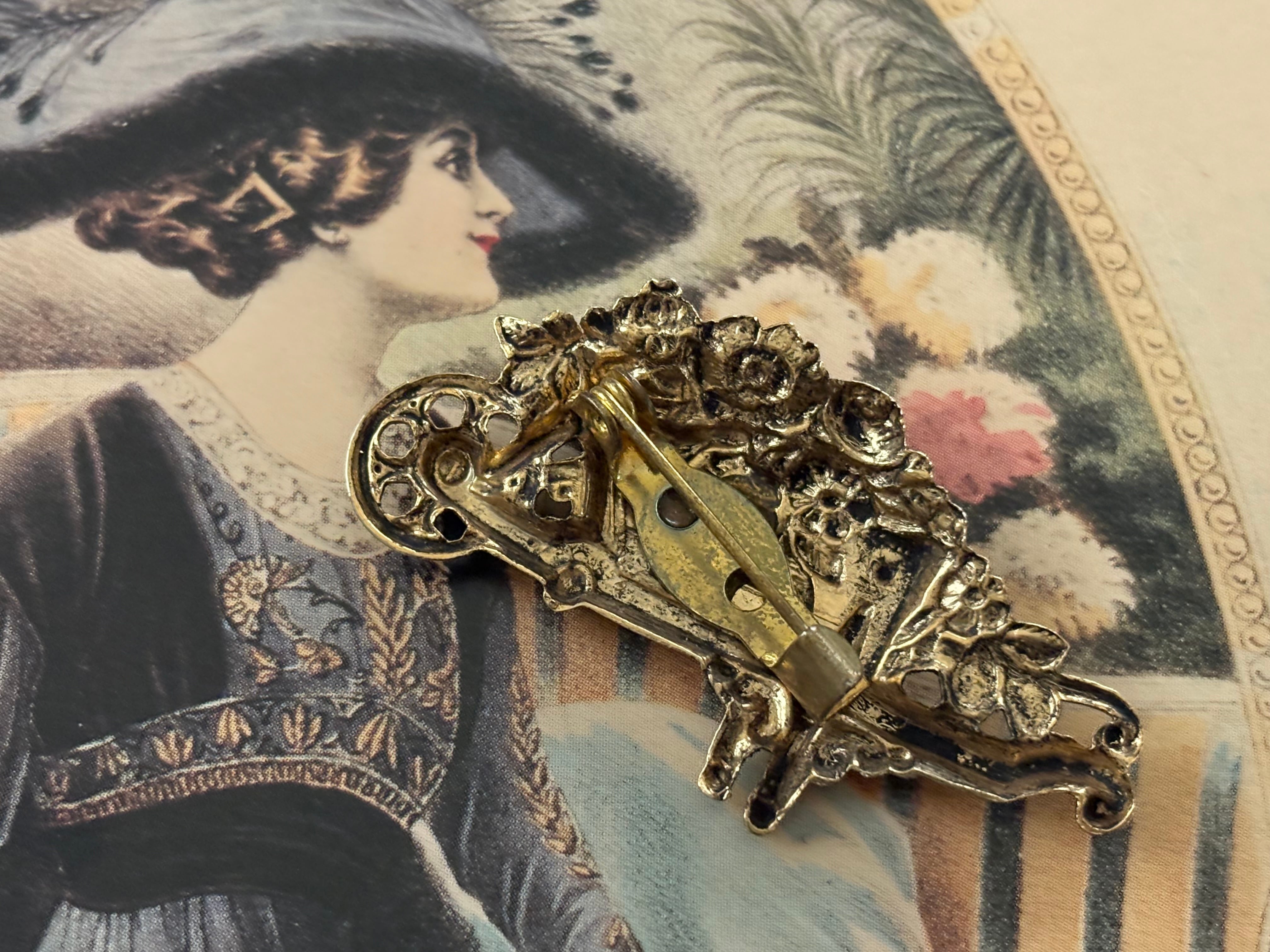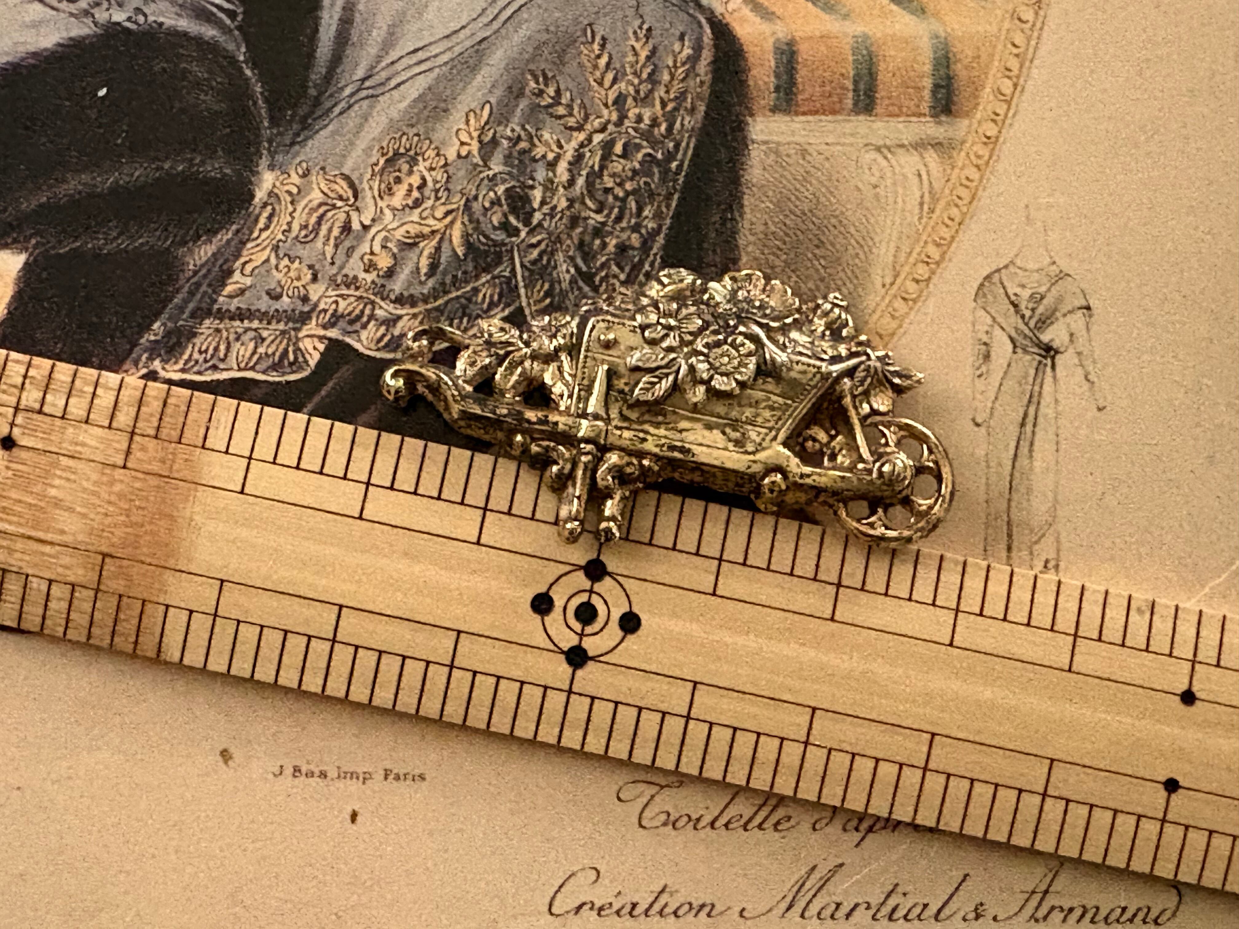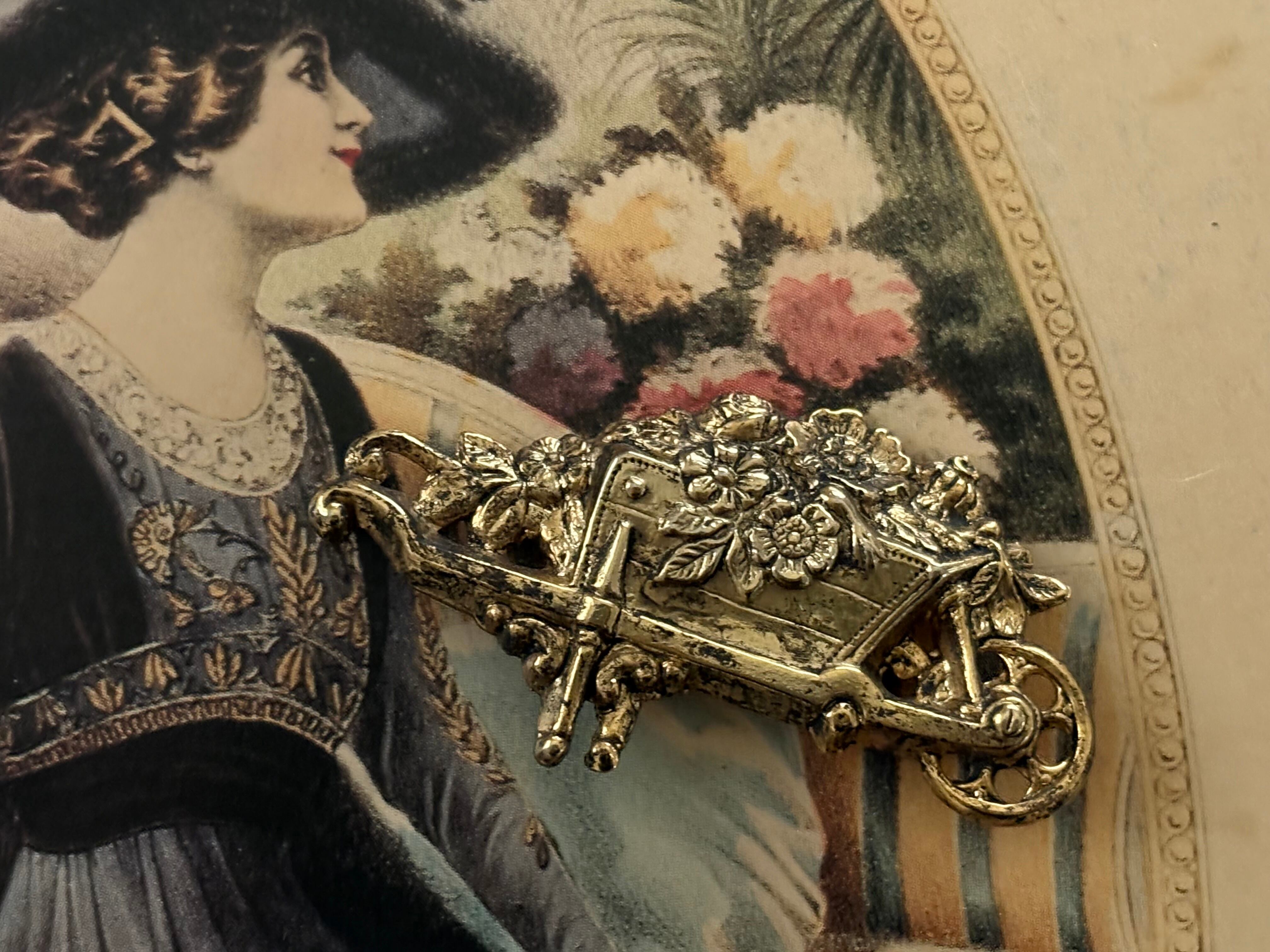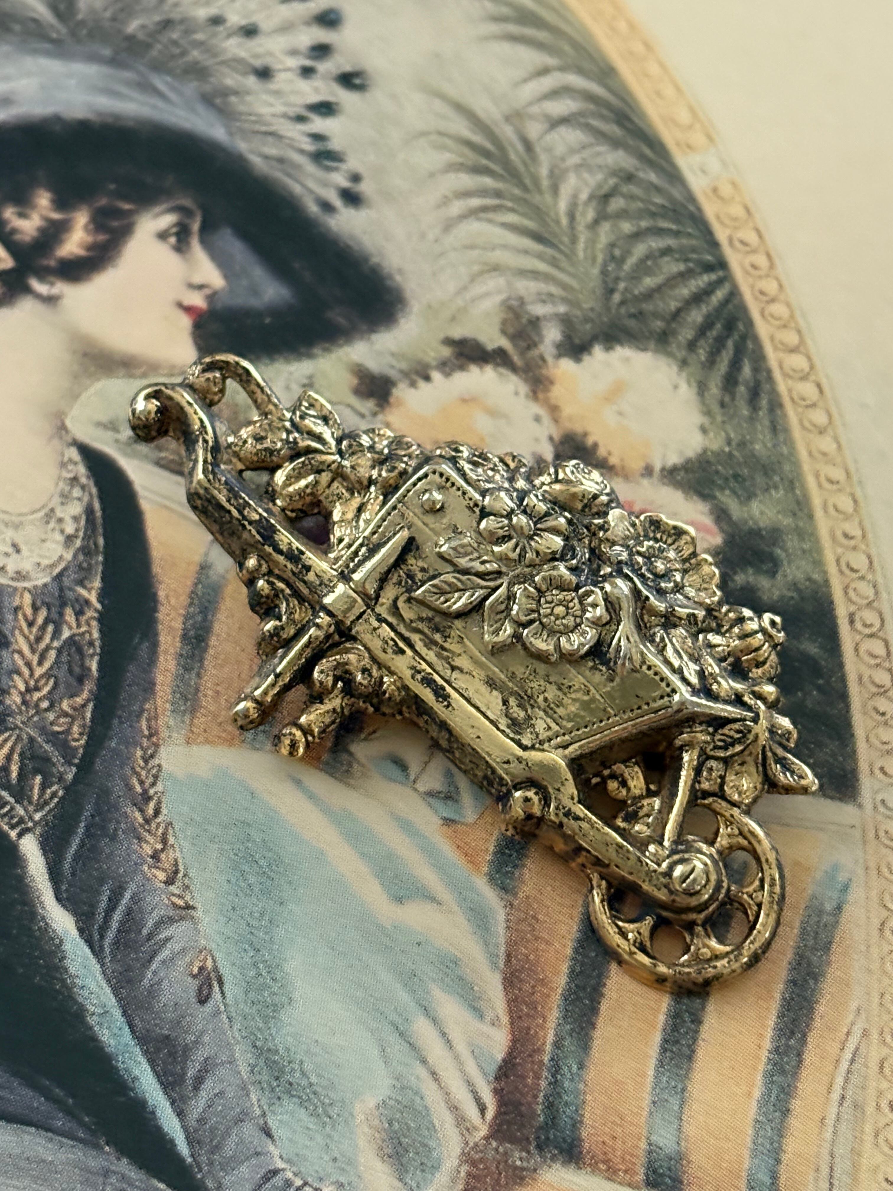 フランスVintage 花車のブローチ アクセサリー ゴールド デコレーション材 カルトナージュ