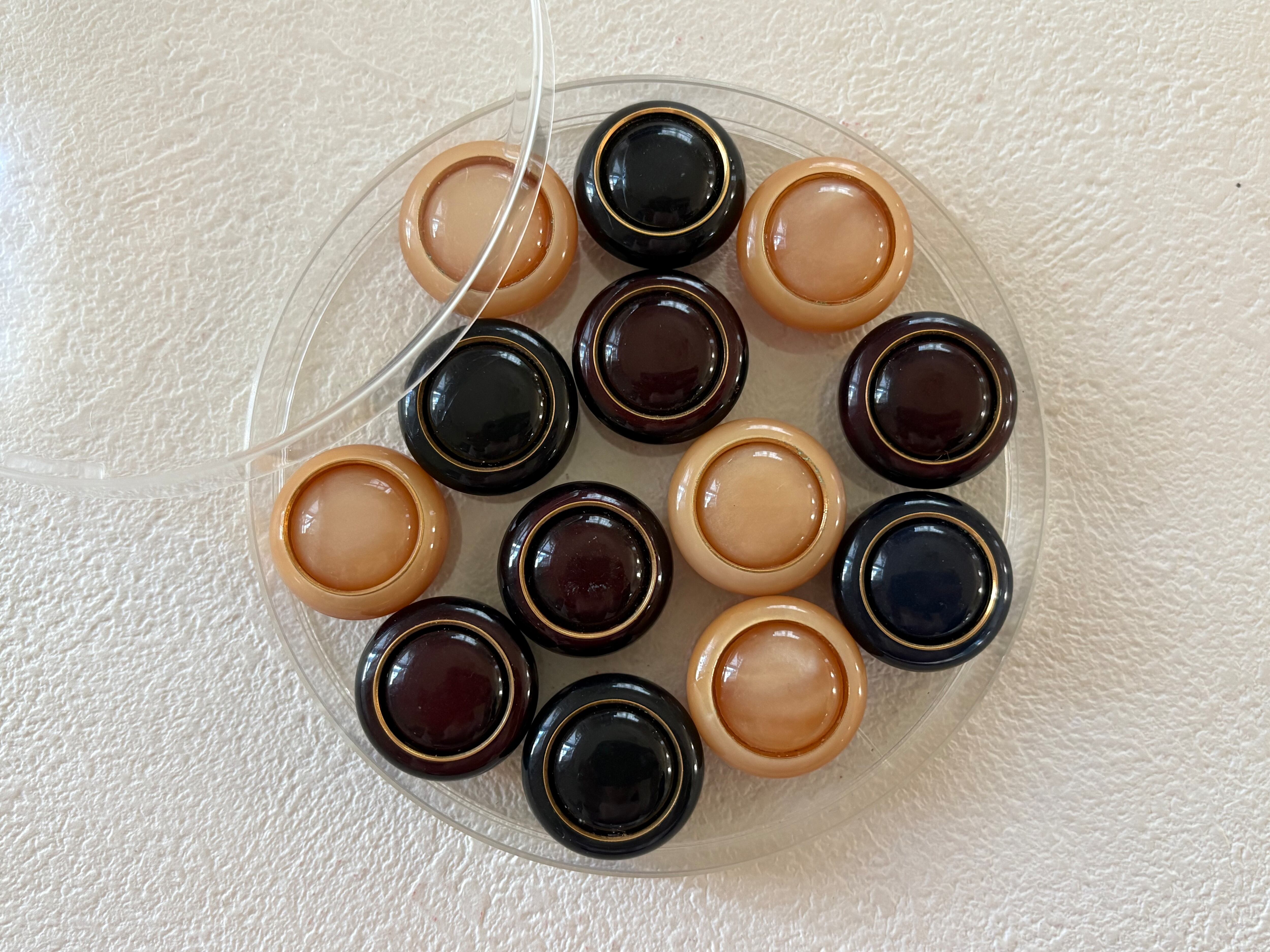 ※インポート、ヴィンテージボタンはもともとキズ、色むら、バリ、サイズの不揃い、多少の汚れなどが見られる場合があります。