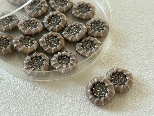Japanese Vintage ボタン コードボタン 16mm ビーズ ブラウンベージュ デッドストック アクセサリーパーツ 装飾材 カルトナージュ