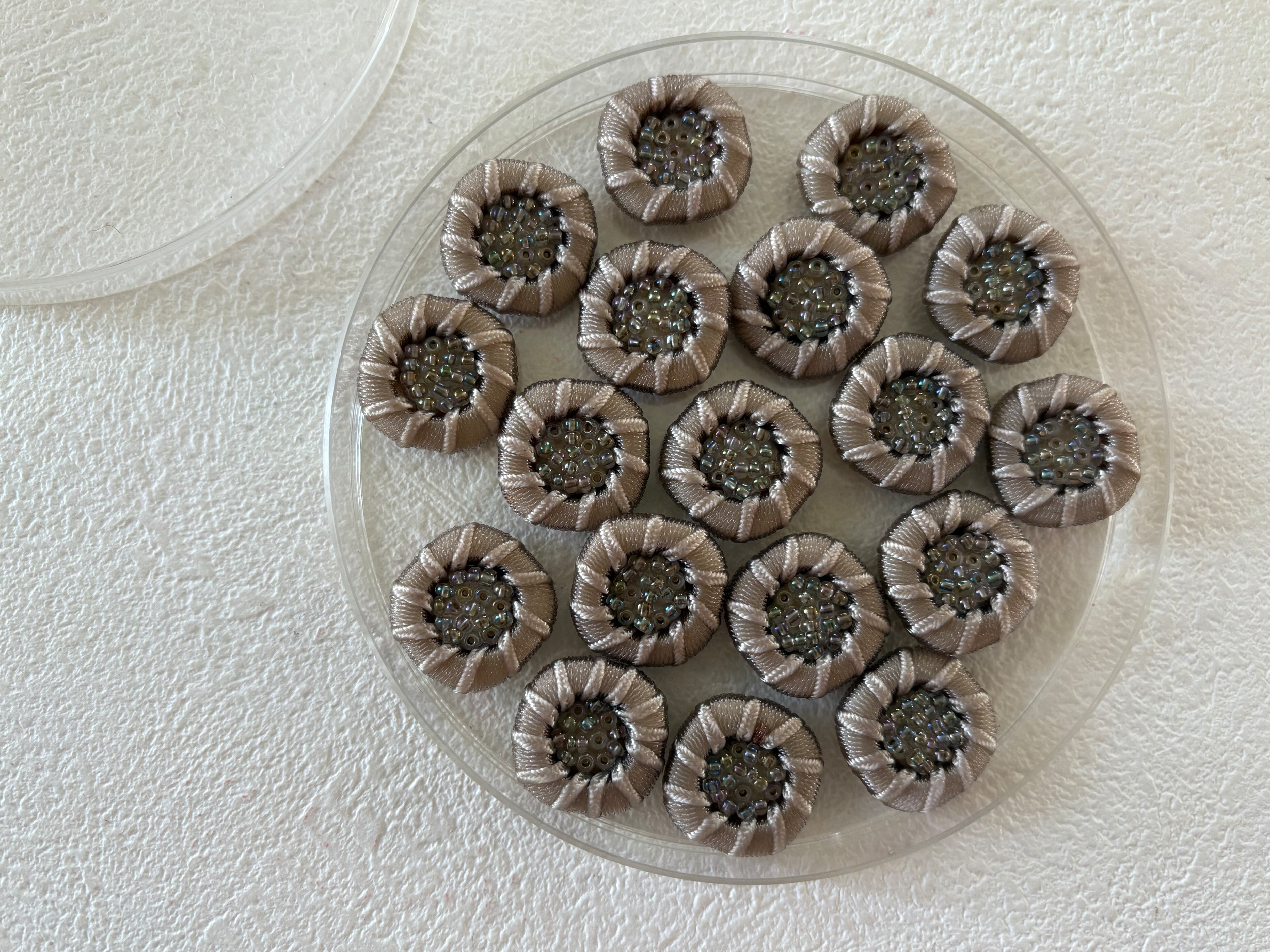 お洋服のボタンの付け替えには勿論のことアクセサリーパーツとして、カルトナージュのデコレーション材になど様々な用途でお役立て下さいませ。