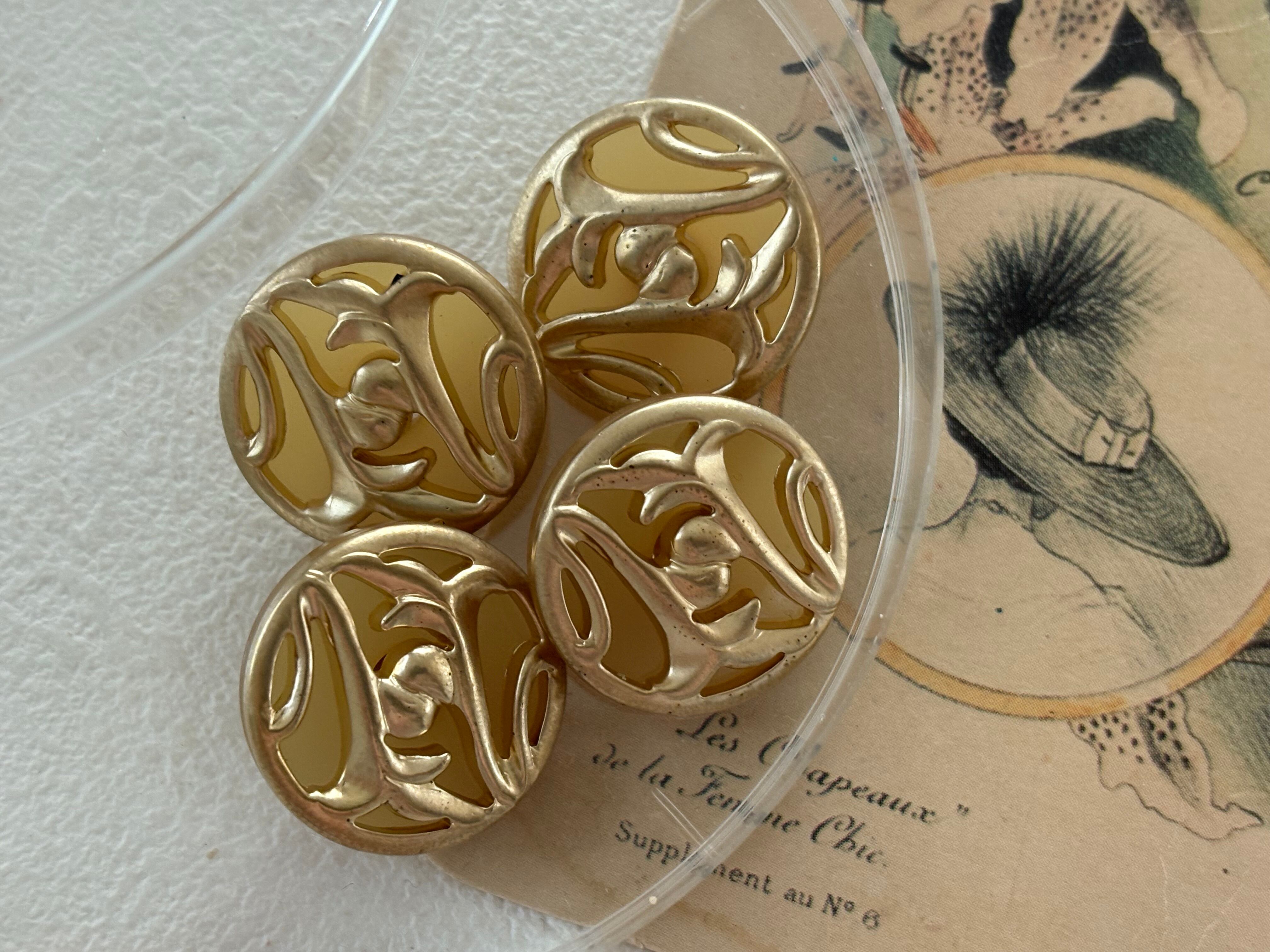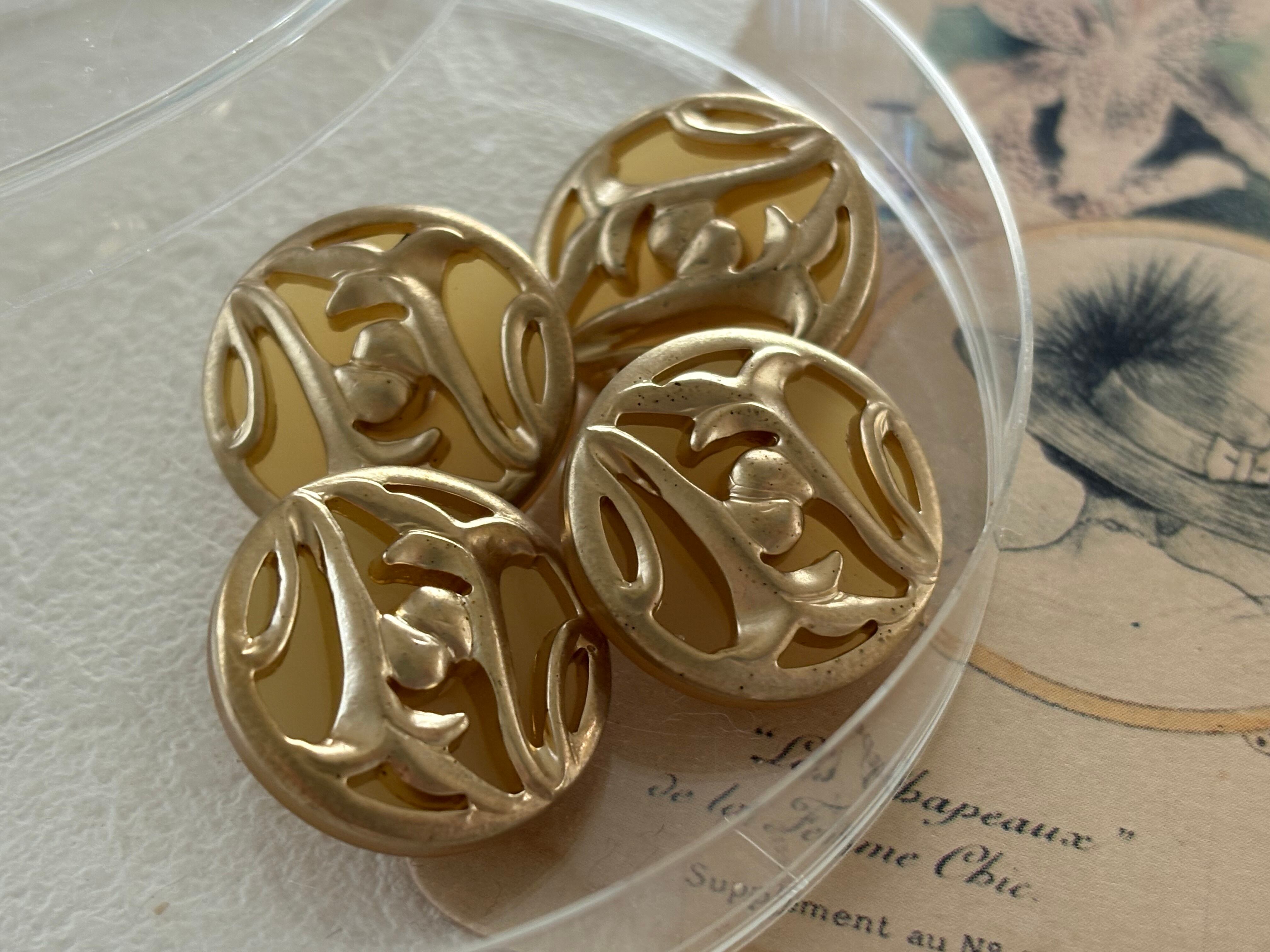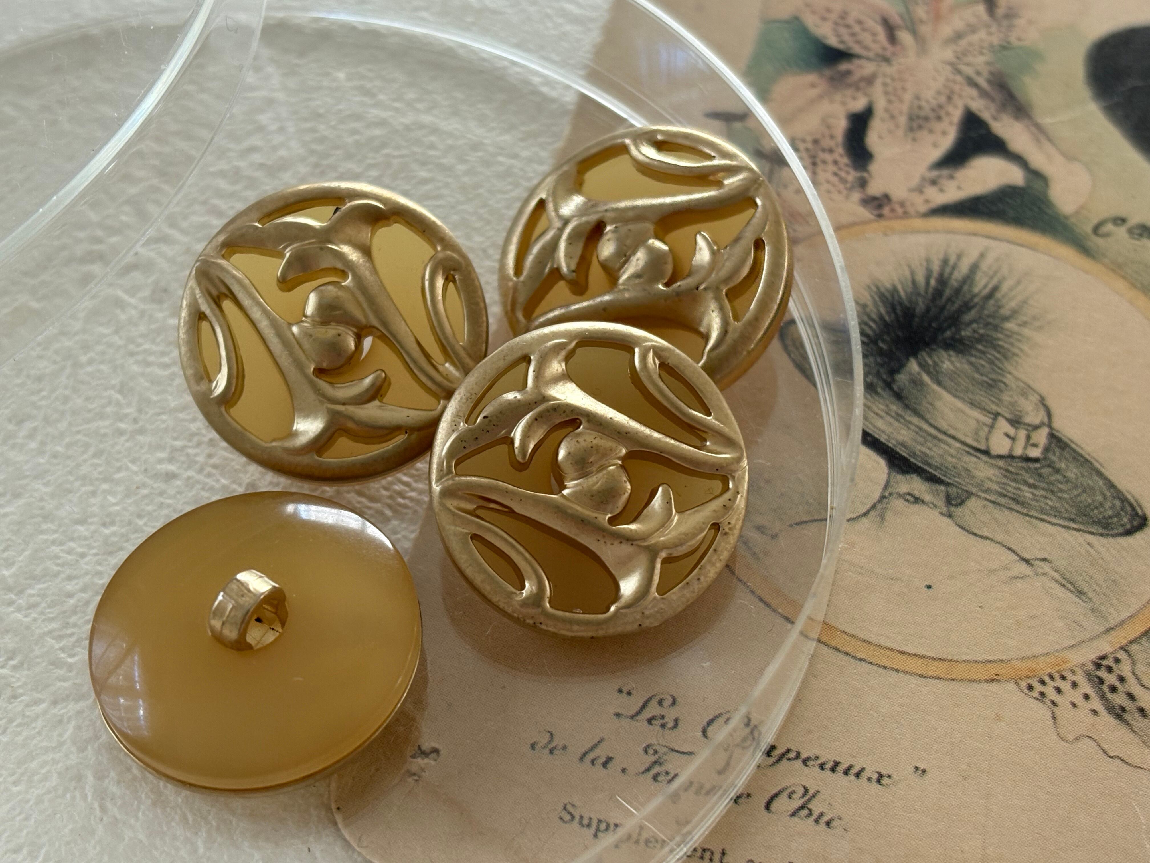 Import Vintageボタン イエローベージュ×マットゴールド 20mm 樹脂 アクセサリーパーツ デコレーション材