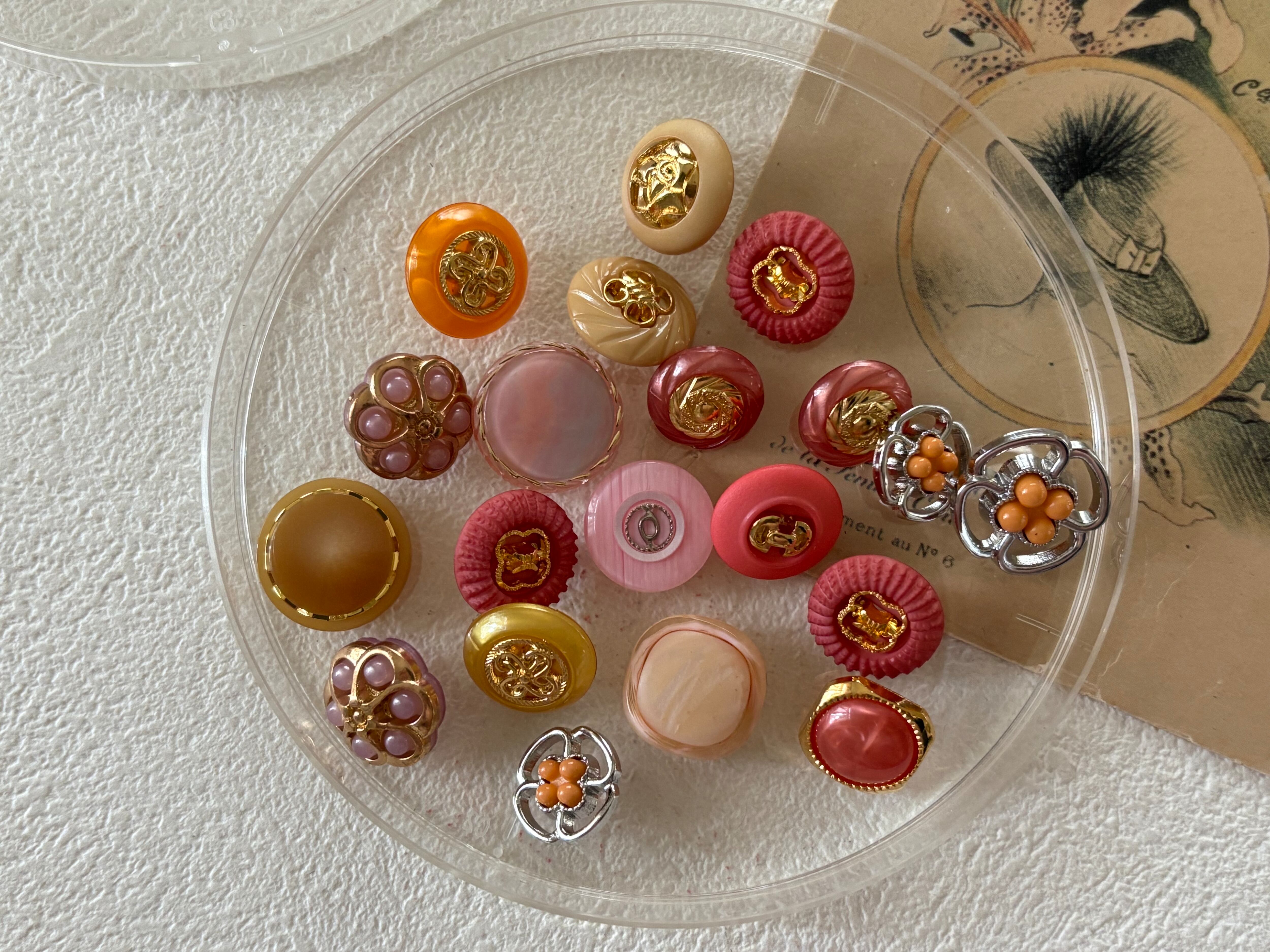 SALE 小さなVintageボタンセット ① 20個入り アクセサリーパーツ 染めボタン レトロボタン デコレーション材